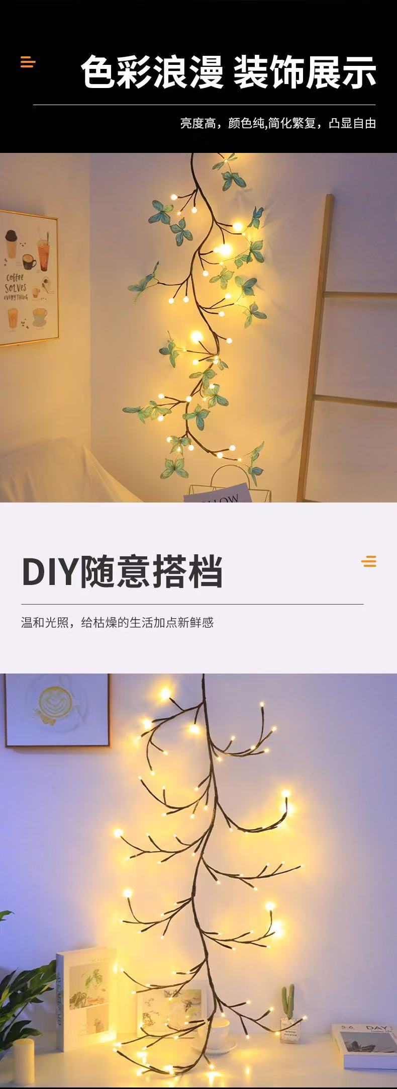 국경을 넘는 인기 LED 조명 스트링 등, 실내 침실 장식 분위기 조명, 새로운 나무 등나무 조명, 컬러풀한 조명, 야간 조명스토어 가기