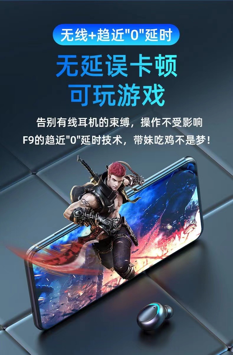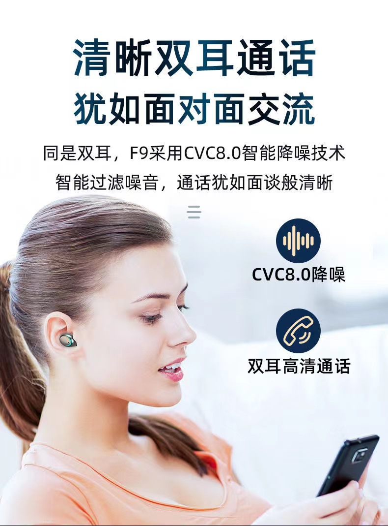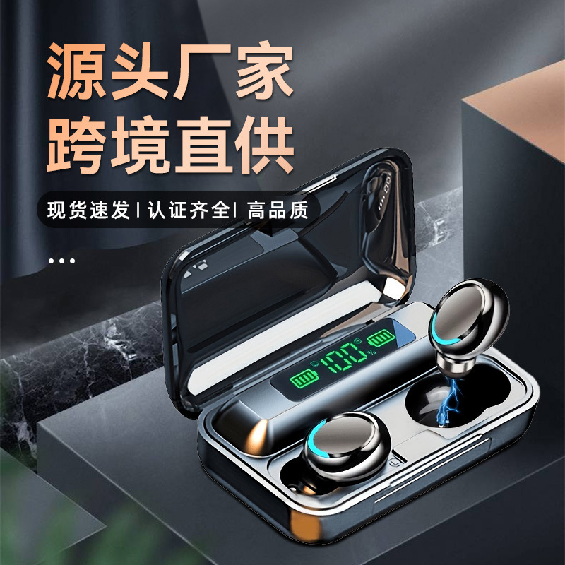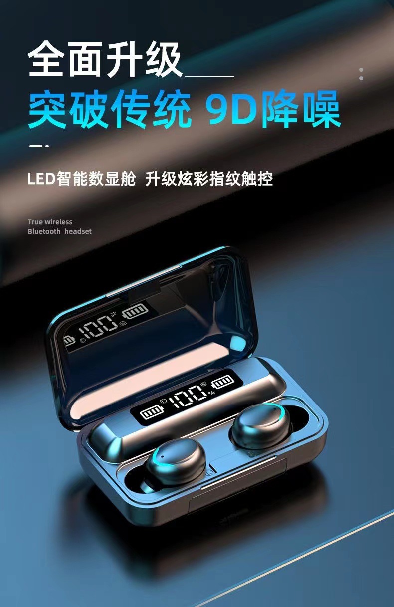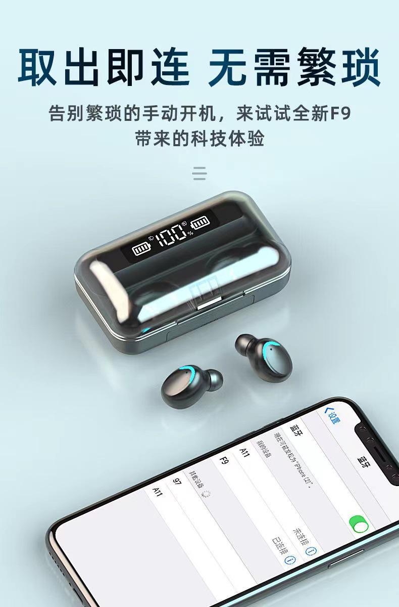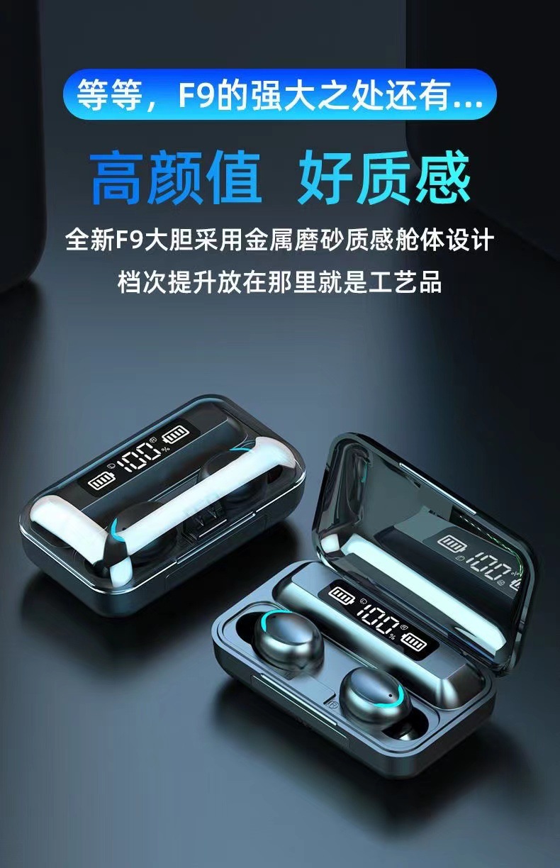 F9 새로운 국경 전자 상거래 바이노럴 디지털 디스플레이 충전 보물 기능 5.0 블루투스 헤드셋 지능형 소음 감소 공장스토어 가기