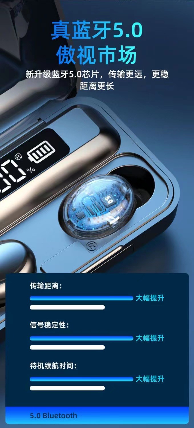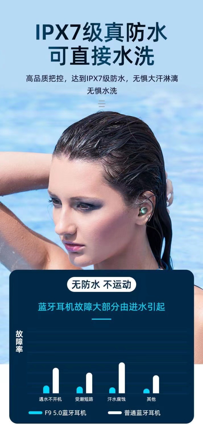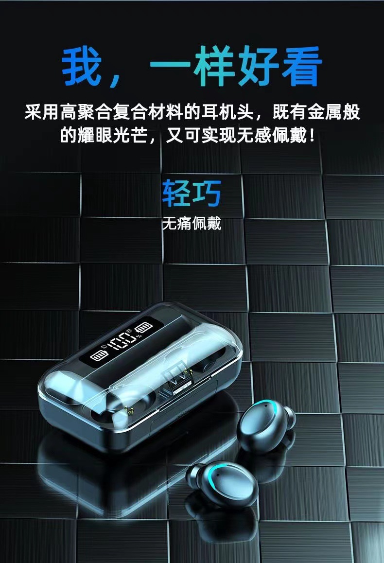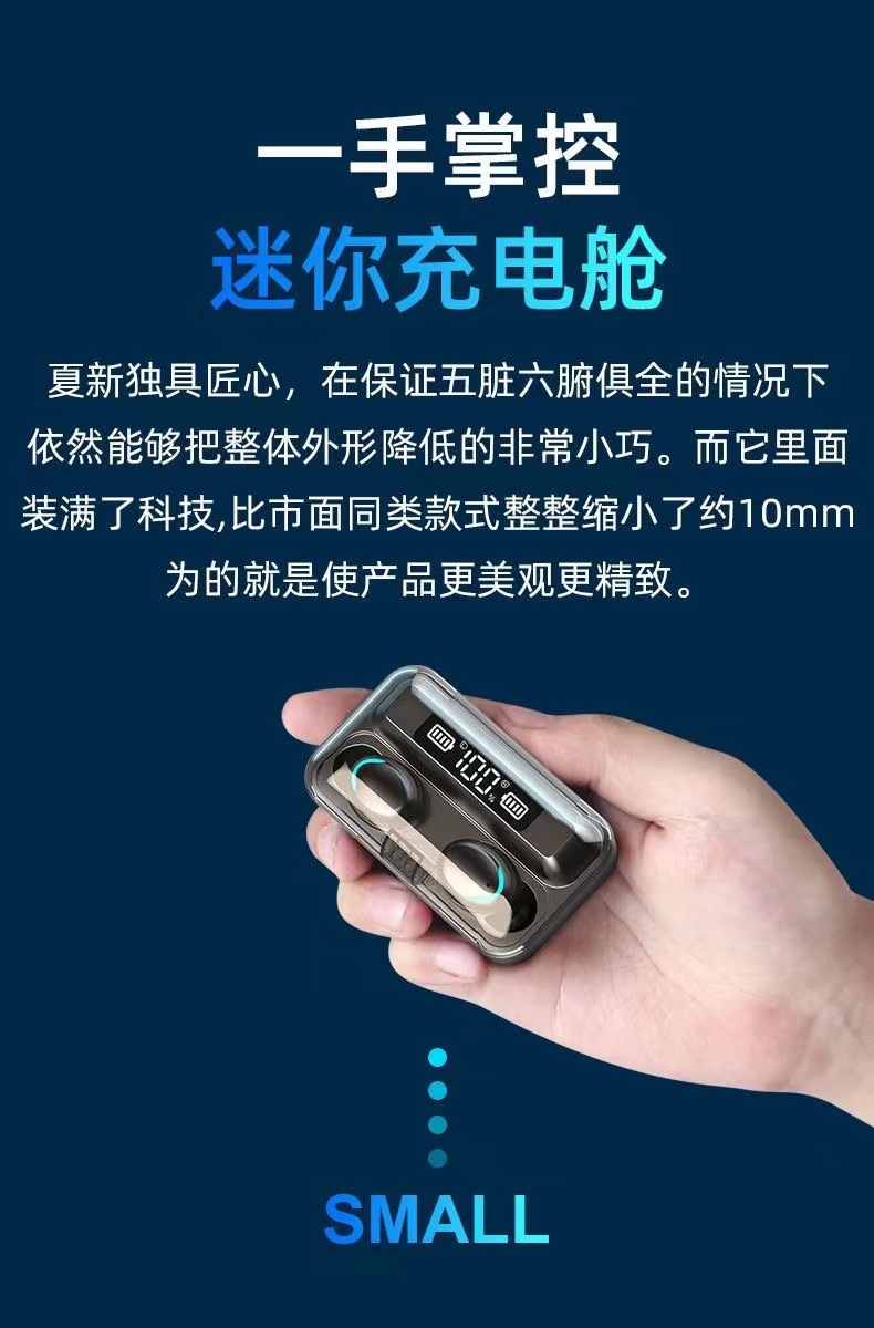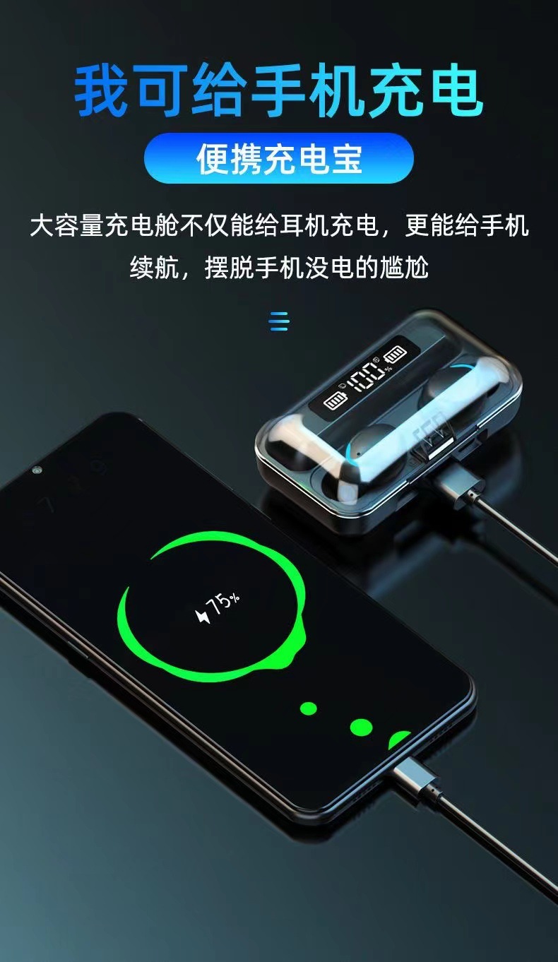 F9 새로운 국경 전자 상거래 바이노럴 디지털 디스플레이 충전 보물 기능 5.0 블루투스 헤드셋 지능형 소음 감소 공장스토어 가기