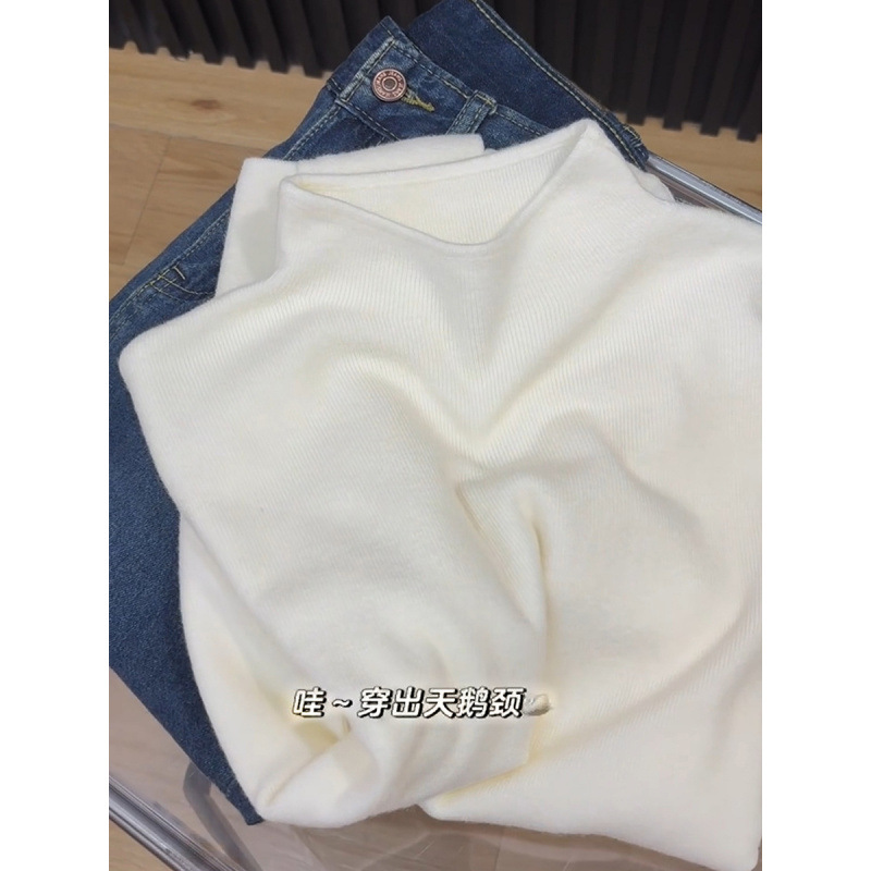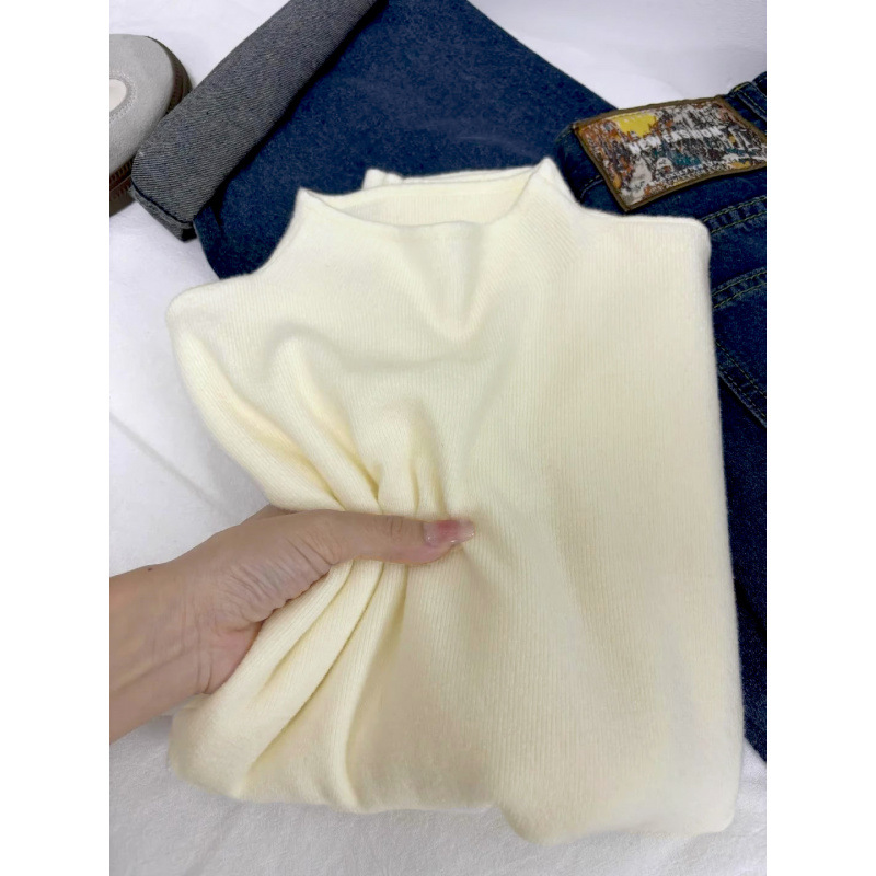 한국식 원피스 밍크 벨벳 소프트 왁스 니트베이스 셔츠 여성용 하프 터틀넥 우아한 스웨터 내탑 여성용 봄