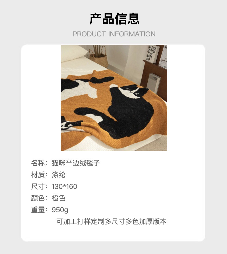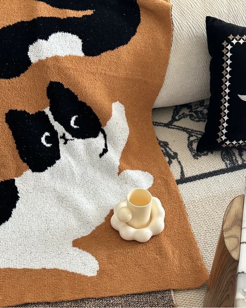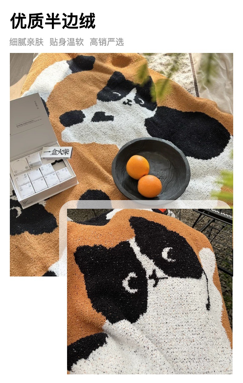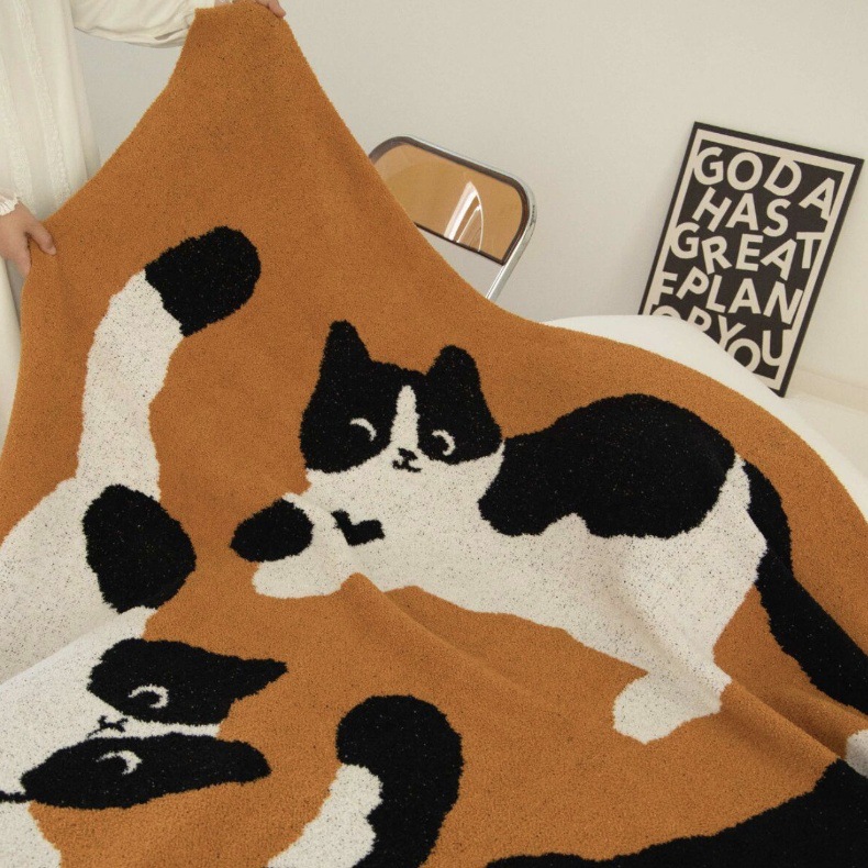세 마리의 젖소 고양이 A급 산모 및 유아용 반쪽 담요 소파 담요 니트 사무실 낮잠 담요 장식용 담요스토어 가기