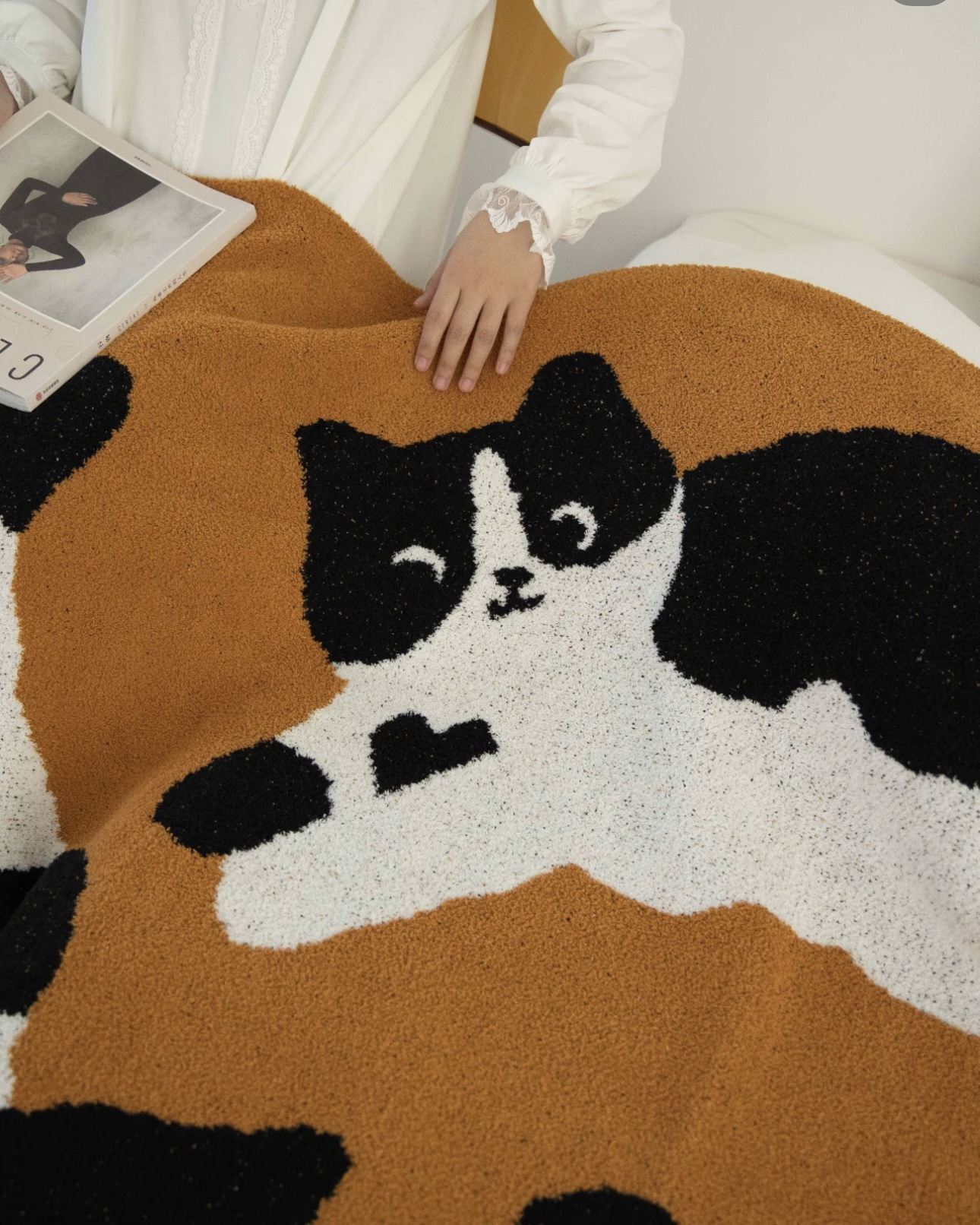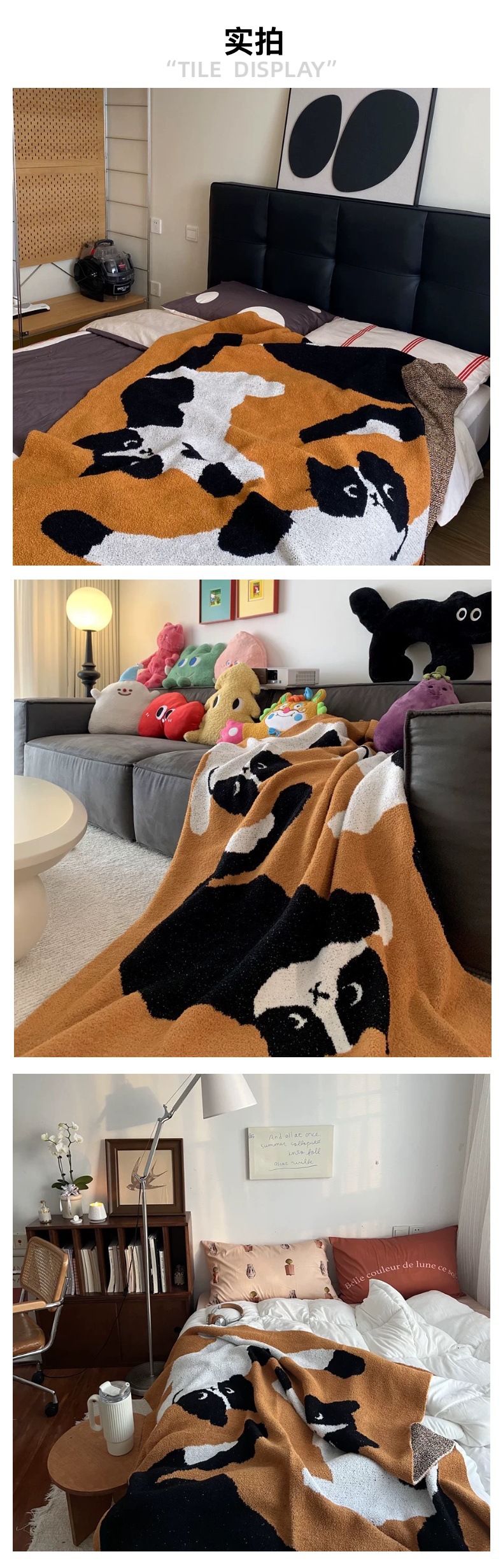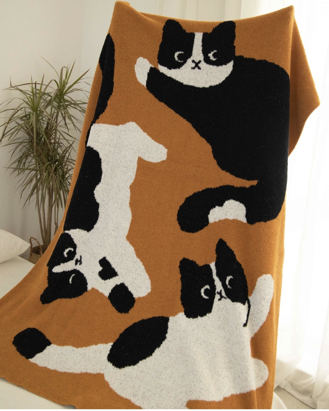 세 마리의 젖소 고양이 A급 산모 및 유아용 반쪽 담요 소파 담요 니트 사무실 낮잠 담요 장식용 담요스토어 가기