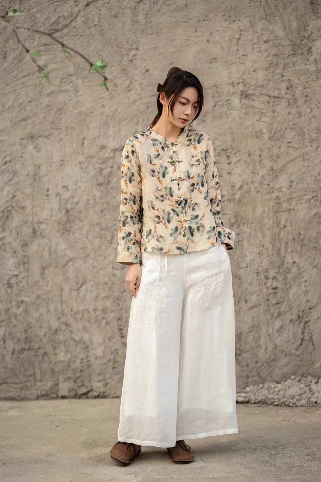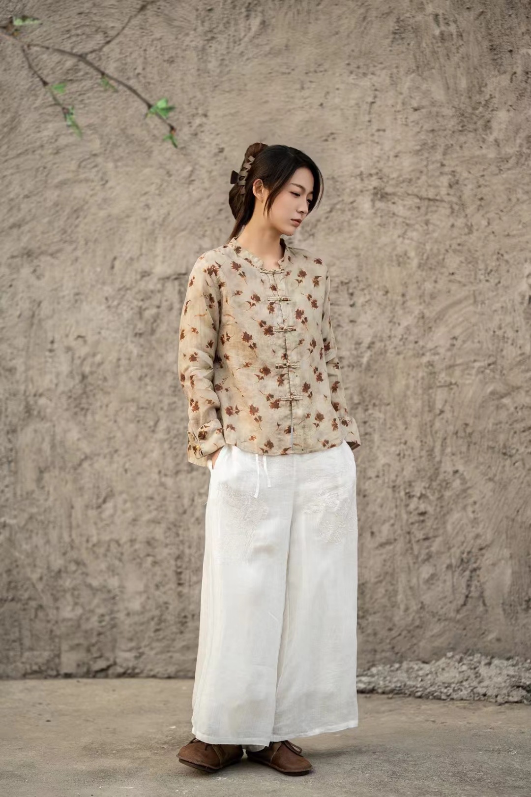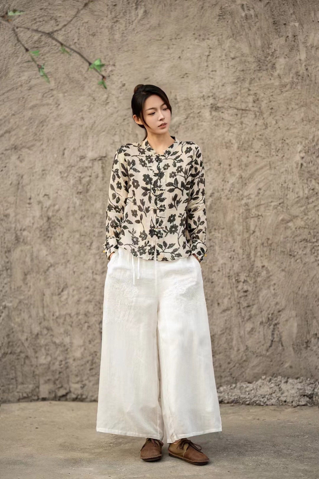 2025 봄과 여름 새로운 도착 프린트 셔츠 여성의 예술적 패션 칼라 긴팔 느슨한 버클 셔츠스토어 가기