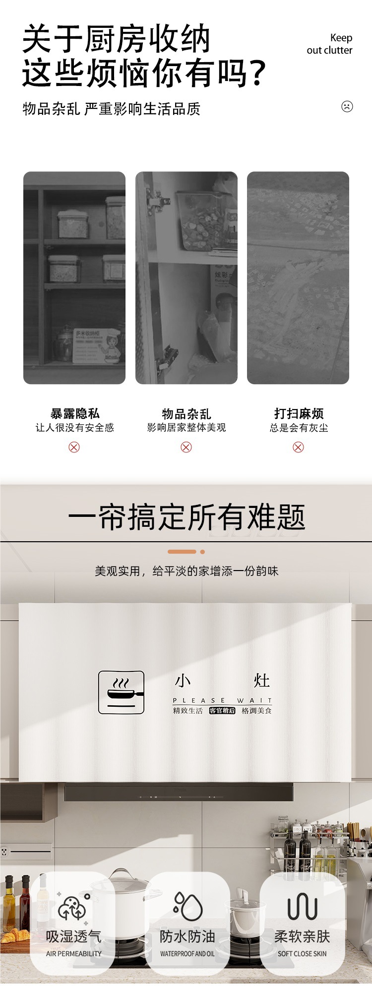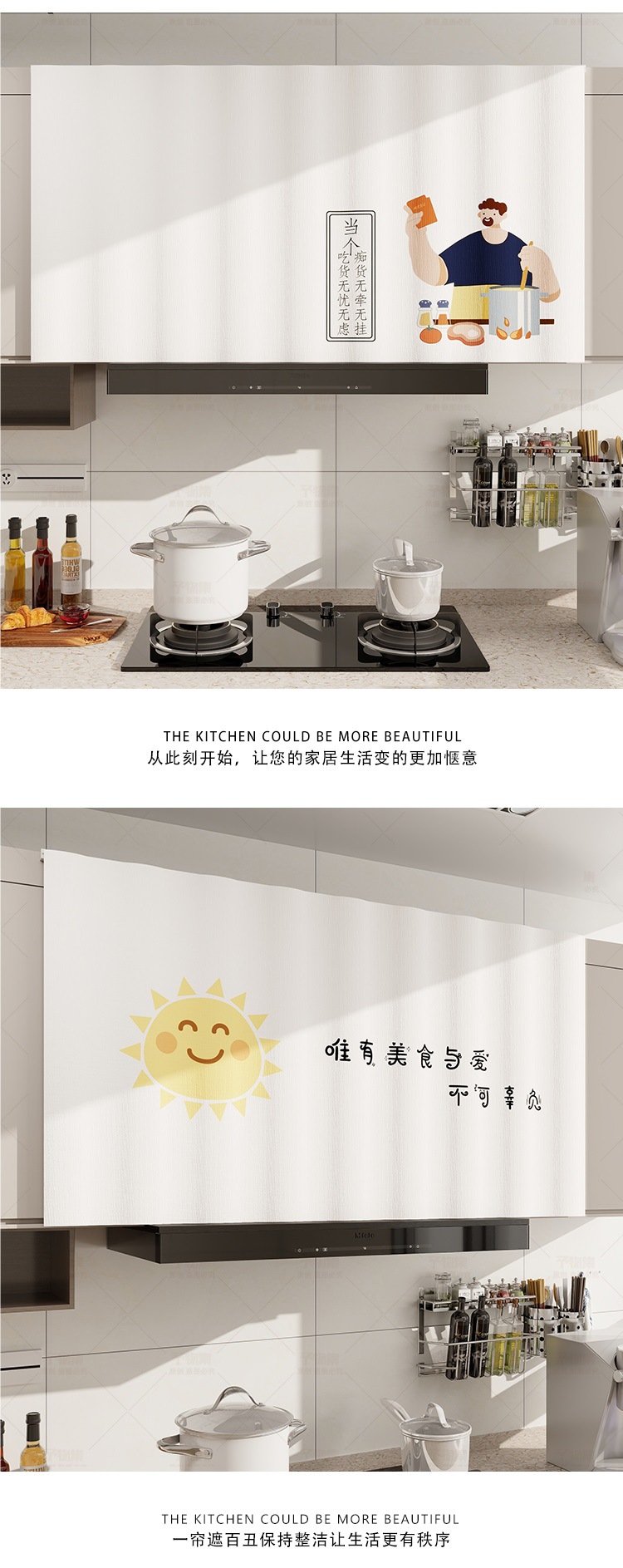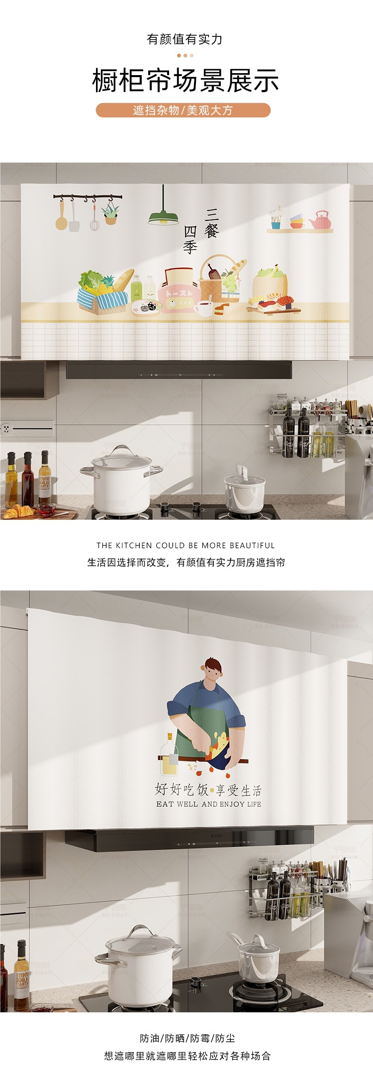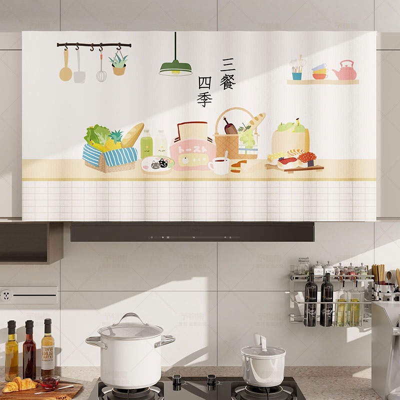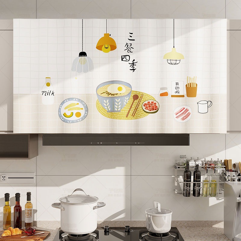 캐비닛 커튼 방수 및 오일 방지 벨크로 펀치가없는 주방 도어 커튼 선 스크린 커튼 캐비닛 방진 잡화 커튼