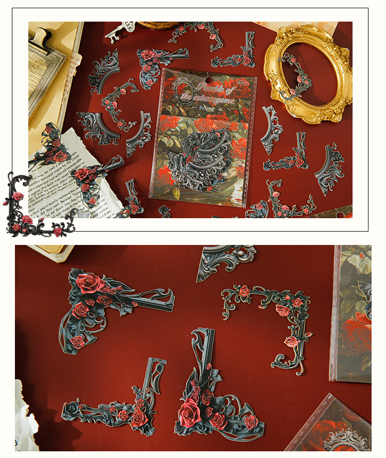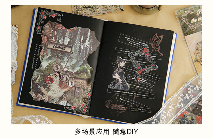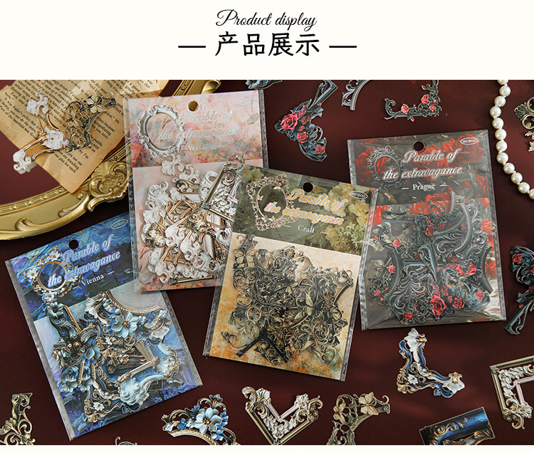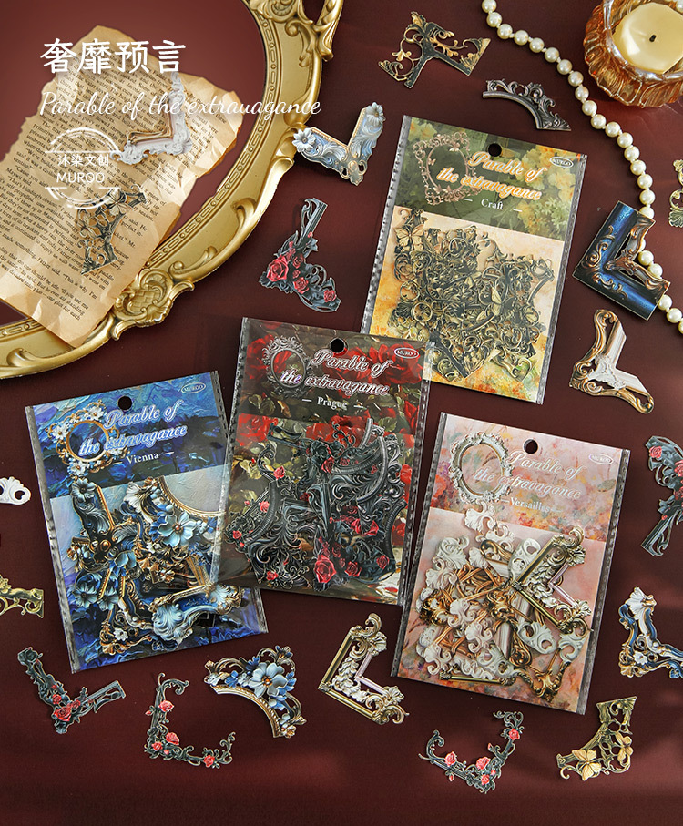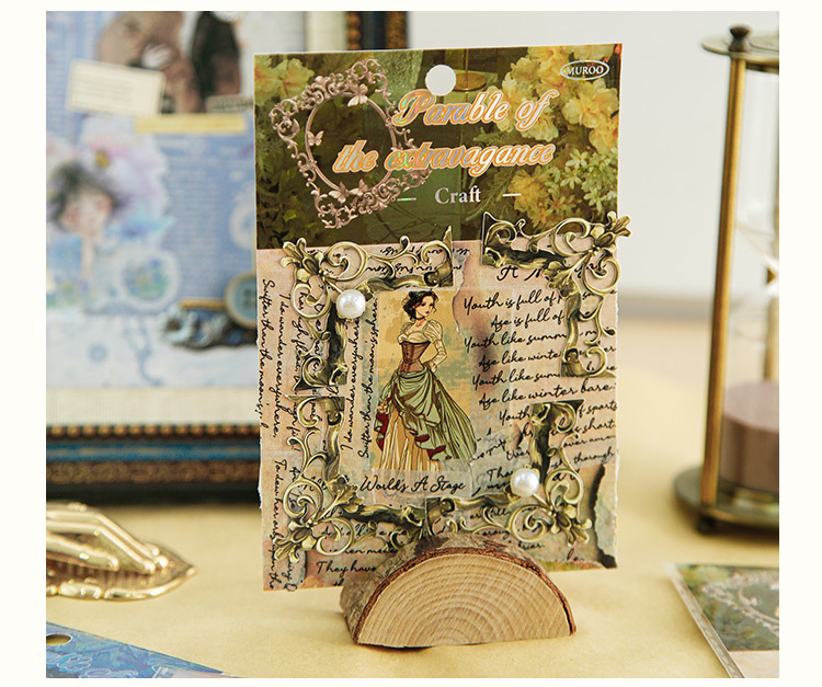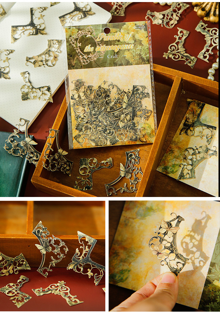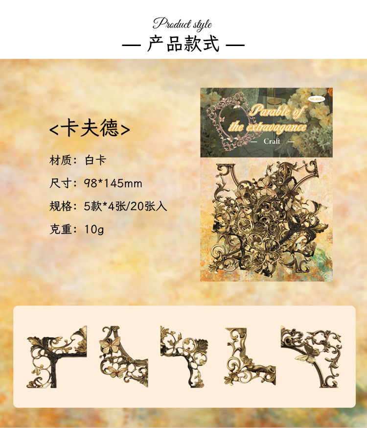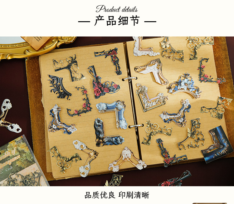 Mu 염료 손 계정 소재 종이 사치스러운 우화 복고풍 테두리 코너 조경 콜라주 장식 재료 스티커 없음스토어 가기