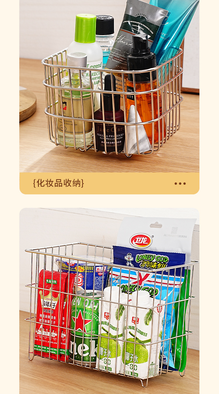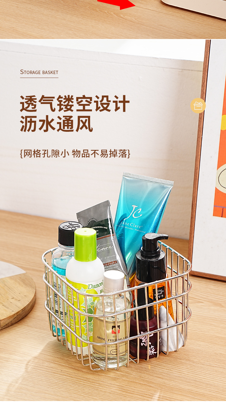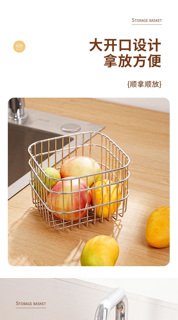 304 스테인레스 스틸 배수 바구니 가정용 주방 보관 바구니 광장 과일 및 야채 바구니 인터넷 유명 화장품 보관 바구니스토어 가기