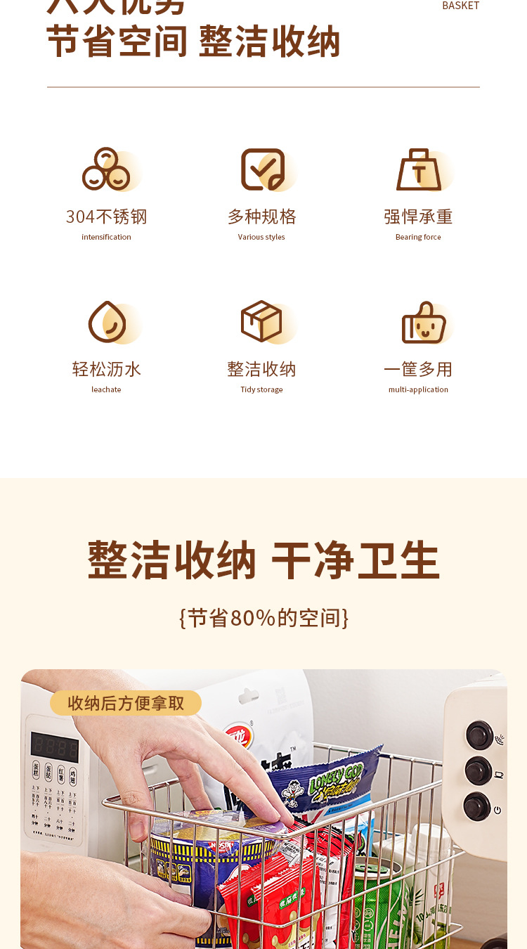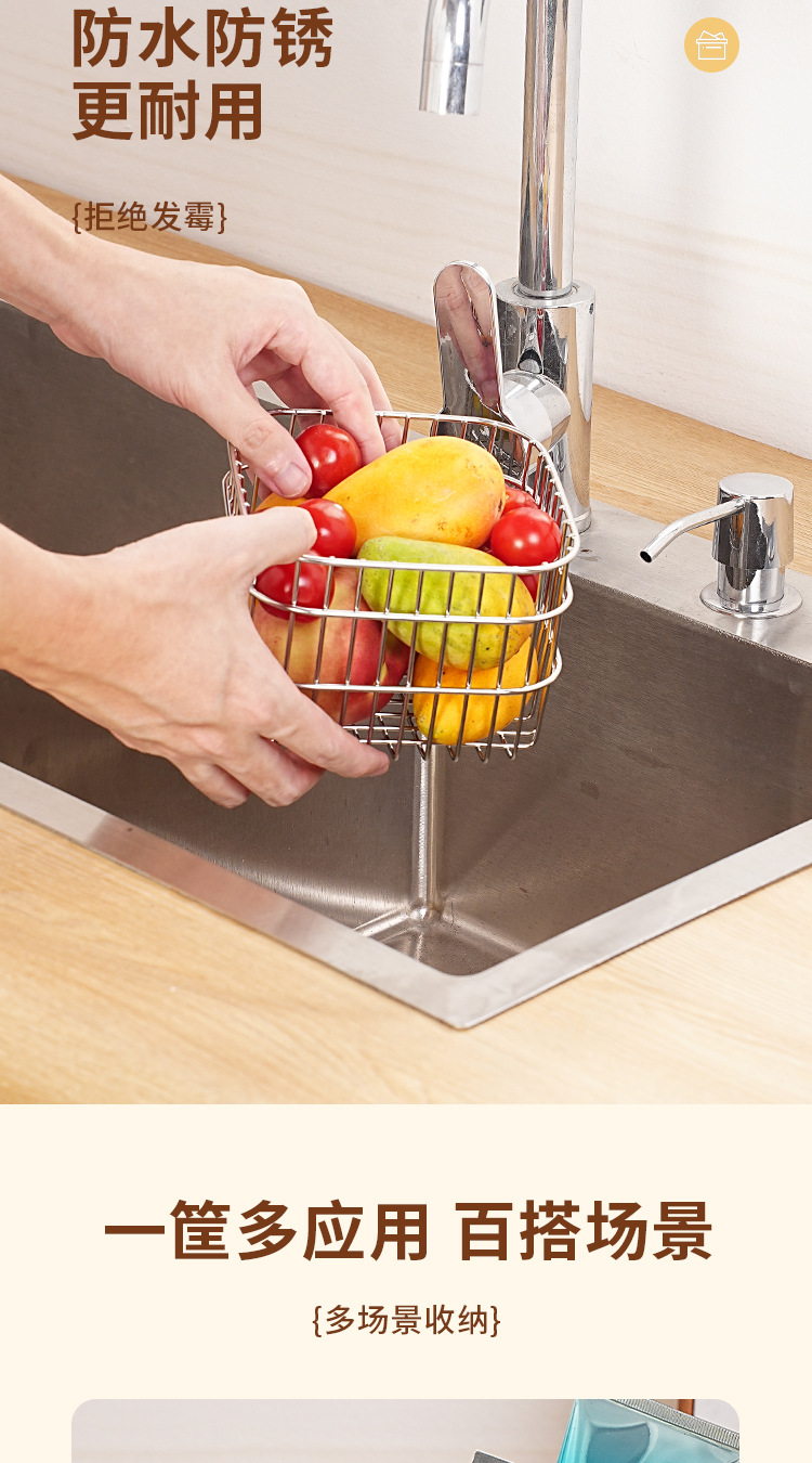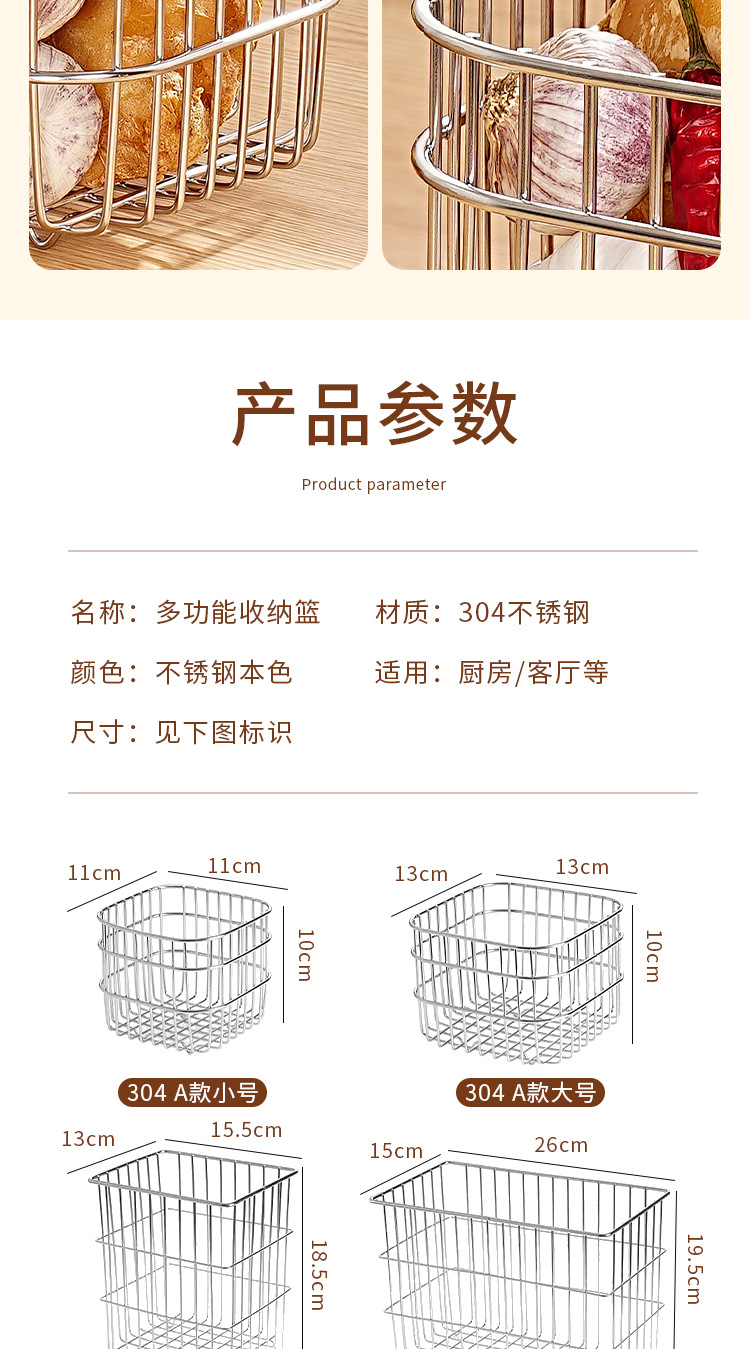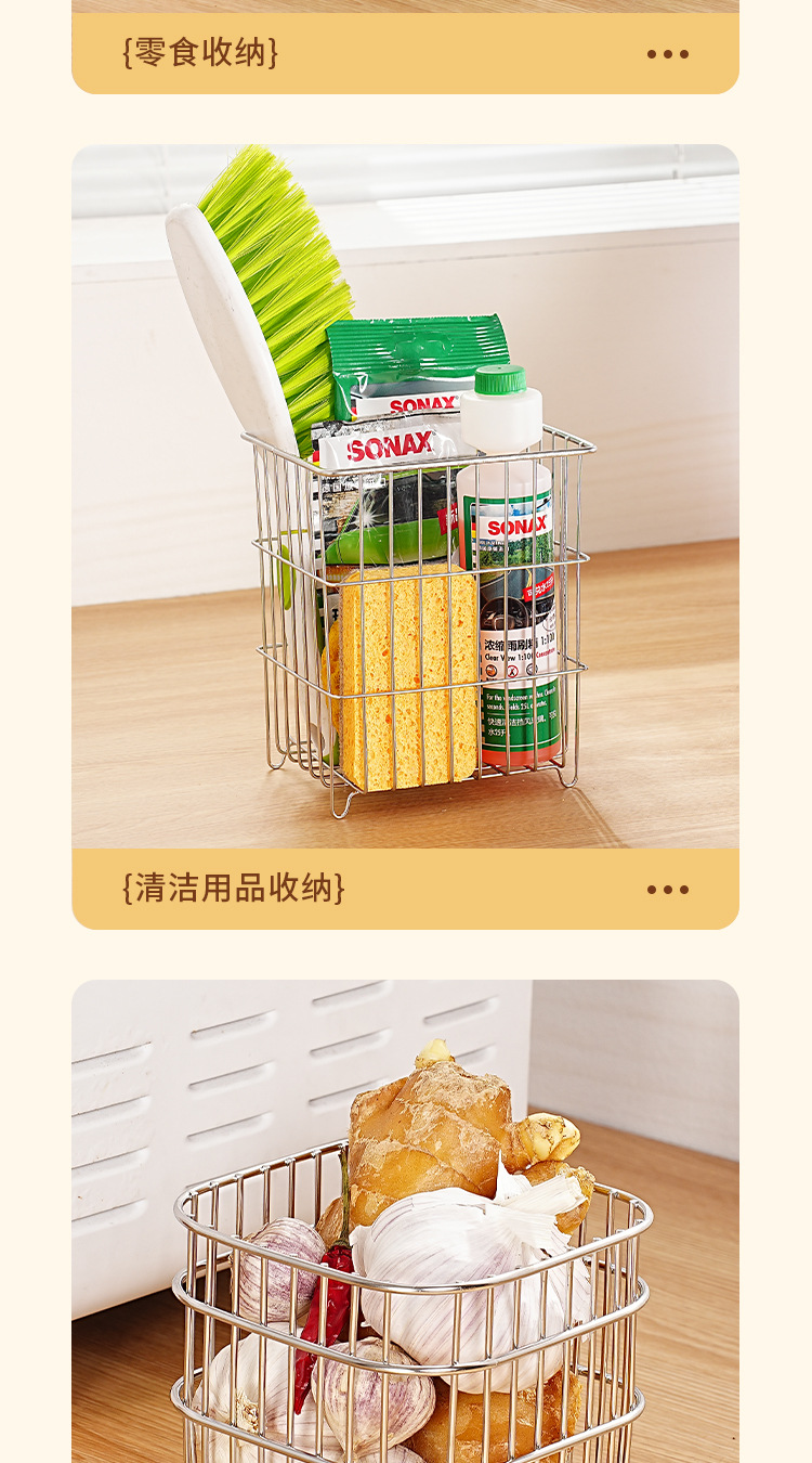 304 스테인레스 스틸 배수 바구니 가정용 주방 보관 바구니 광장 과일 및 야채 바구니 인터넷 유명 화장품 보관 바구니스토어 가기