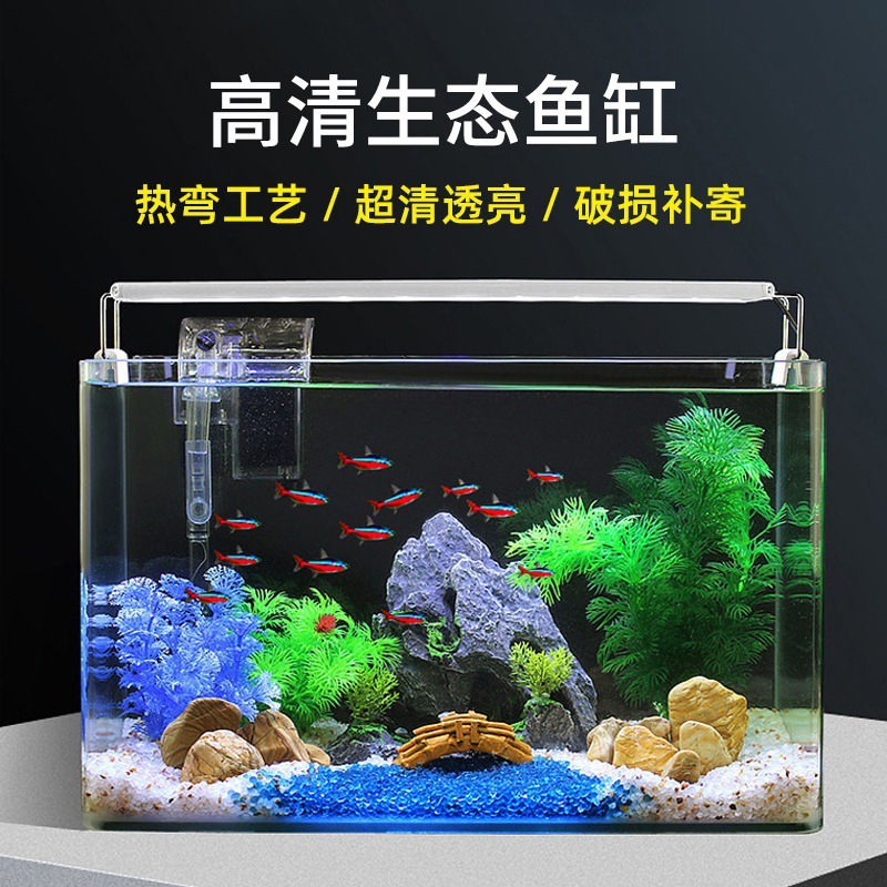 유리 물고기 탱크 거실 작은 가정용 금붕어 수족관 풍경 생태 직사각형 거북이 베어 탱크