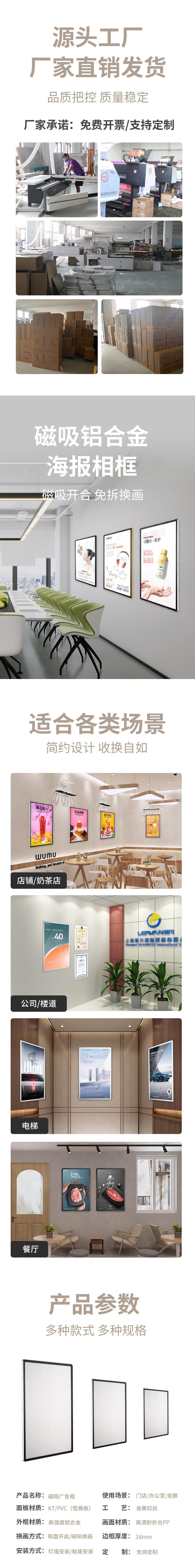 마그네틱 포스터 프레임 엘리베이터 광고 프레임 알루미늄 합금 프레임 교체 가능한 a3a4 사진 프레임 사진 프레임 프로모션 디스플레이 프레임스토어 가기