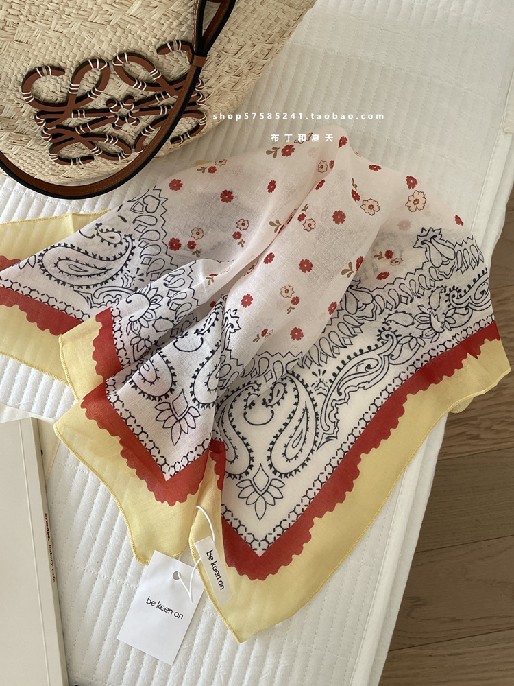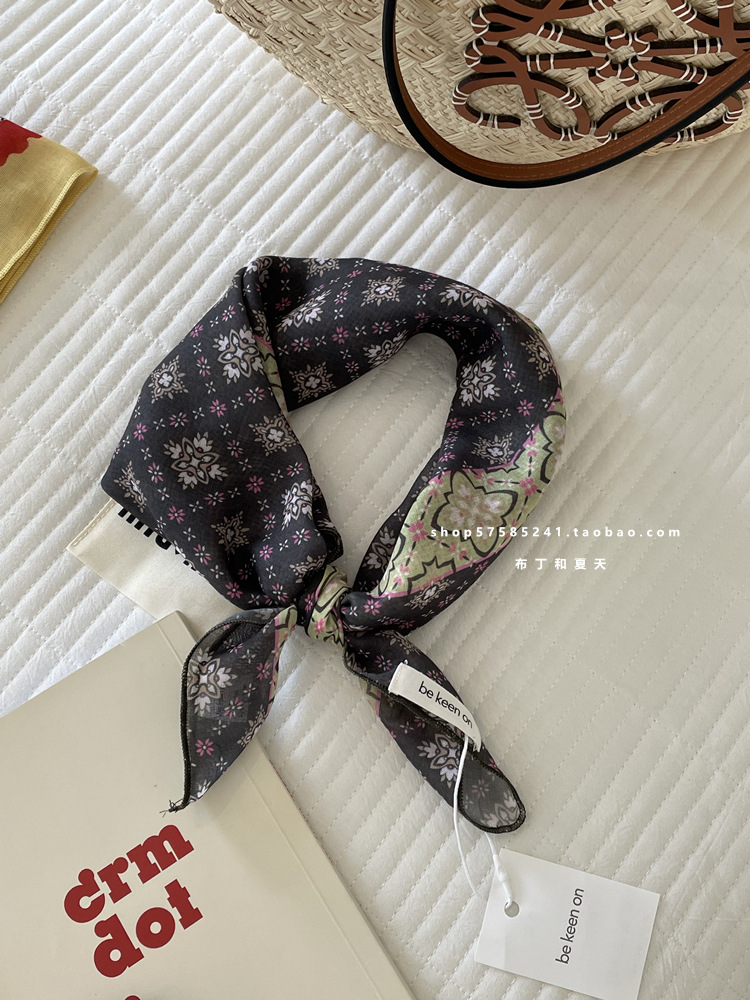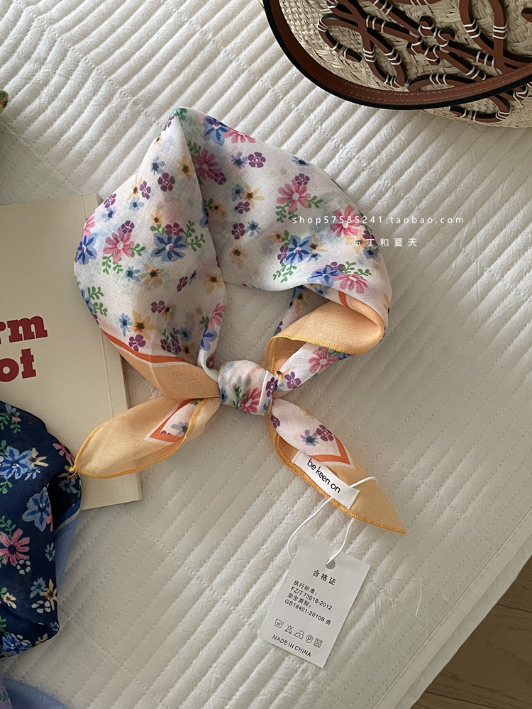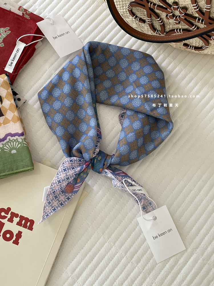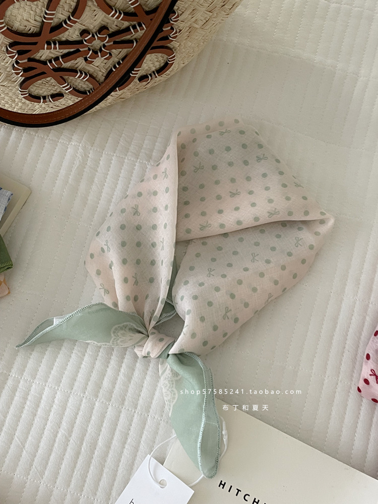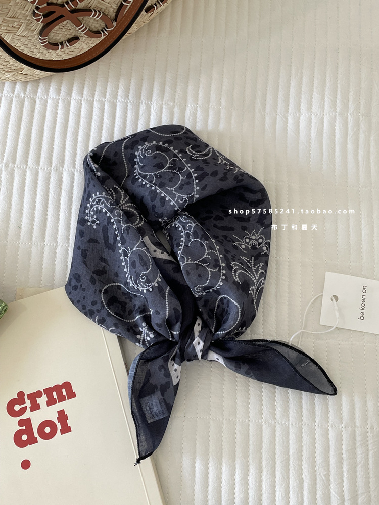 피부 친화적 인 부드러운면 및 린넨 통기성 목 보호 작은 사각형 웨이브 포인트 캐슈 꽃 터번 수출 한국 단일 스카프 실크 스카프 숙녀