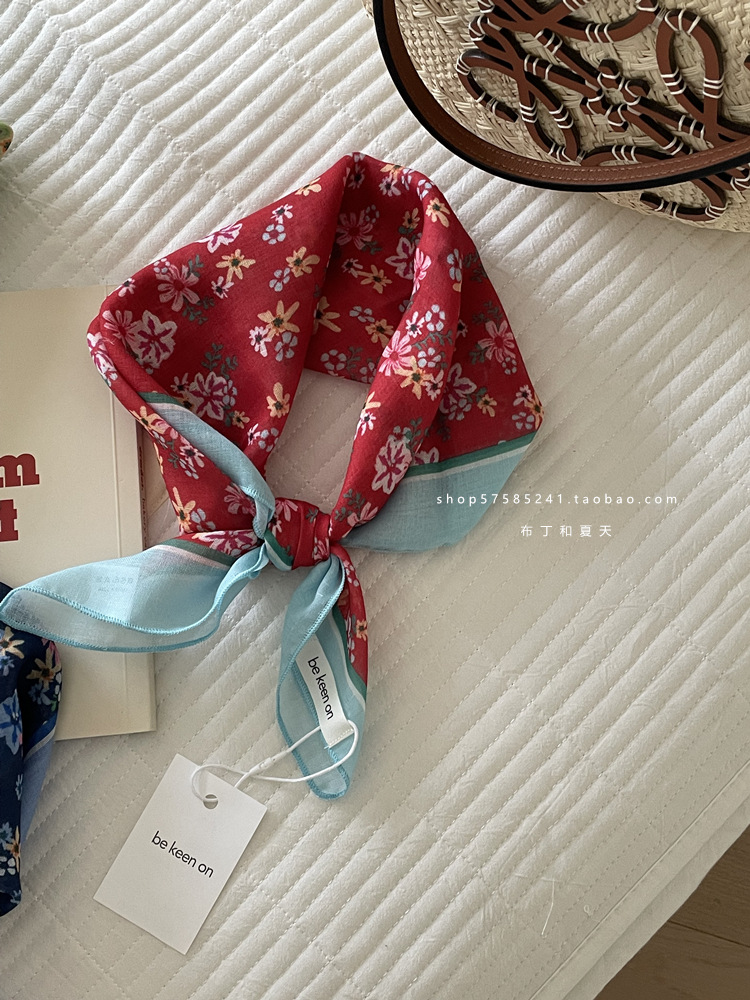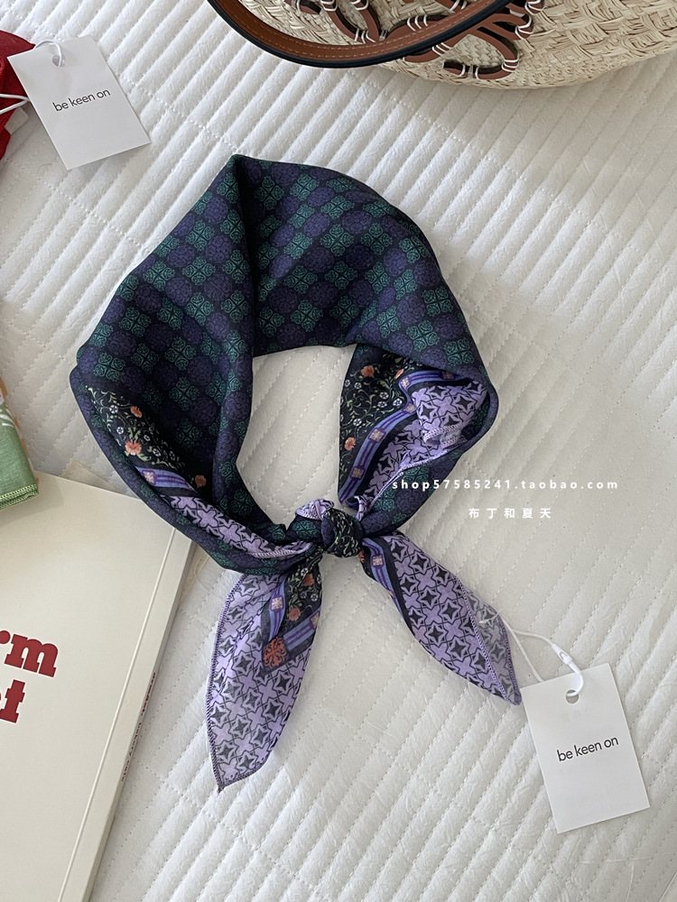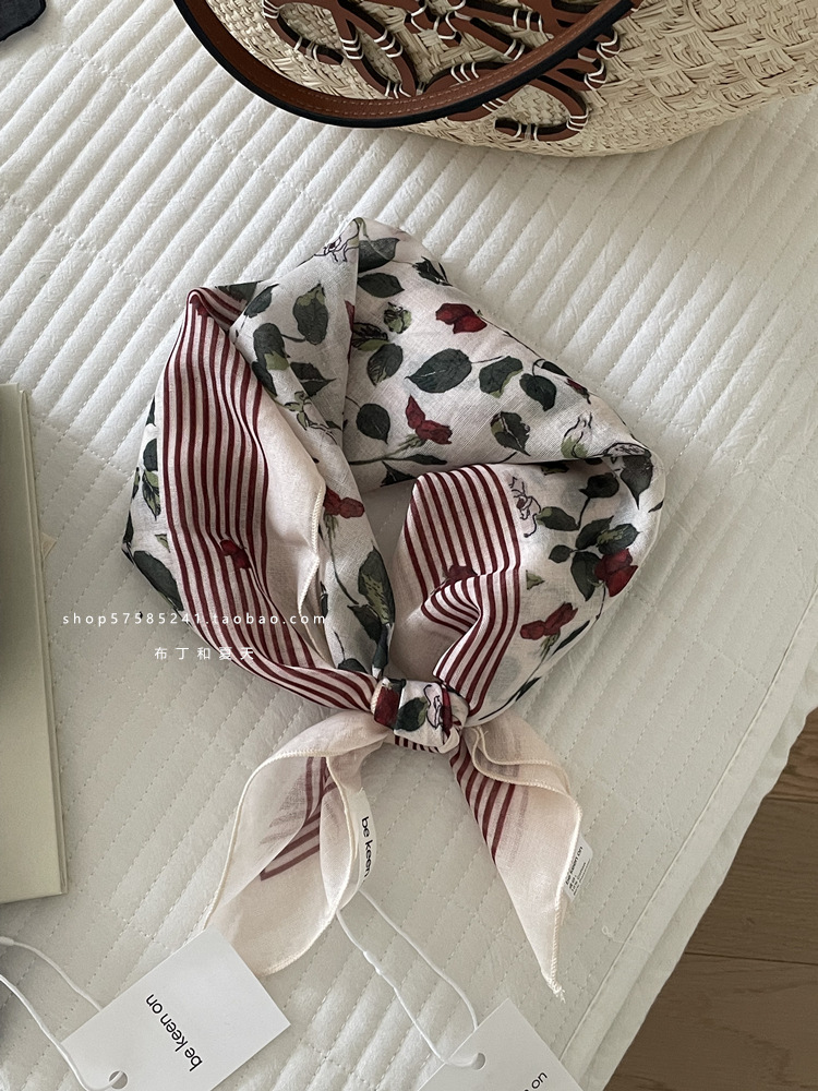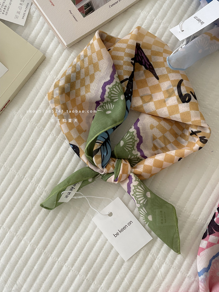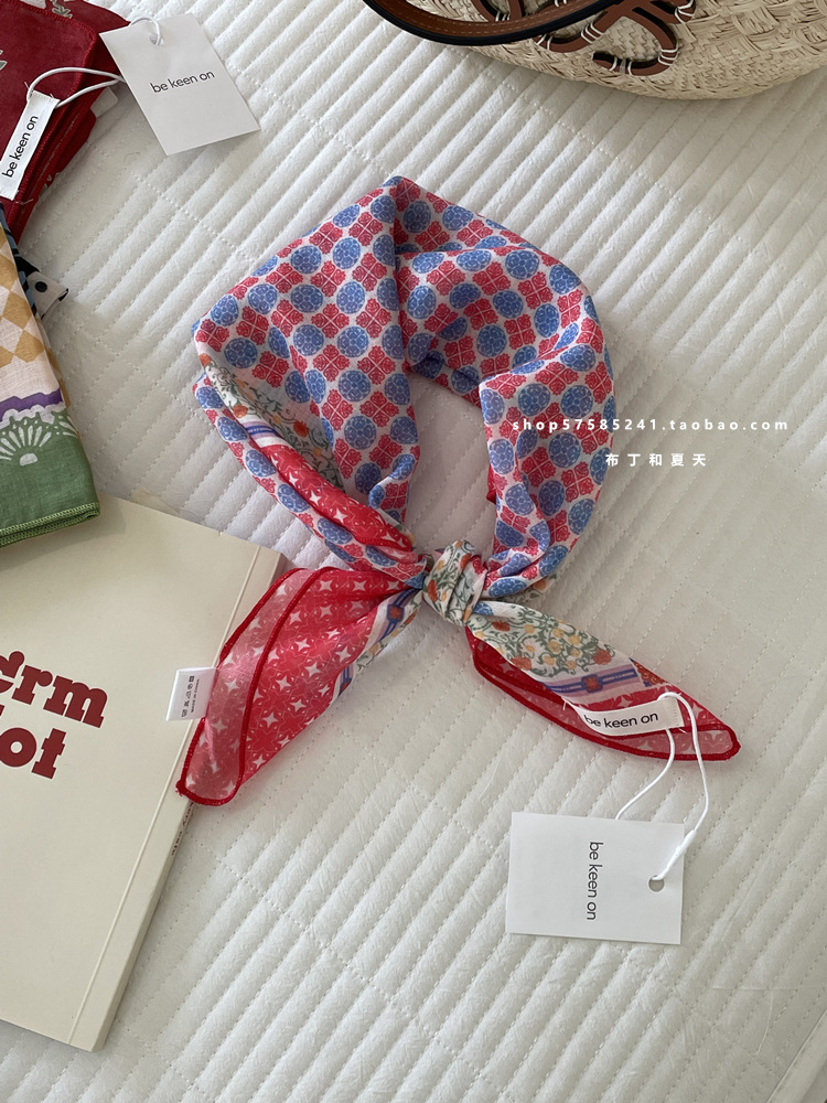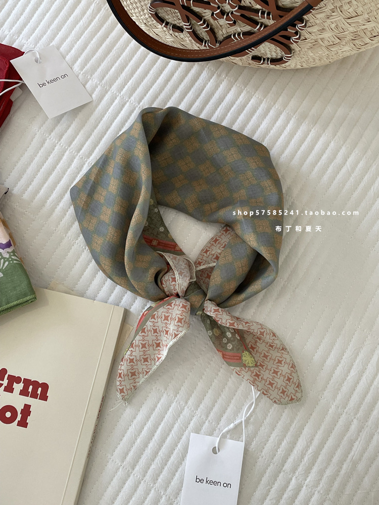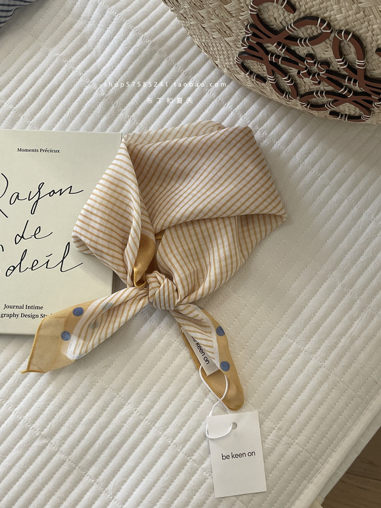 피부 친화적 인 부드러운면 및 린넨 통기성 목 보호 작은 사각형 웨이브 포인트 캐슈 꽃 터번 수출 한국 단일 스카프 실크 스카프 숙녀