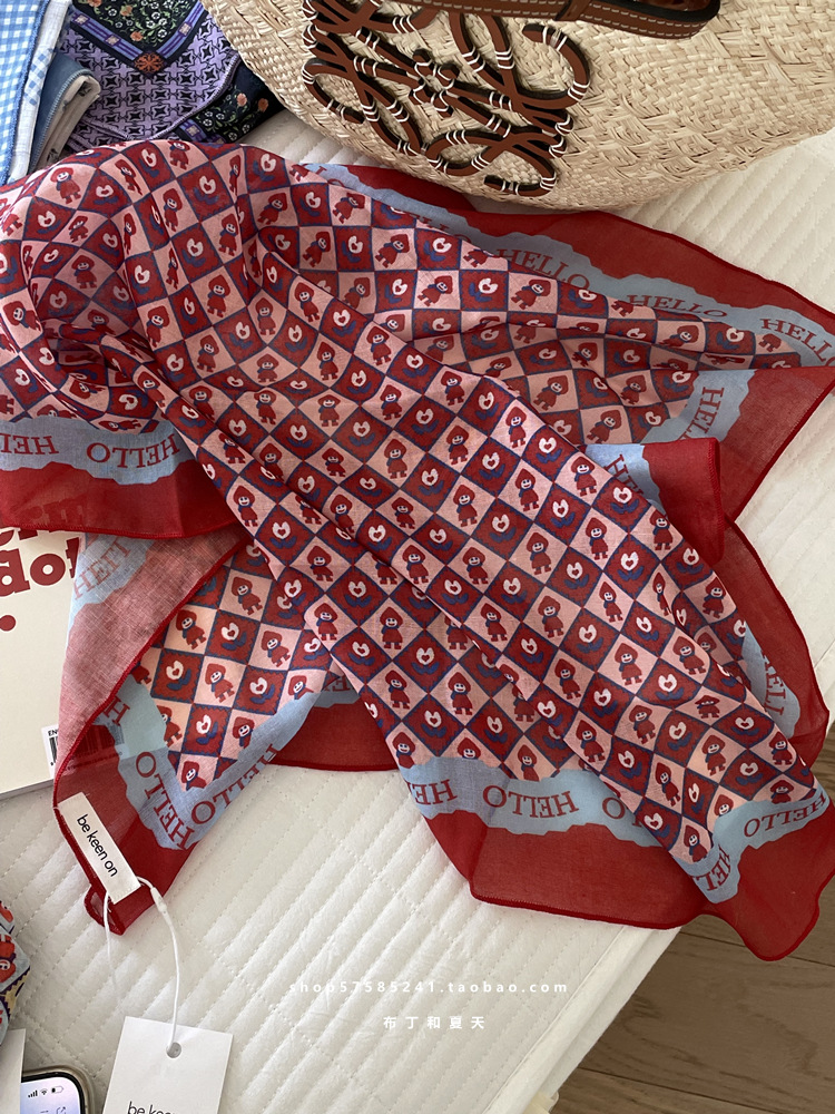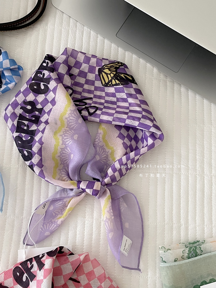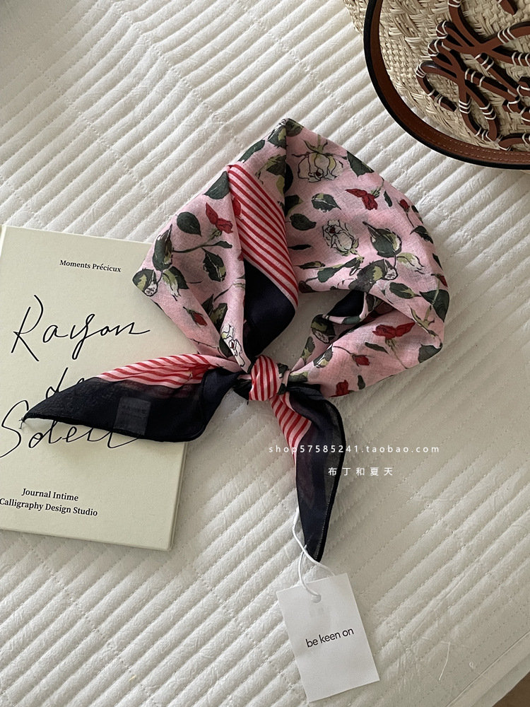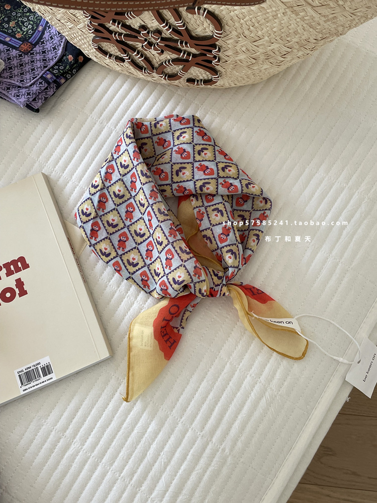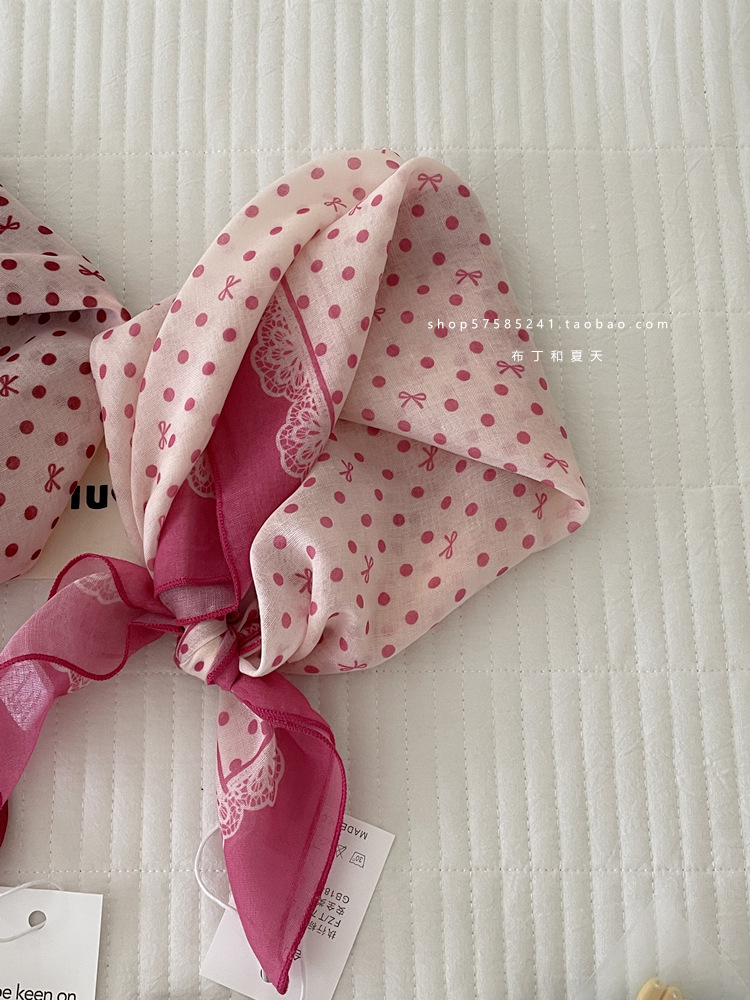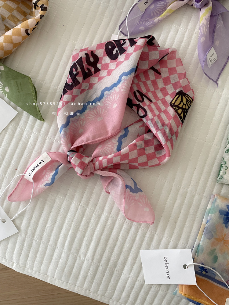 피부 친화적 인 부드러운면 및 린넨 통기성 목 보호 작은 사각형 웨이브 포인트 캐슈 꽃 터번 수출 한국 단일 스카프 실크 스카프 숙녀