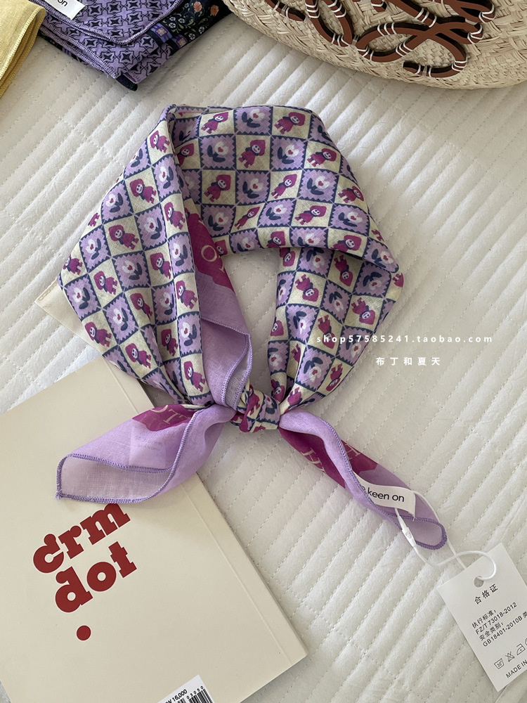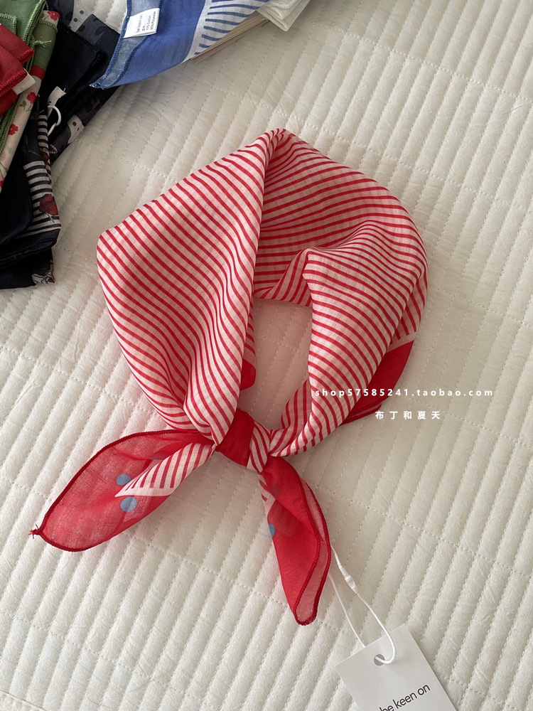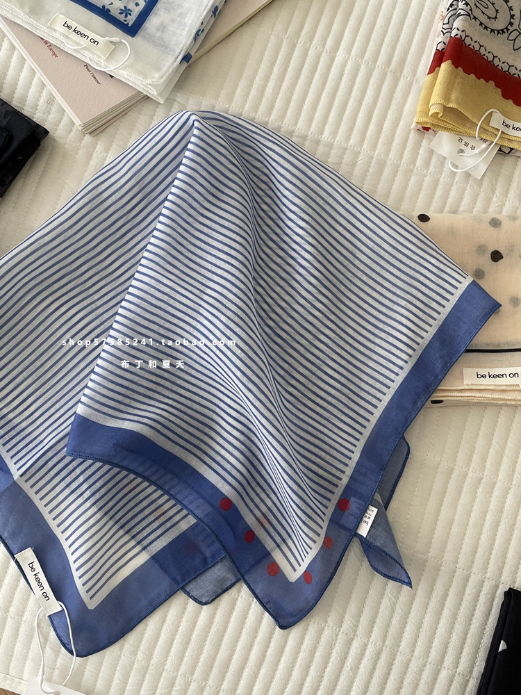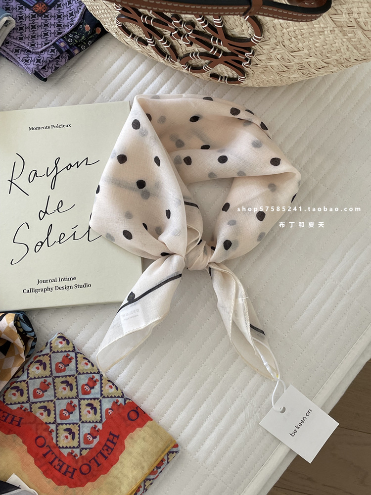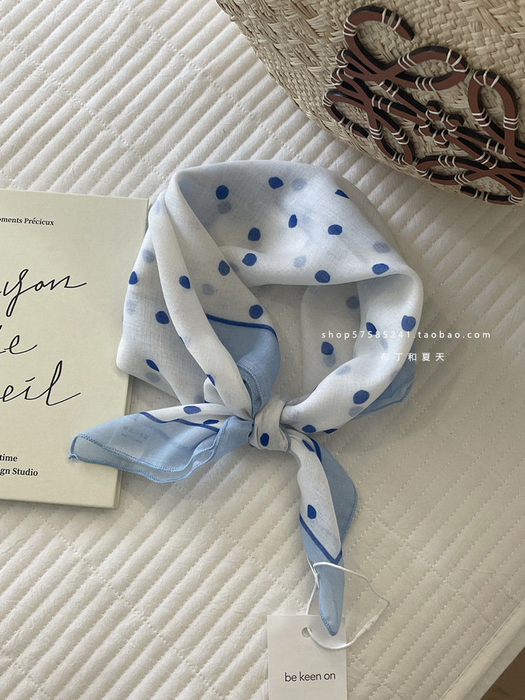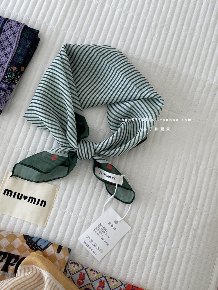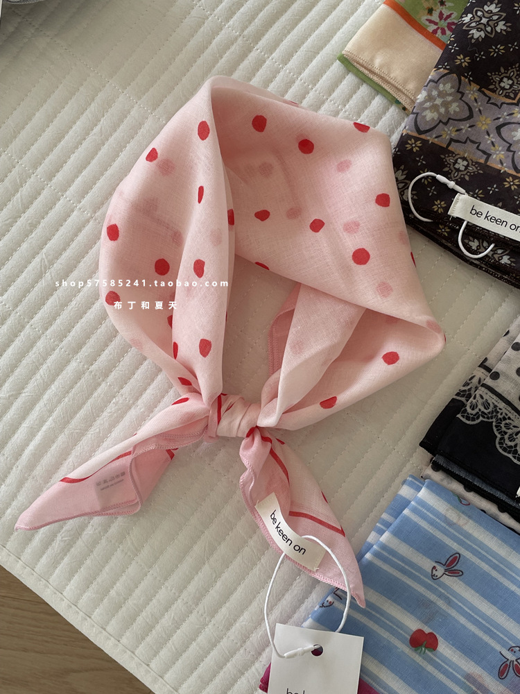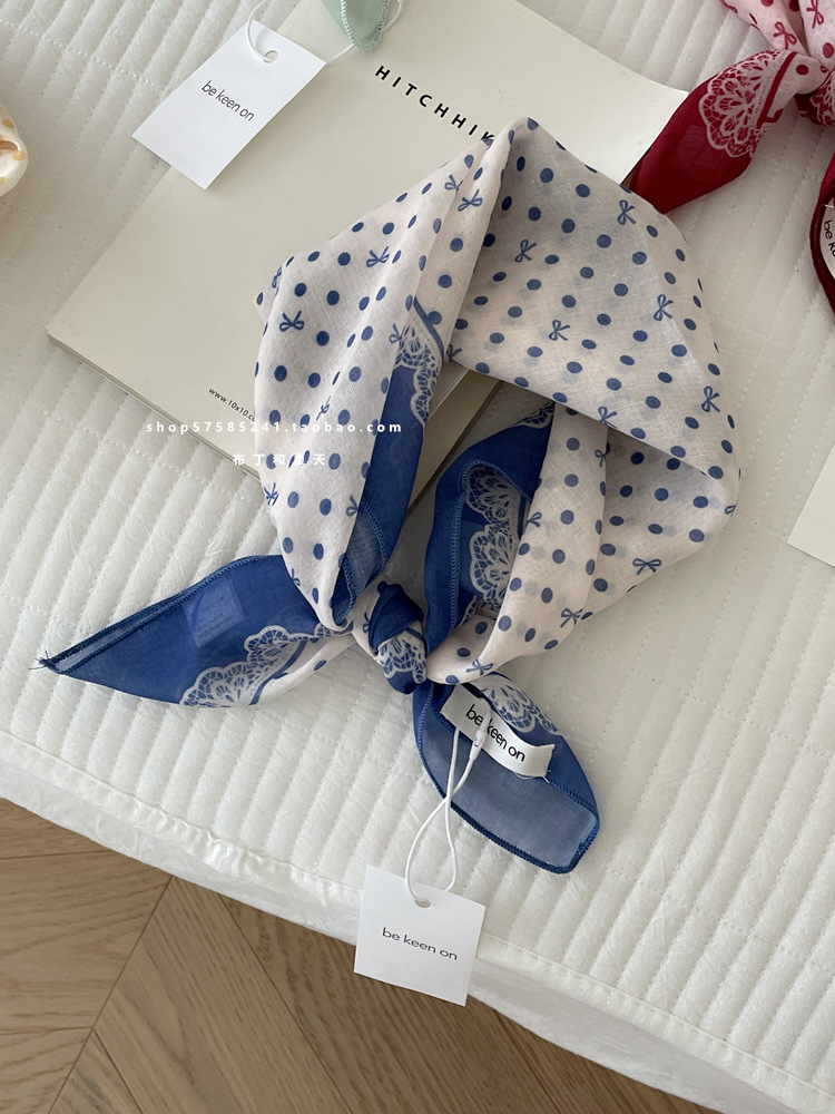피부 친화적 인 부드러운면 및 린넨 통기성 목 보호 작은 사각형 웨이브 포인트 캐슈 꽃 터번 수출 한국 단일 스카프 실크 스카프 숙녀스토어 가기