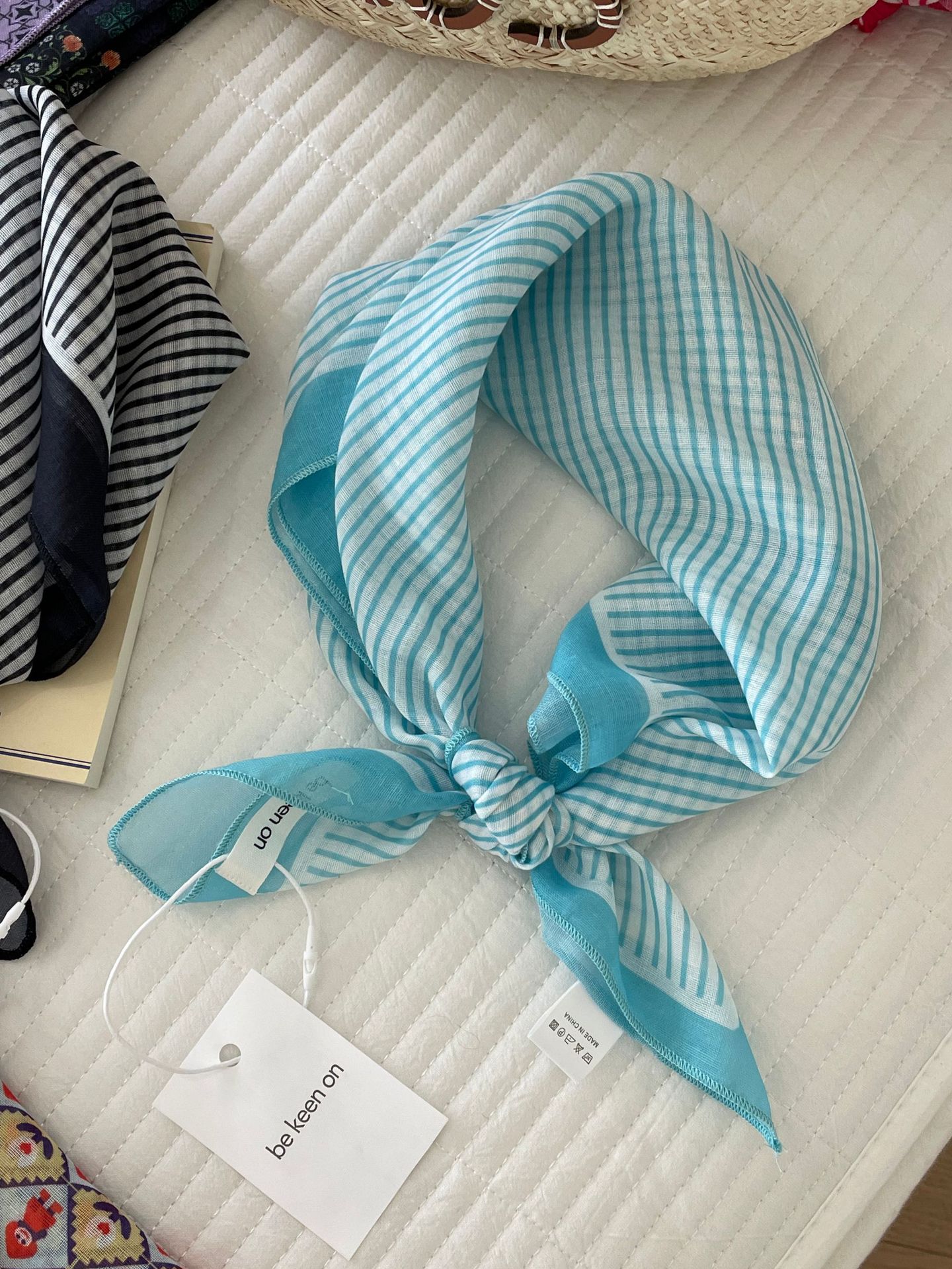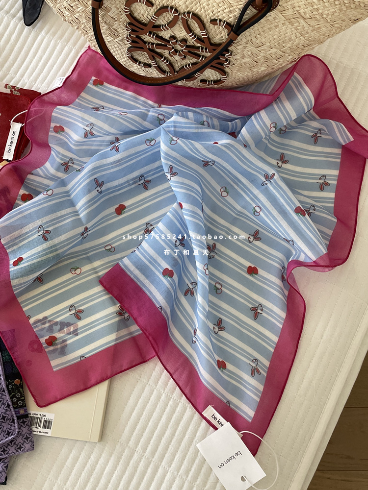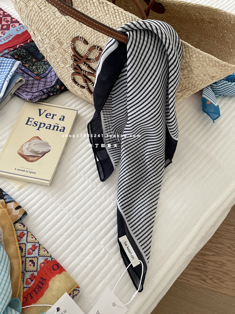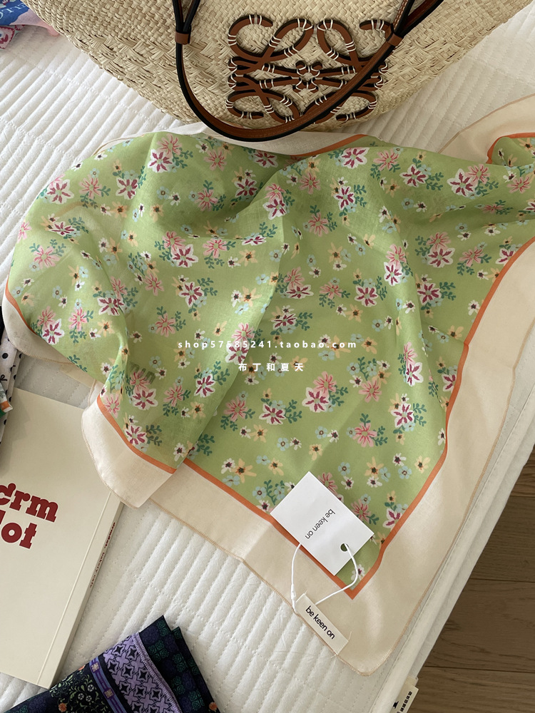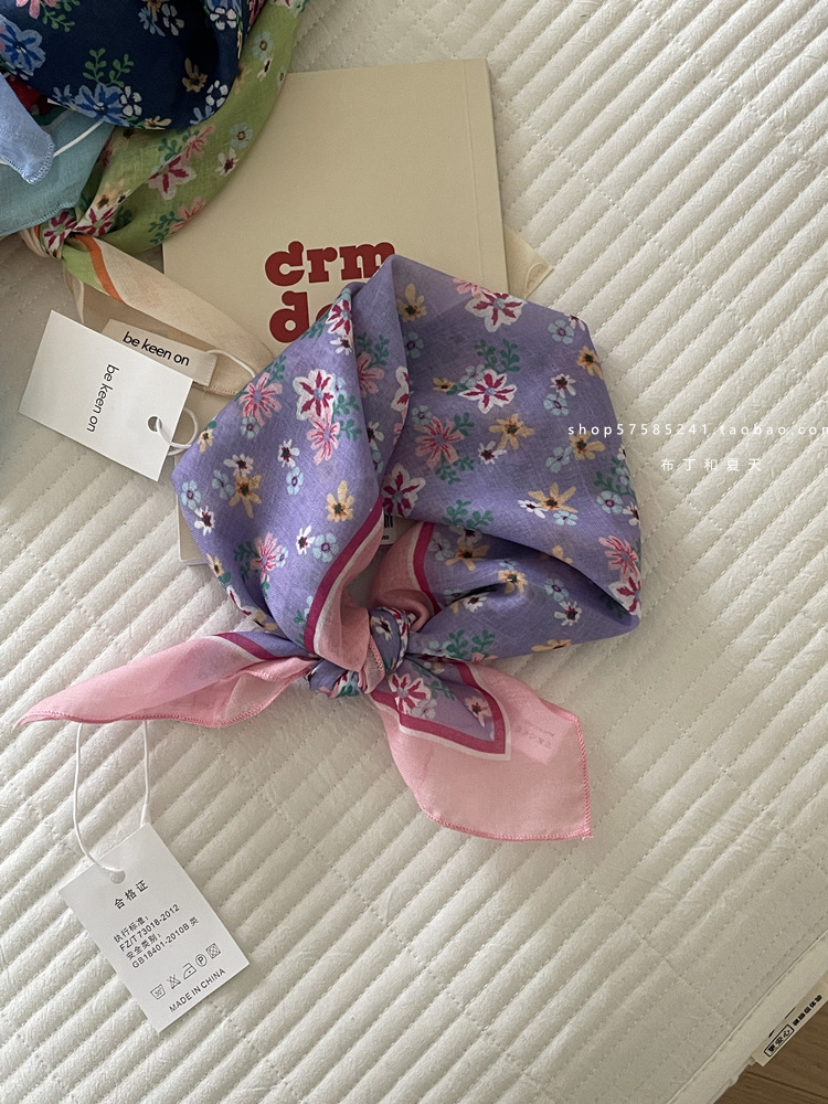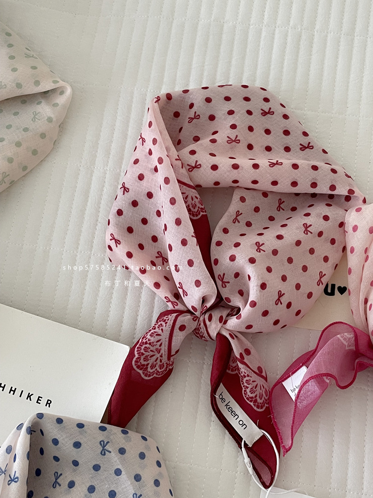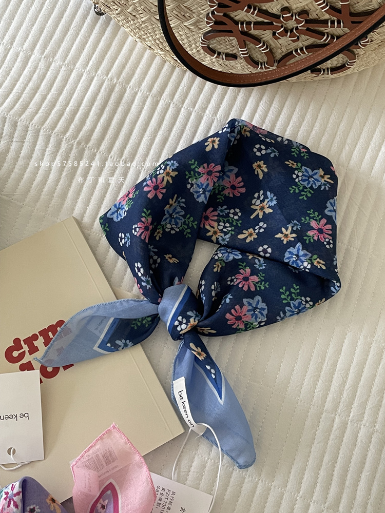 피부 친화적 인 부드러운면 및 린넨 통기성 목 보호 작은 사각형 웨이브 포인트 캐슈 꽃 터번 수출 한국 단일 스카프 실크 스카프 숙녀스토어 가기