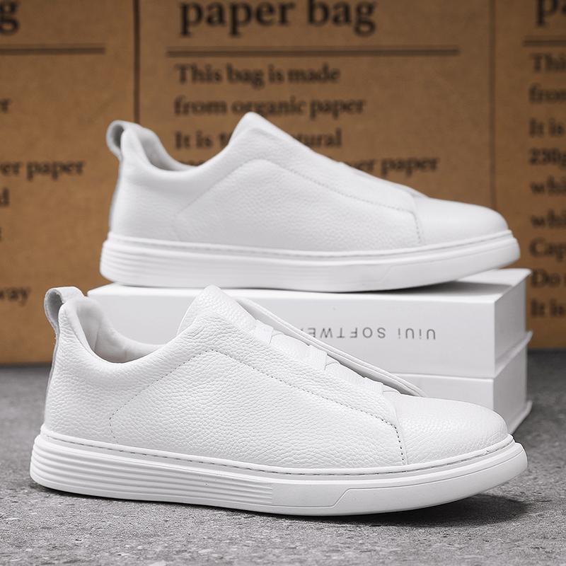 남성용 끈이 없는 슬립온 신발 2025 봄 캐주얼 부드러운 밑창 미끄럼 방지 스포츠 운동화 남성용 게으른 운전용 가죽 신발스토어 가기
