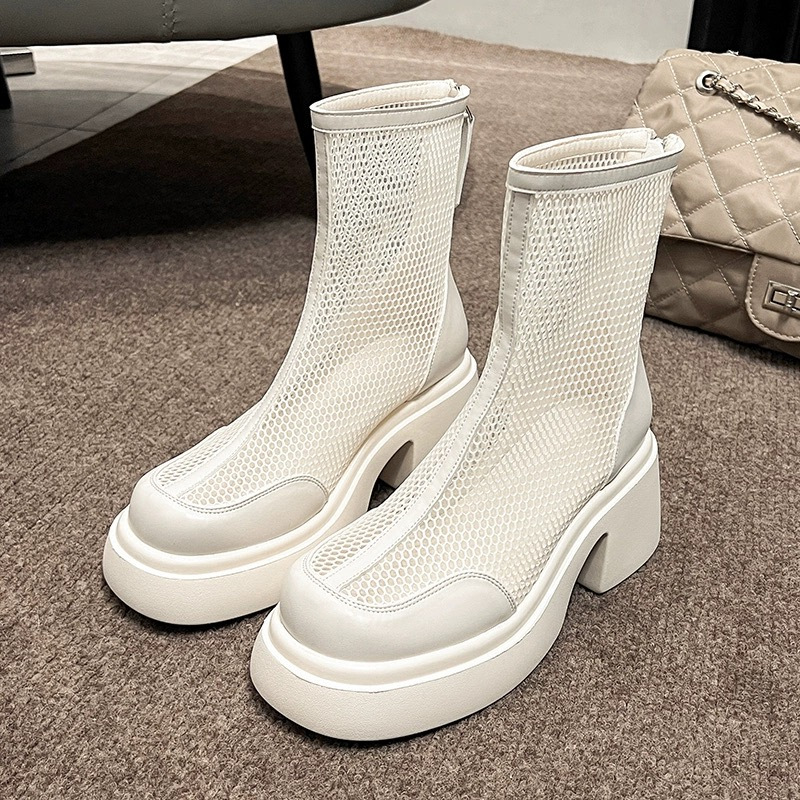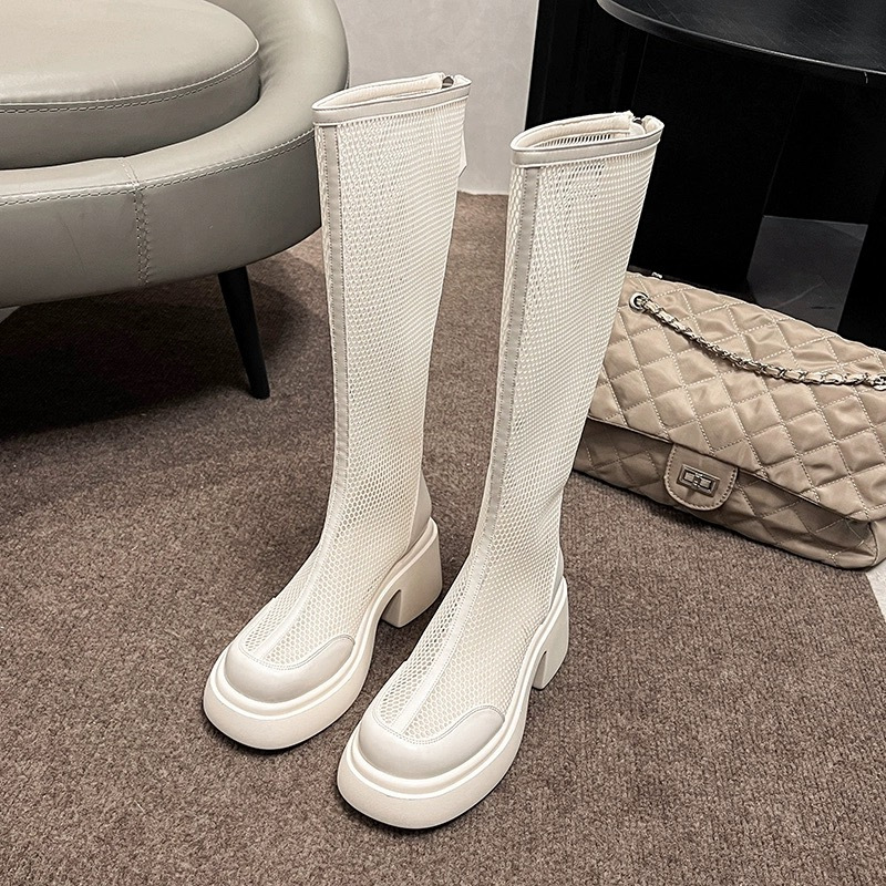 부드러운 가죽 메쉬 롱 부츠 여성 여름 얇은 통기성 중공 높은 배럴 쿨 부츠 작은 하이힐 무릎 나이츠 부츠스토어 가기