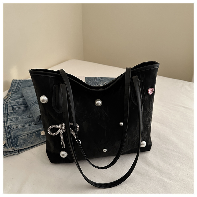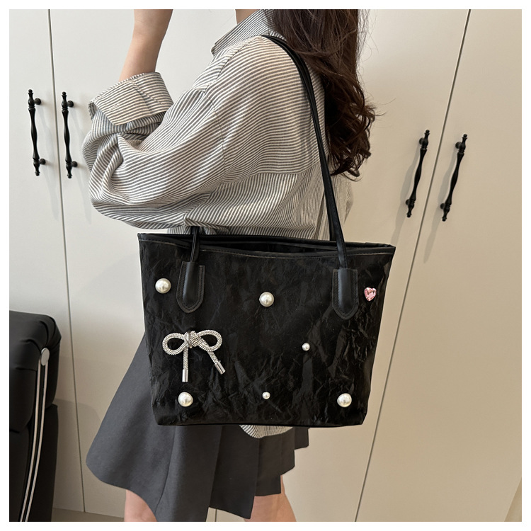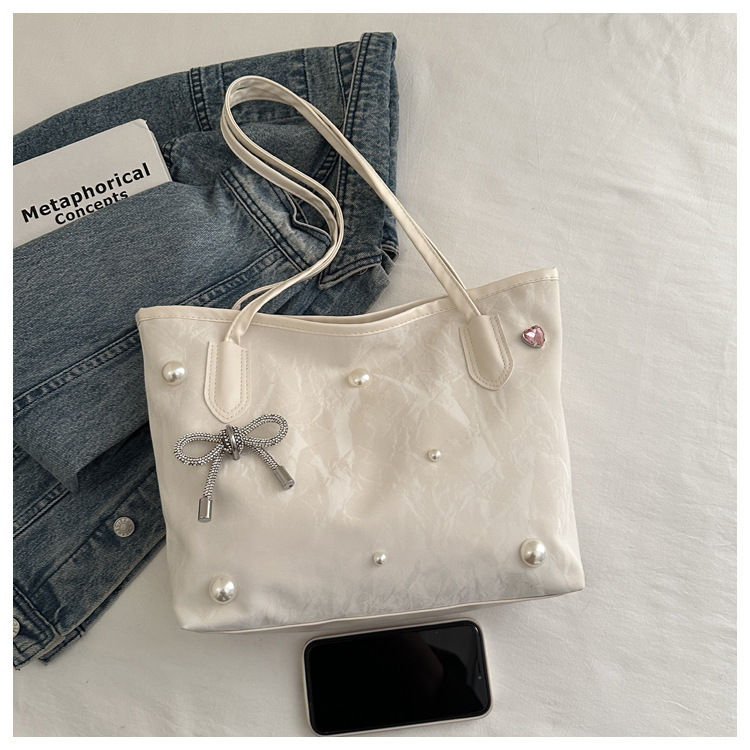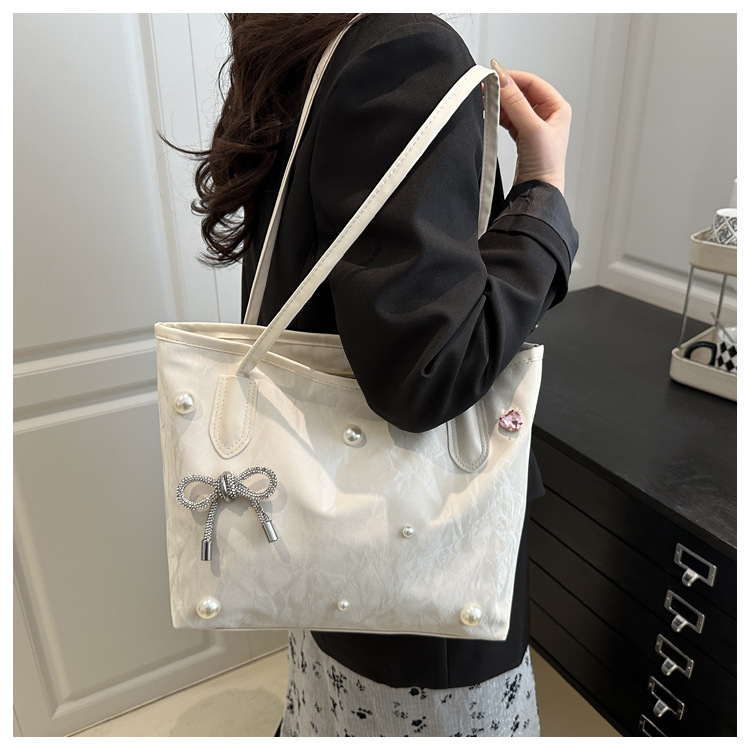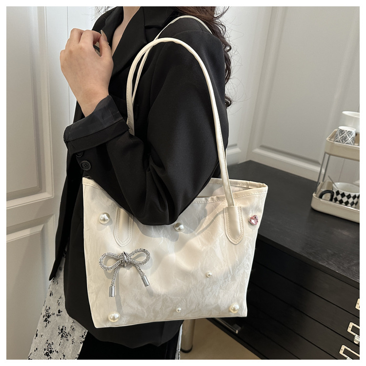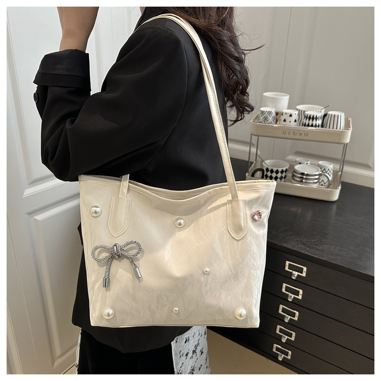 대용량 나비 2025 새로운 유행 솔리드 컬러 통근 독특한 리벳 세련된 캐주얼 언더암 토트 백스토어 가기