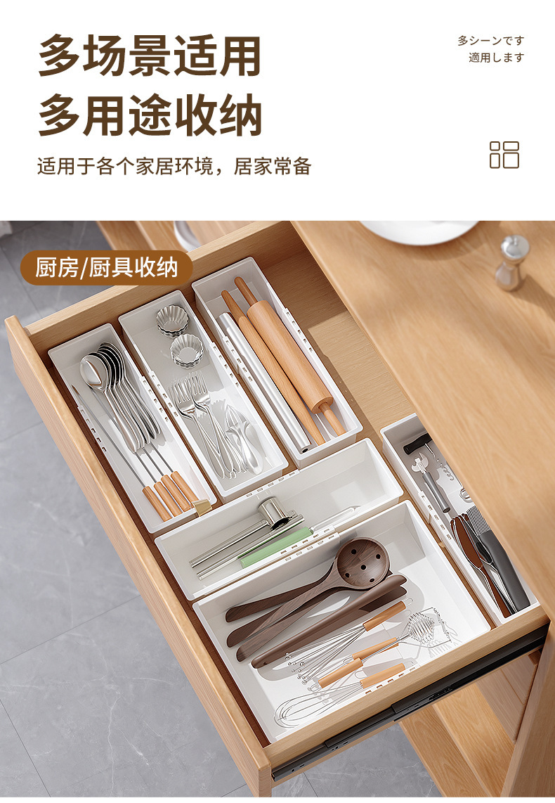 접이식 서랍형 플라스틱 분류 수납함, 사무용품 및 식기류 다기능 정리함, 좁고 긴 수납함