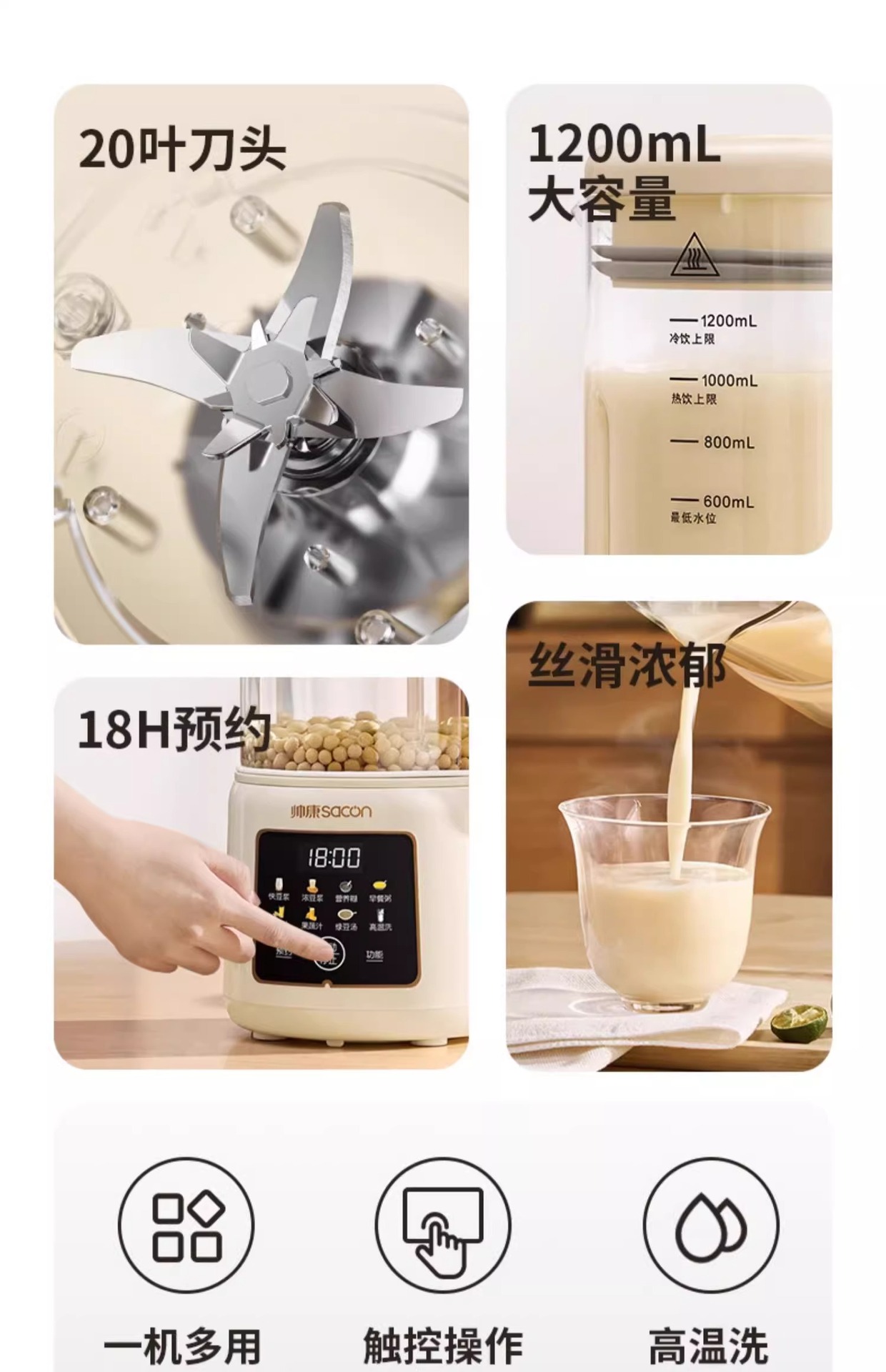 Shuaikang 벽 깨는 기계 가정용 자동 작은 콩 우유 기계 2025 새로운 다기능 요리 기계 대용량 벽 깨기