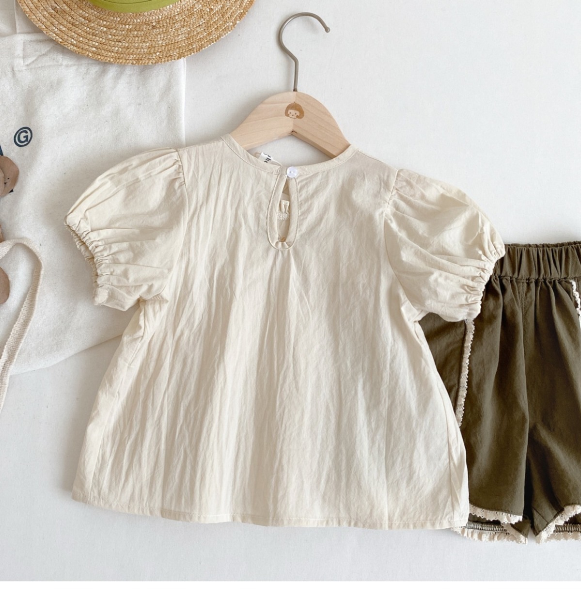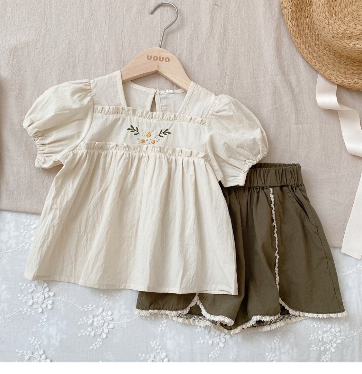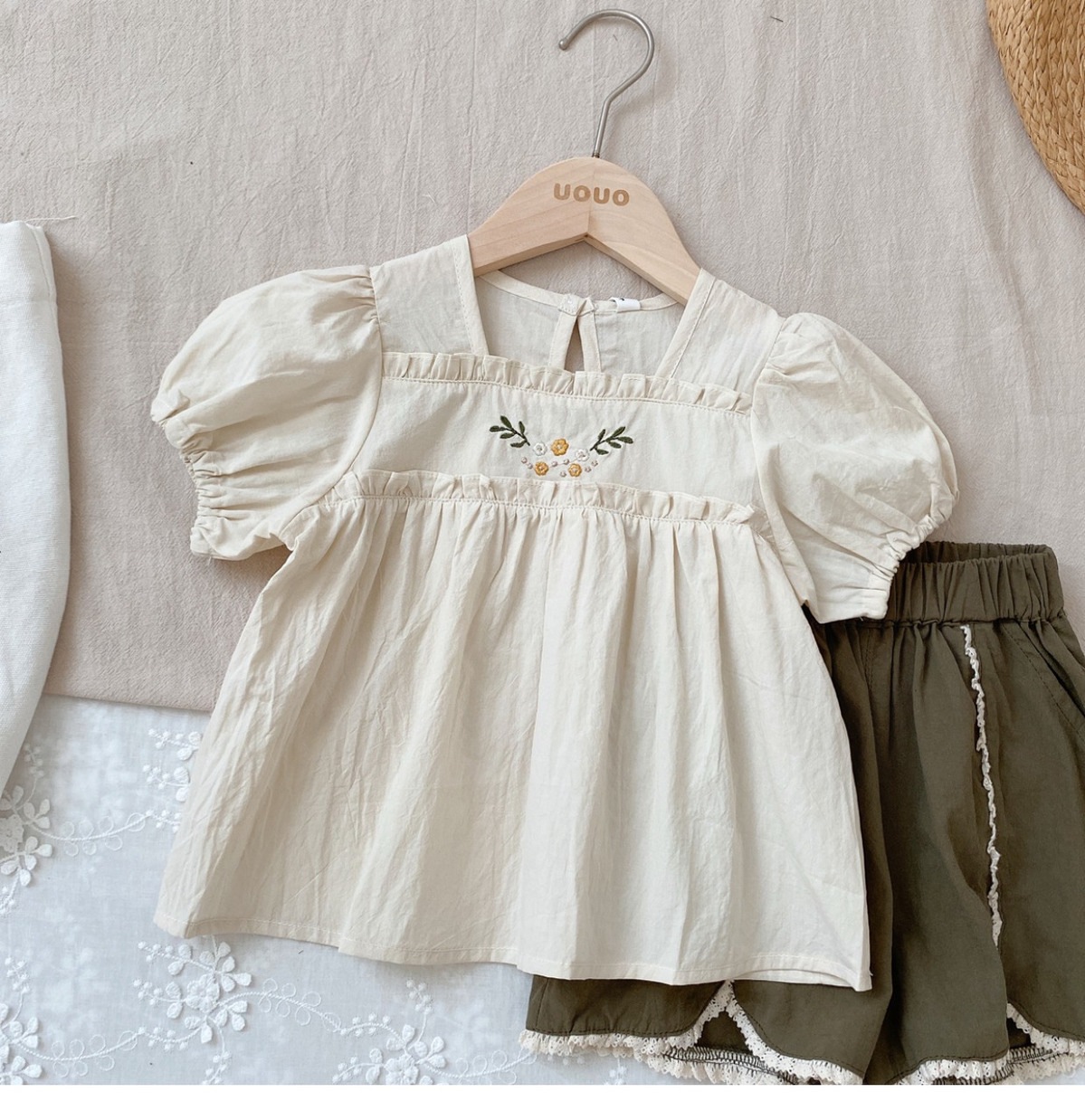 여자 여름 반팔 셔츠 인형 셔츠 아기 세련된 어린이 성격 유행 한국 스타일 달콤한 자수 꽃 셔츠스토어 가기