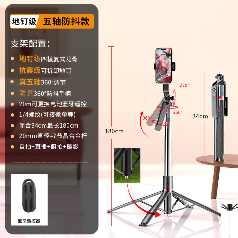 • S186 4다리 셀카봉에는 못이 없고 알루미늄 합금 모델이며 조명이 없습니다.