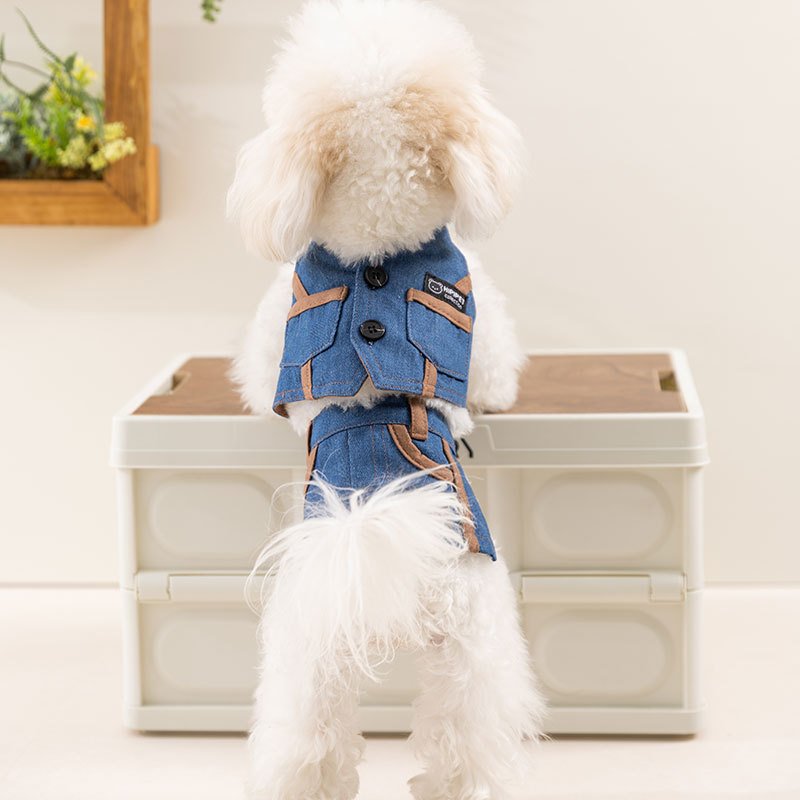 25 년 새 봄과 여름 개 옷 중소 개 데님 투피스 조끼 테디 보메이 애완 동물 옷