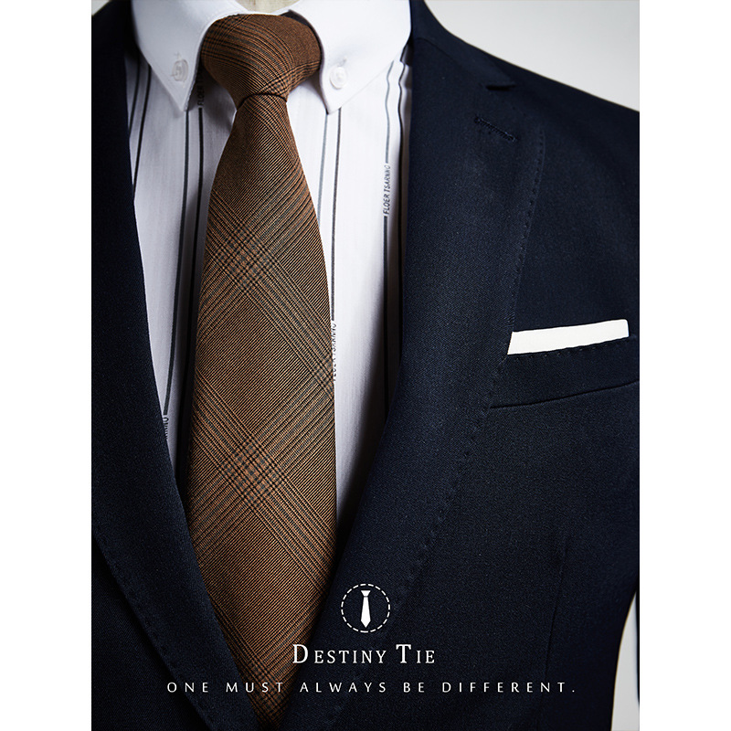 • 브라운 트윌 8cm 핸드 프린팅 스타일