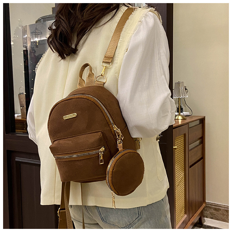 2025 새로운 도착 대용량 플란넬 유행 한국 스타일 단색 유행 캐주얼 학생 스쿨백 배낭 여성용 가방