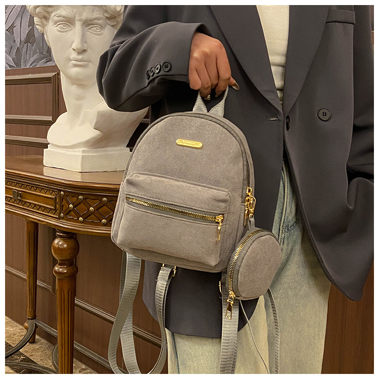 2025 새로운 도착 대용량 플란넬 유행 한국 스타일 단색 유행 캐주얼 학생 스쿨백 배낭 여성용 가방스토어 가기