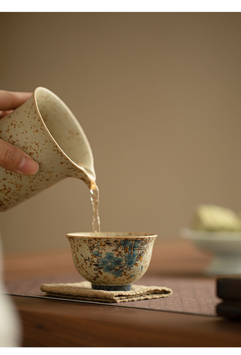 Jingdezhen 파란색과 Blossom 빈티지 거친 도자기 창 오프닝 티 컵 세라믹 티 세트 마스터 컵 게스트 컵 차 시음 컵 쿵푸 차 세트스토어 가기