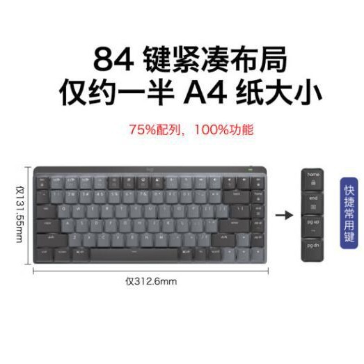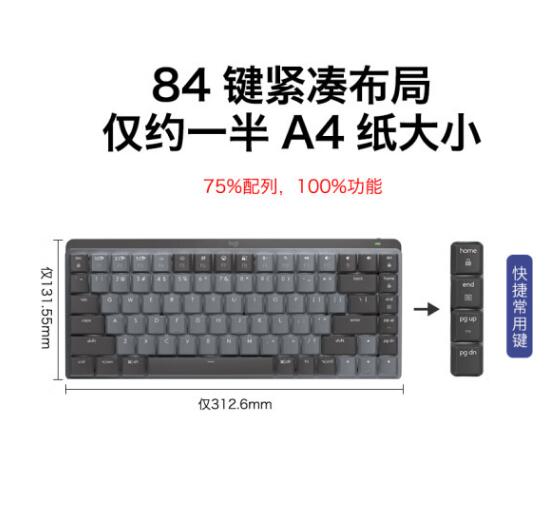 罗技(Logitech)大师系列 MX Mechanical 高性能低噪无线双模迷你机械键盘 84键 段落茶轴