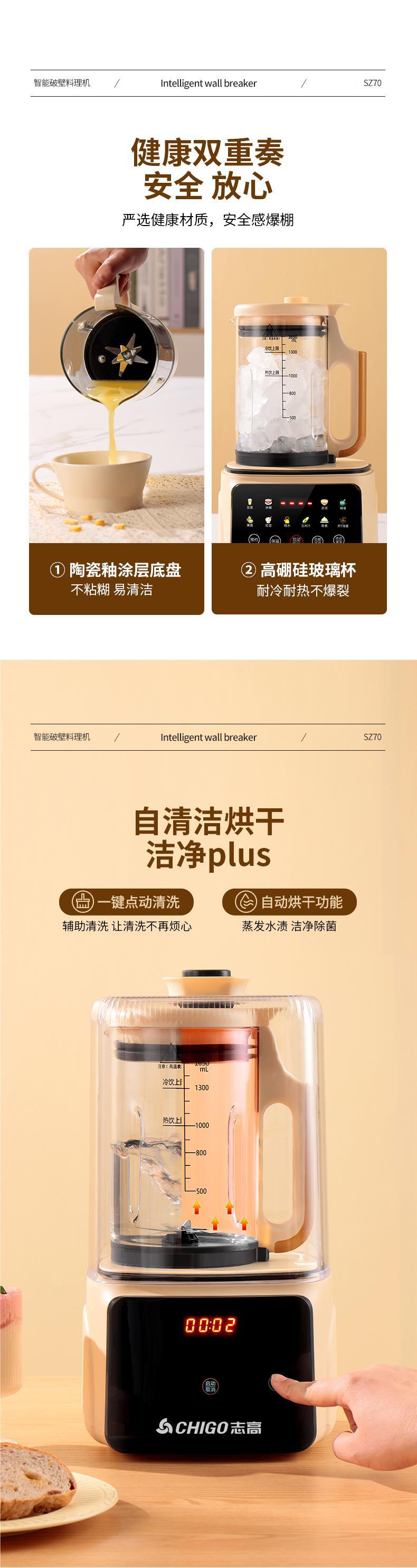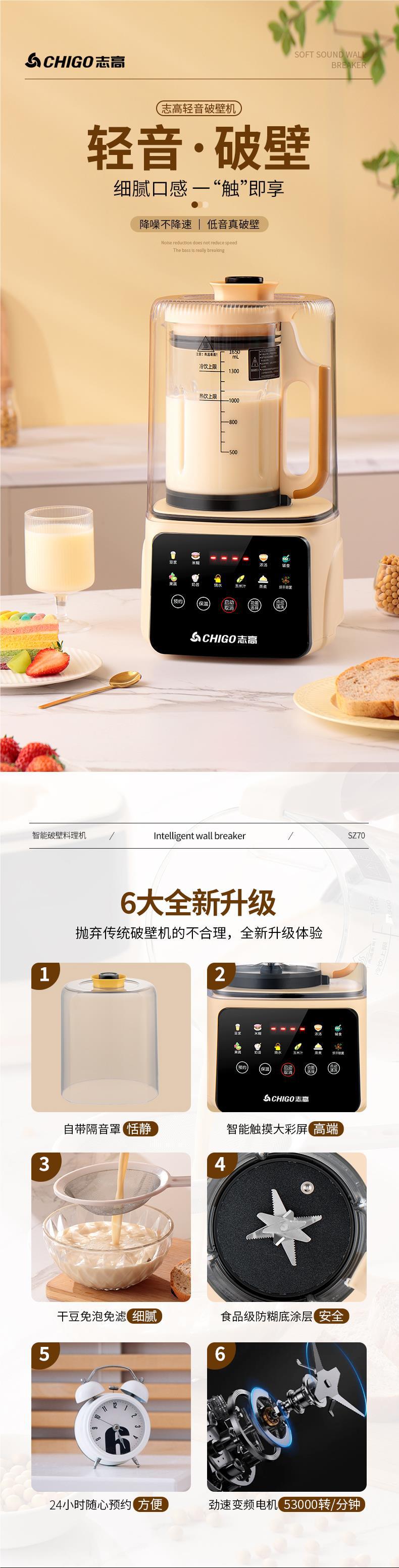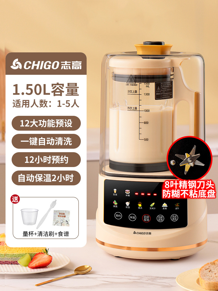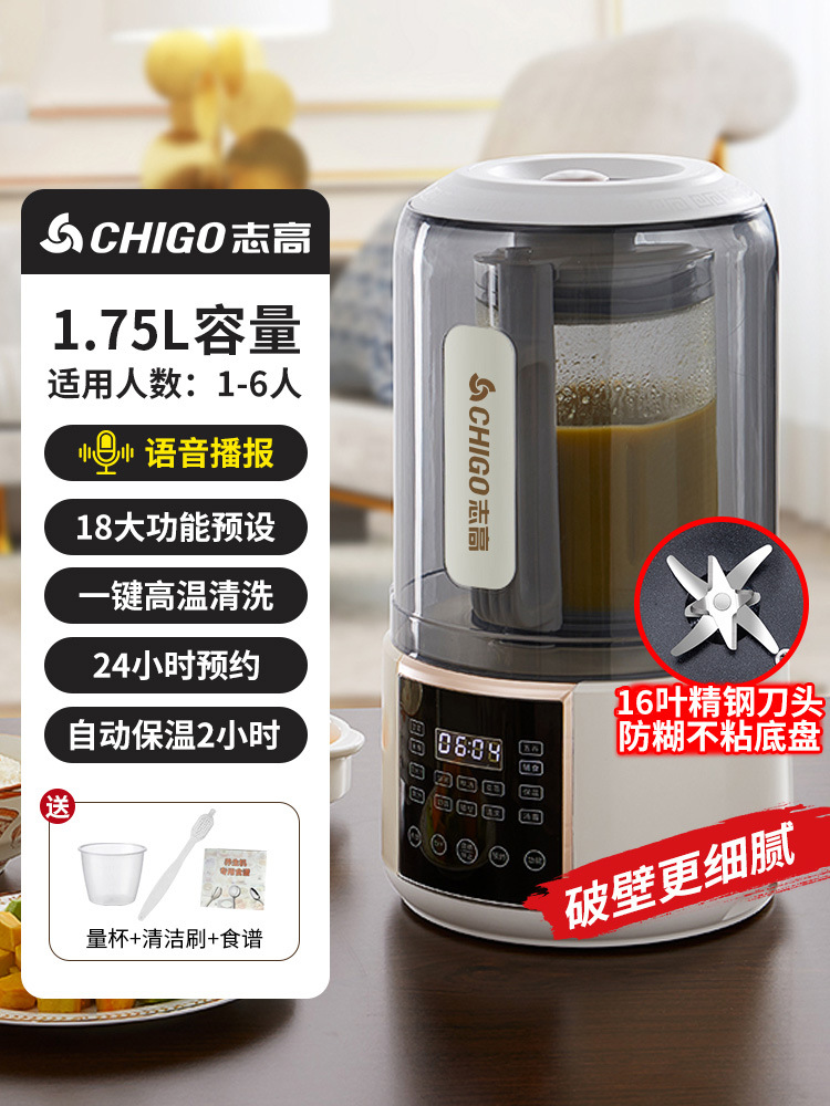 Zhigao 벽 깨는 기계 가정용 완전 자동 작은 콩 우유 기계 다기능 비 침묵 슬래그없는 식품 과즙 짜기 통합