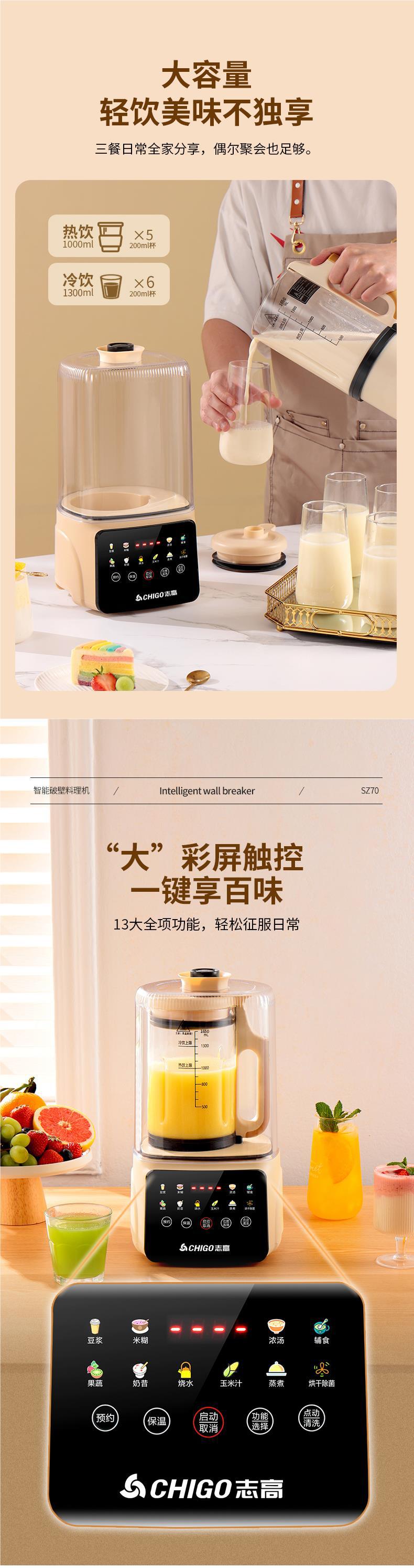 Zhigao 벽 깨는 기계 가정용 완전 자동 작은 콩 우유 기계 다기능 비 침묵 슬래그없는 식품 과즙 짜기 통합스토어 가기
