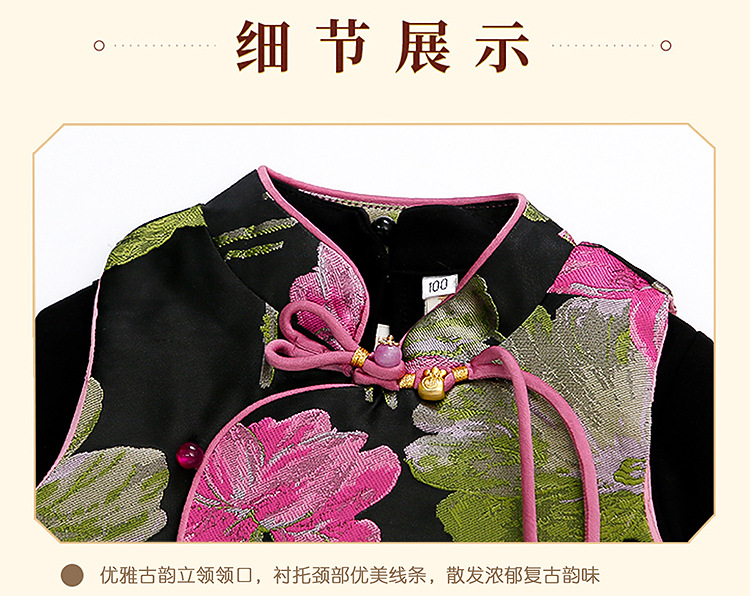 2025 새로운 소녀의 봄과 가을 중국 스타일 골동품 세트 소녀의 어린이 긴 소매 최고 조끼 3 조각 세트스토어 가기