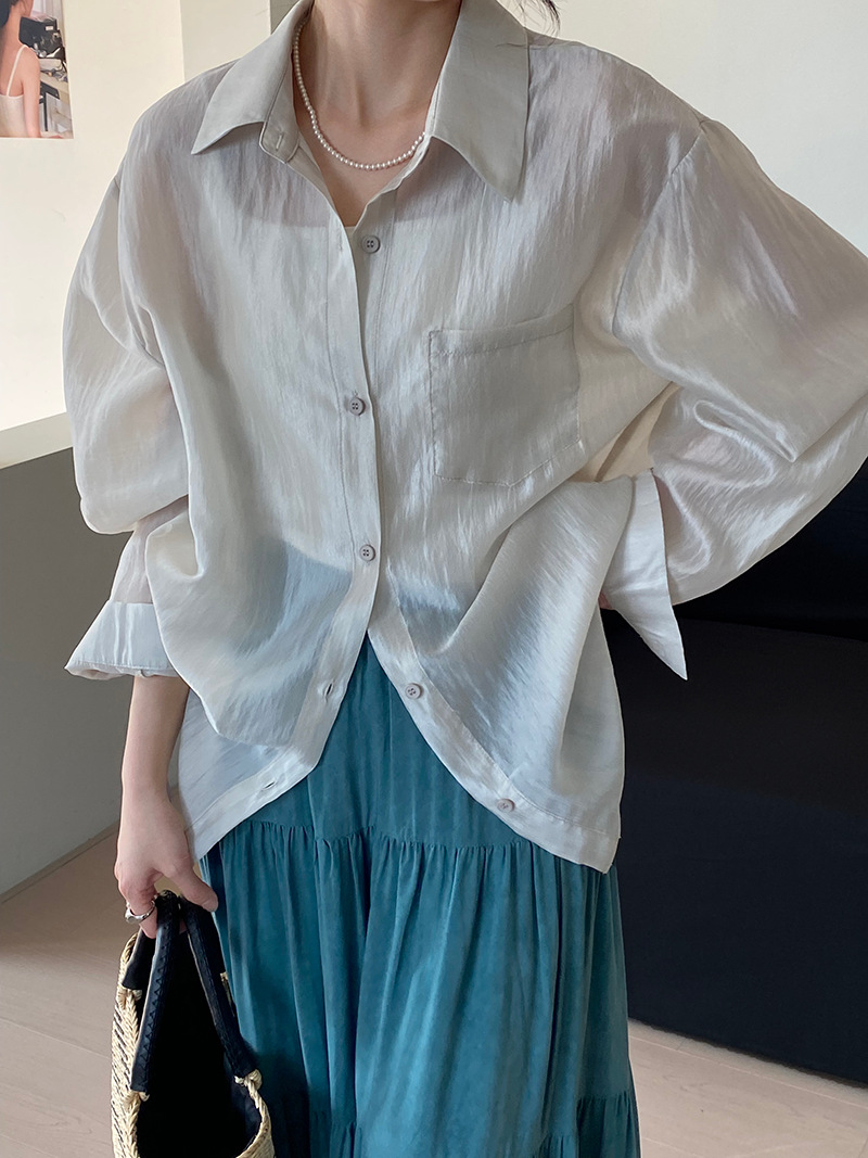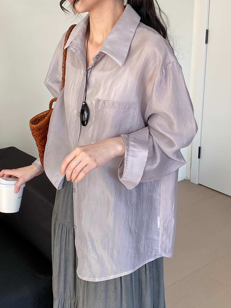봄과 여름의 끝에서 착용 사랑! 83 텐셀 마이크로 투명 셔츠 코트 여성용 느슨한 얇은 태양 보호 셔츠 탑 5011