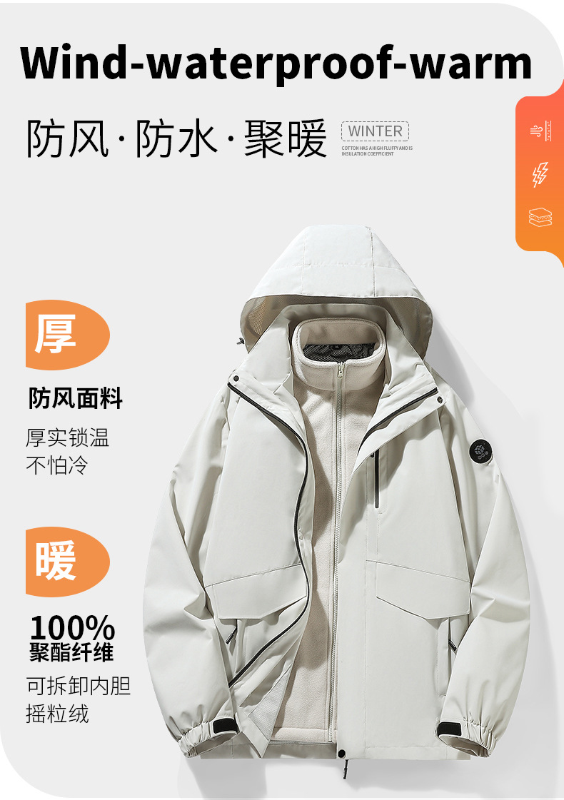 신형 남녀공용 방수 방한 플리스 안감 커플용 3-in-1 탈부착 가능 자켓스토어 가기