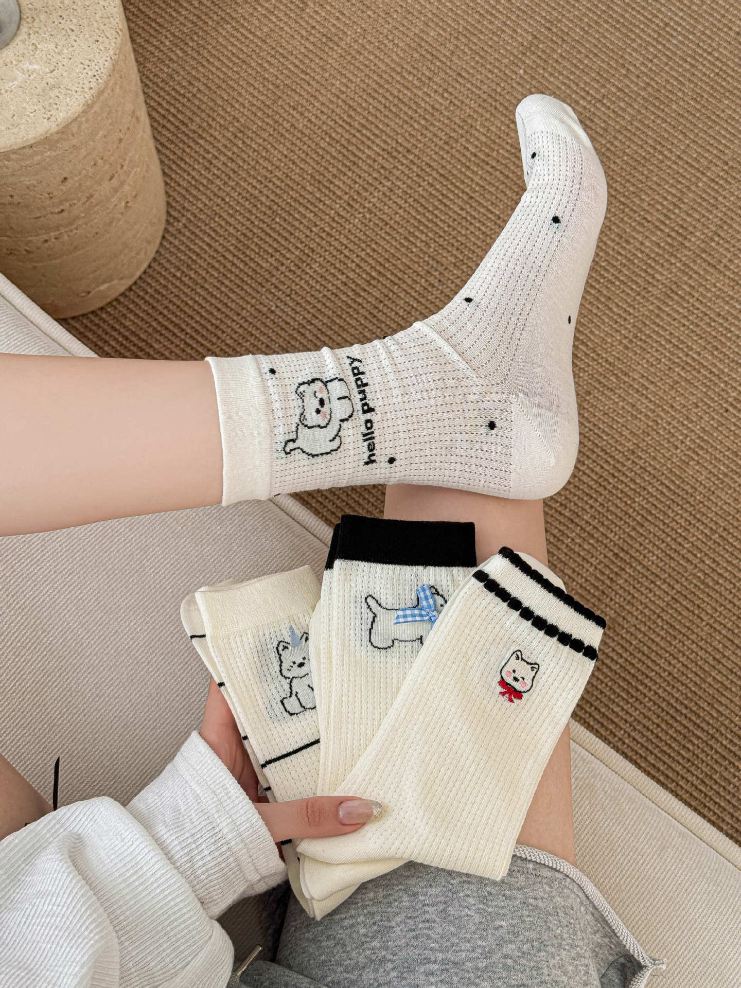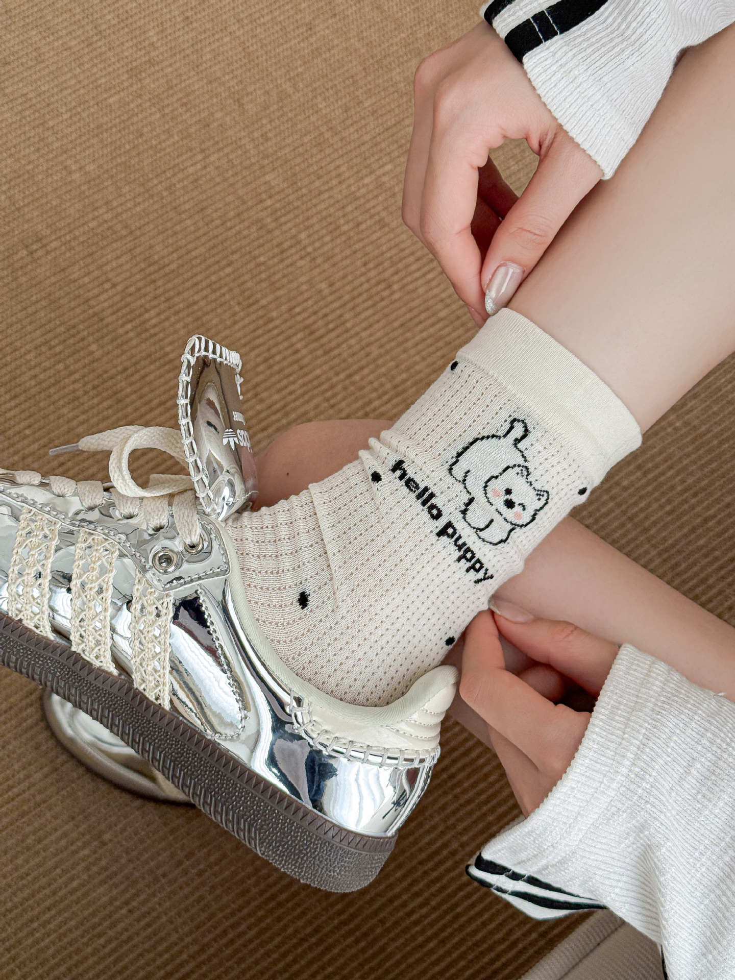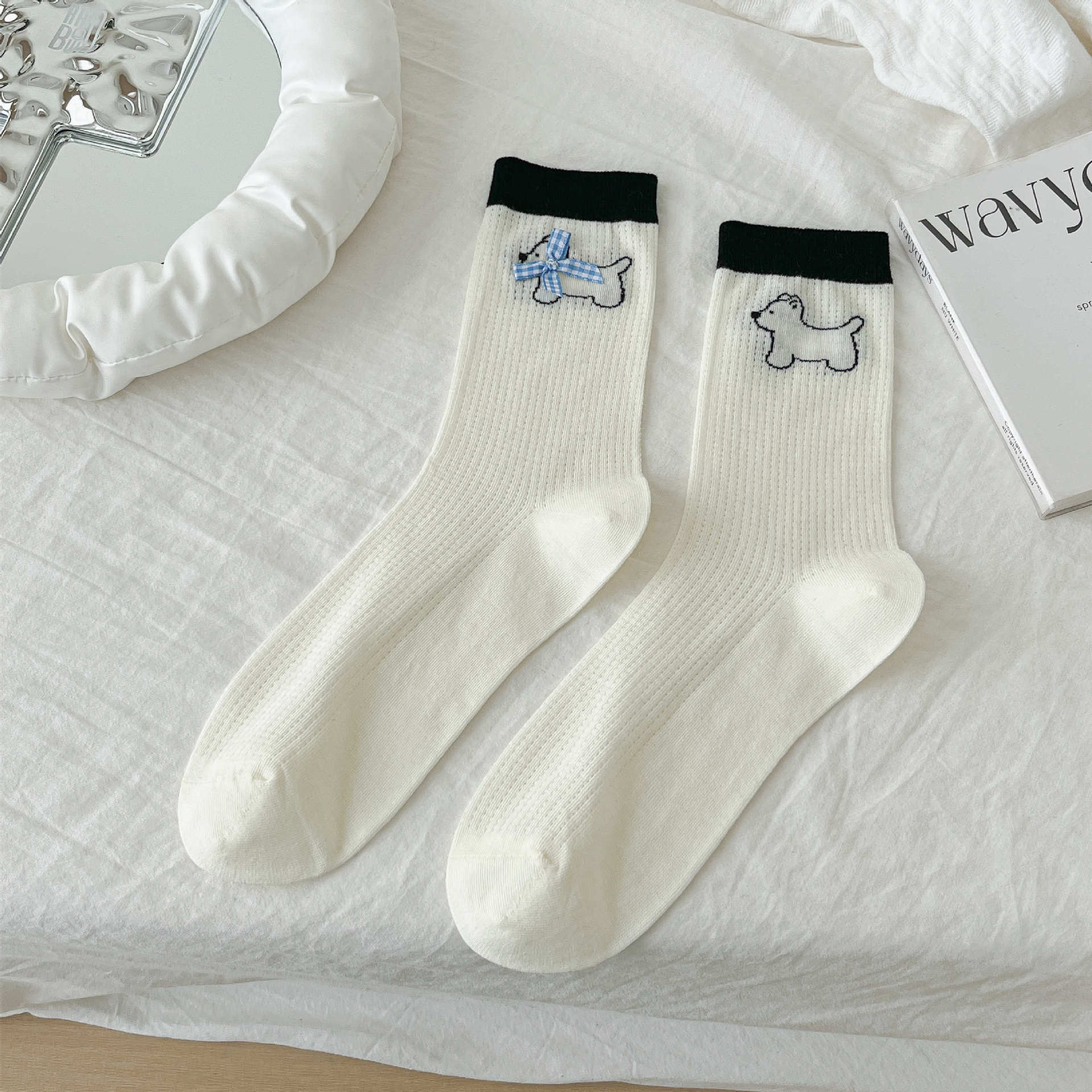 활 강아지 양말 여성용 메쉬 미드 튜브 여성용 양말 만화 웨이브 도트 스트라이프 신선한 여성의 미드 튜브 양말스토어 가기