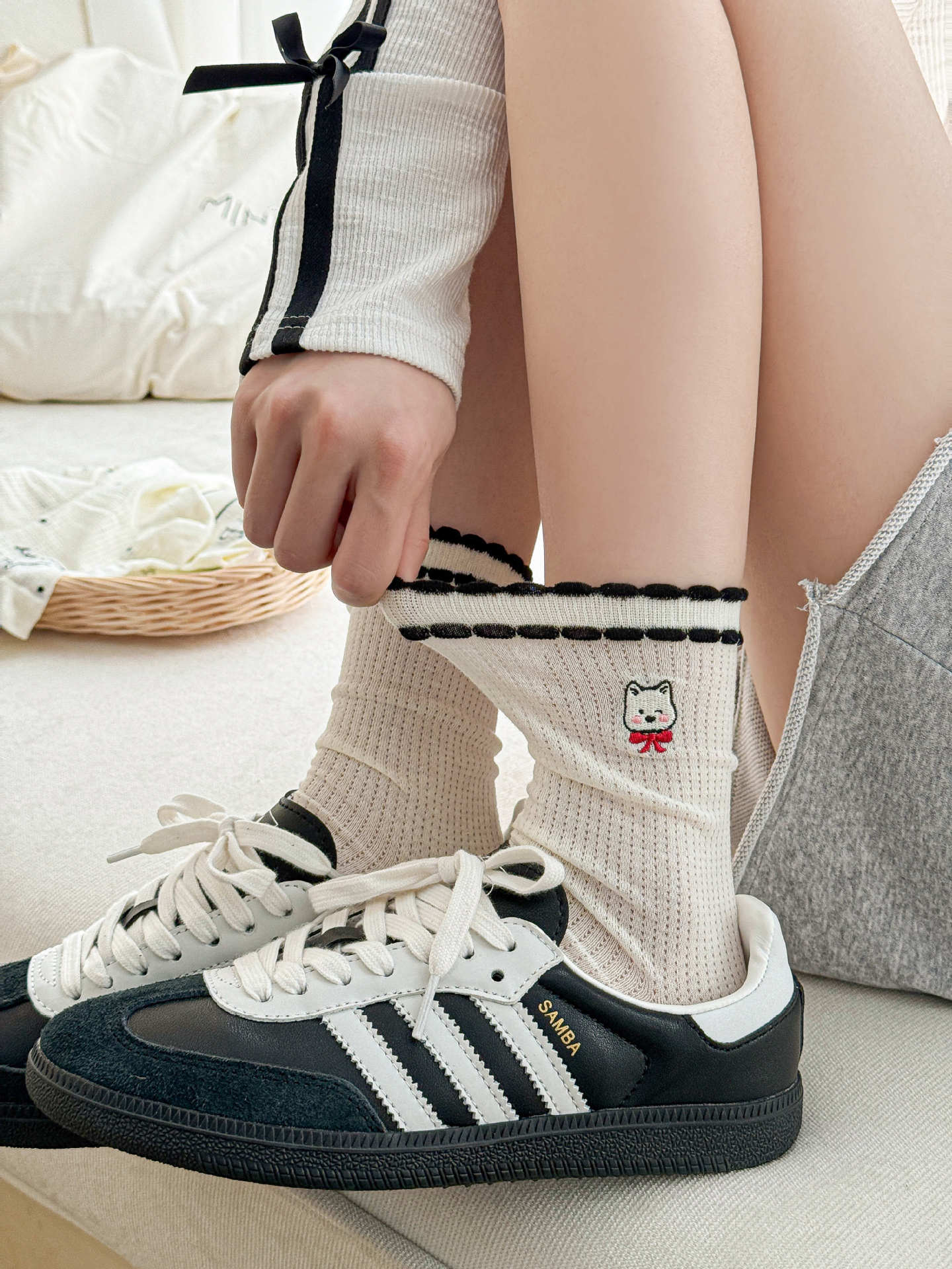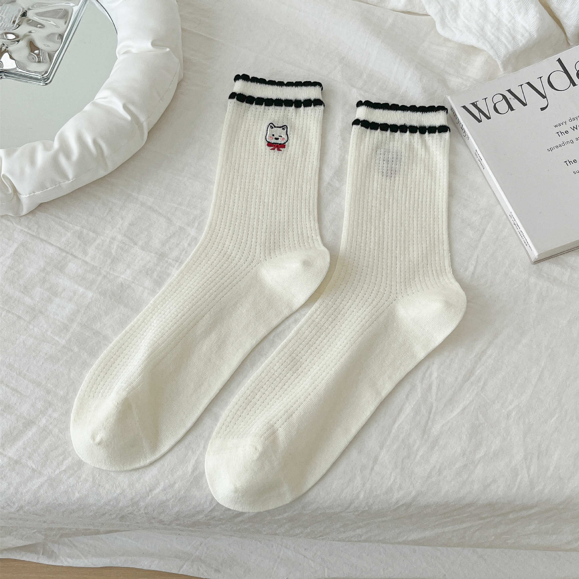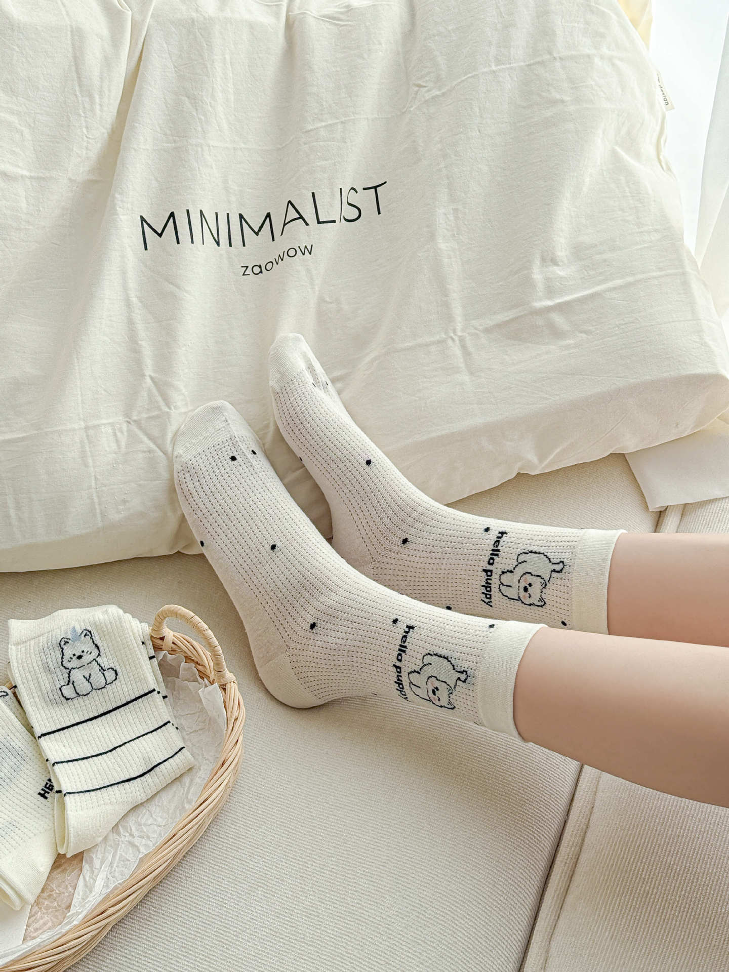 활 강아지 양말 여성용 메쉬 미드 튜브 여성용 양말 만화 웨이브 도트 스트라이프 신선한 여성의 미드 튜브 양말스토어 가기