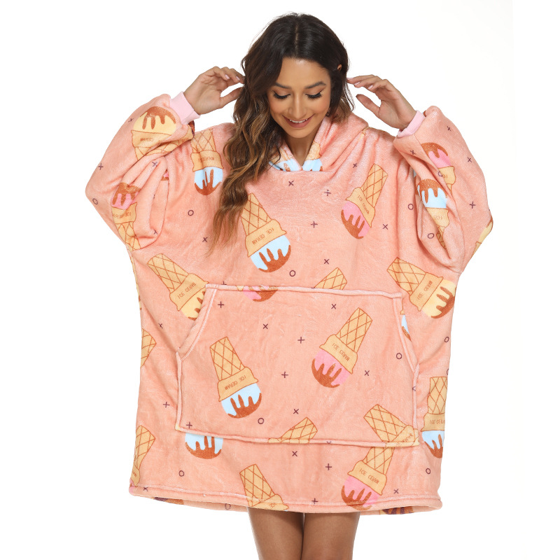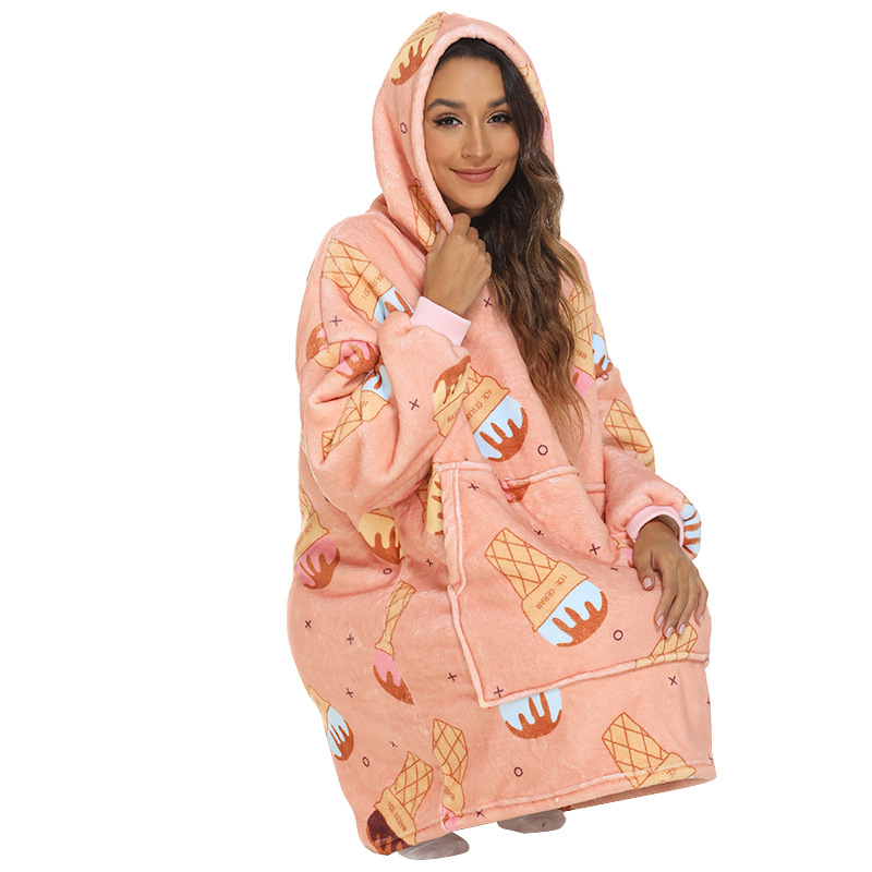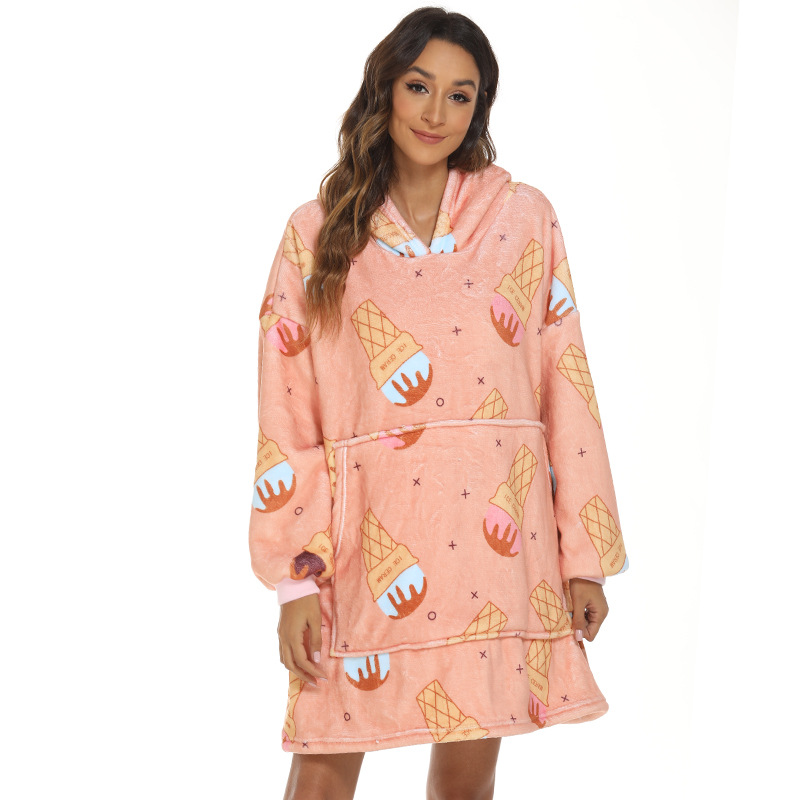 국경 착용 담요 유럽과 미국 스타일 여성의 겨울 캐주얼 아이스크림 인쇄 게으른 담요 후드 느슨한 홈 옷