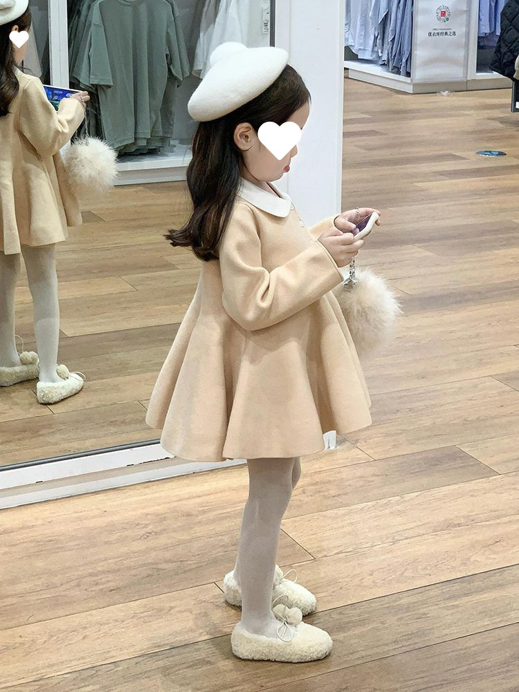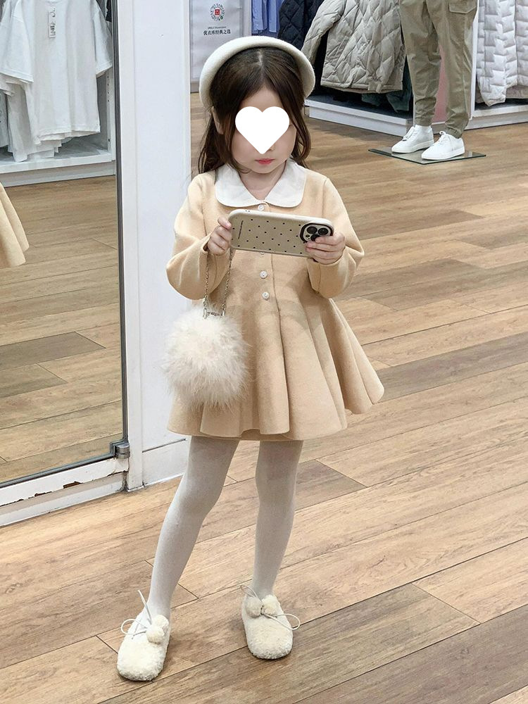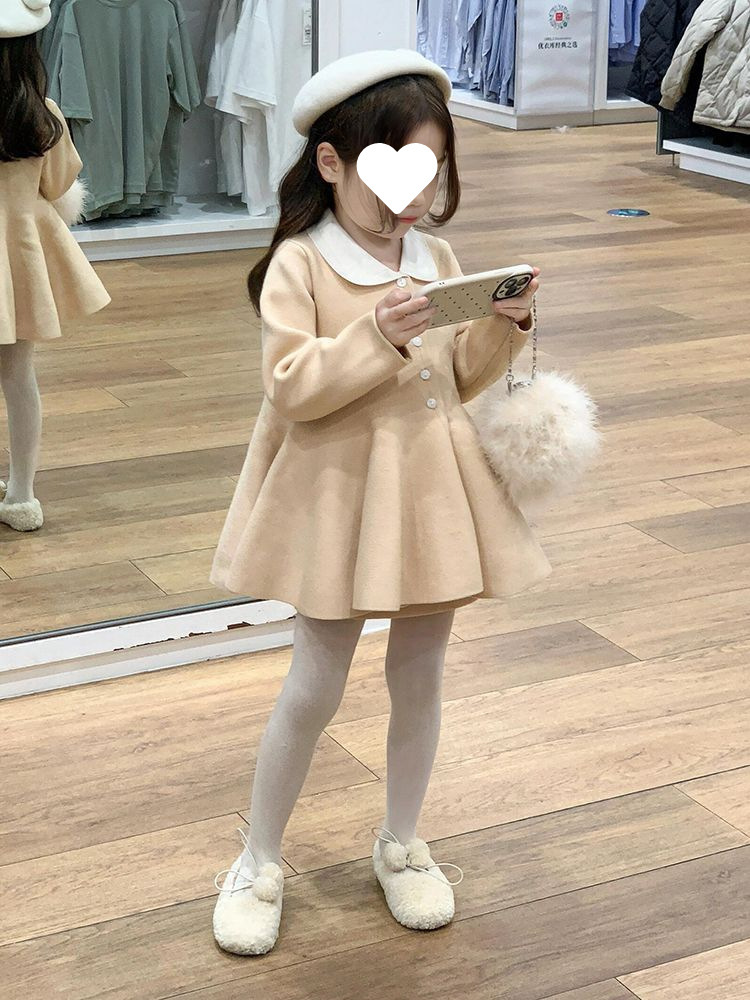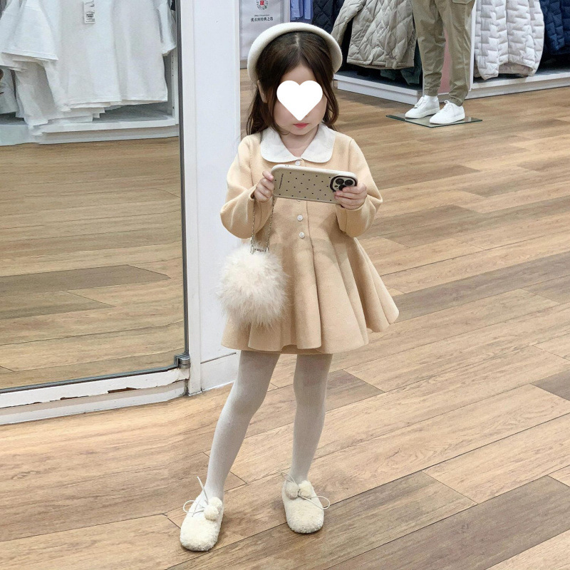 한국 스타일 소녀 2024 가을 겨울 새로운 달콤한 우유 노란색 니트 원피스 어린이 인형 칼라 스웨터 스커트스토어 가기
