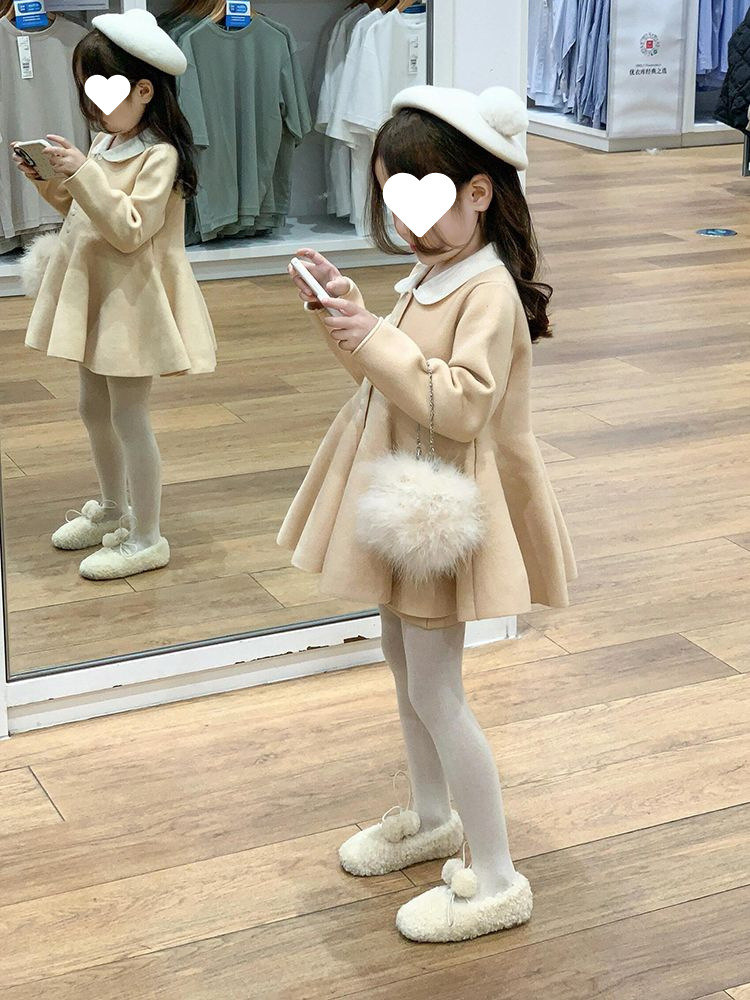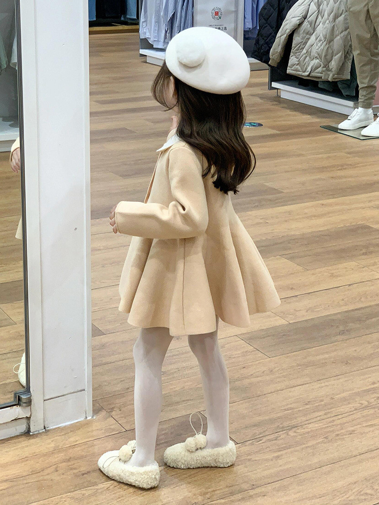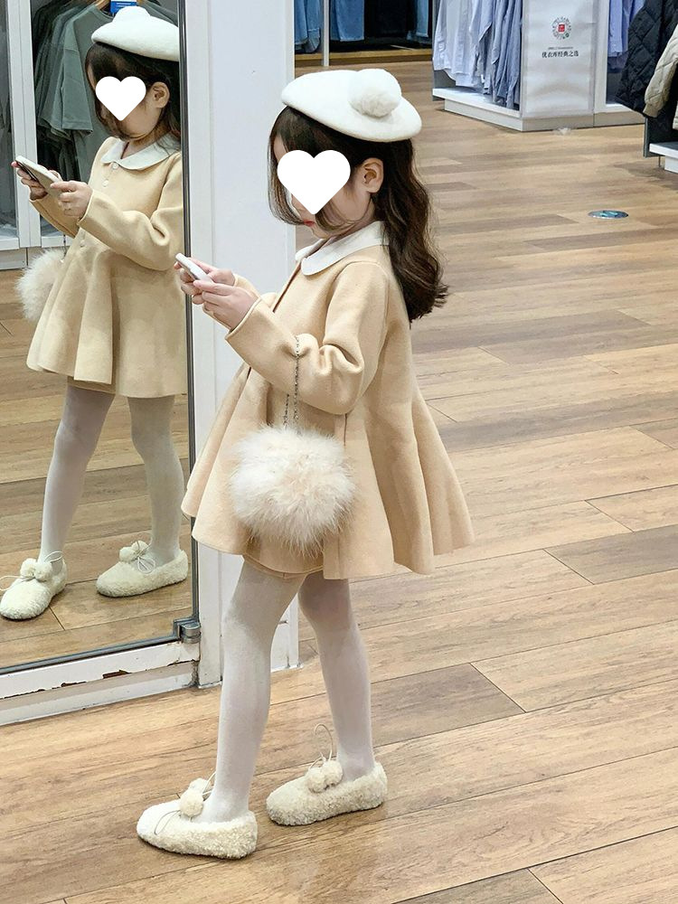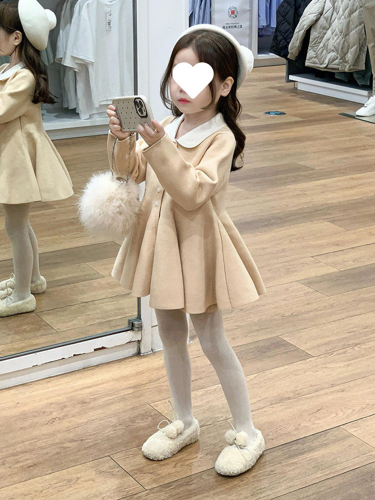 한국 스타일 소녀 2024 가을 겨울 새로운 달콤한 우유 노란색 니트 원피스 어린이 인형 칼라 스웨터 스커트