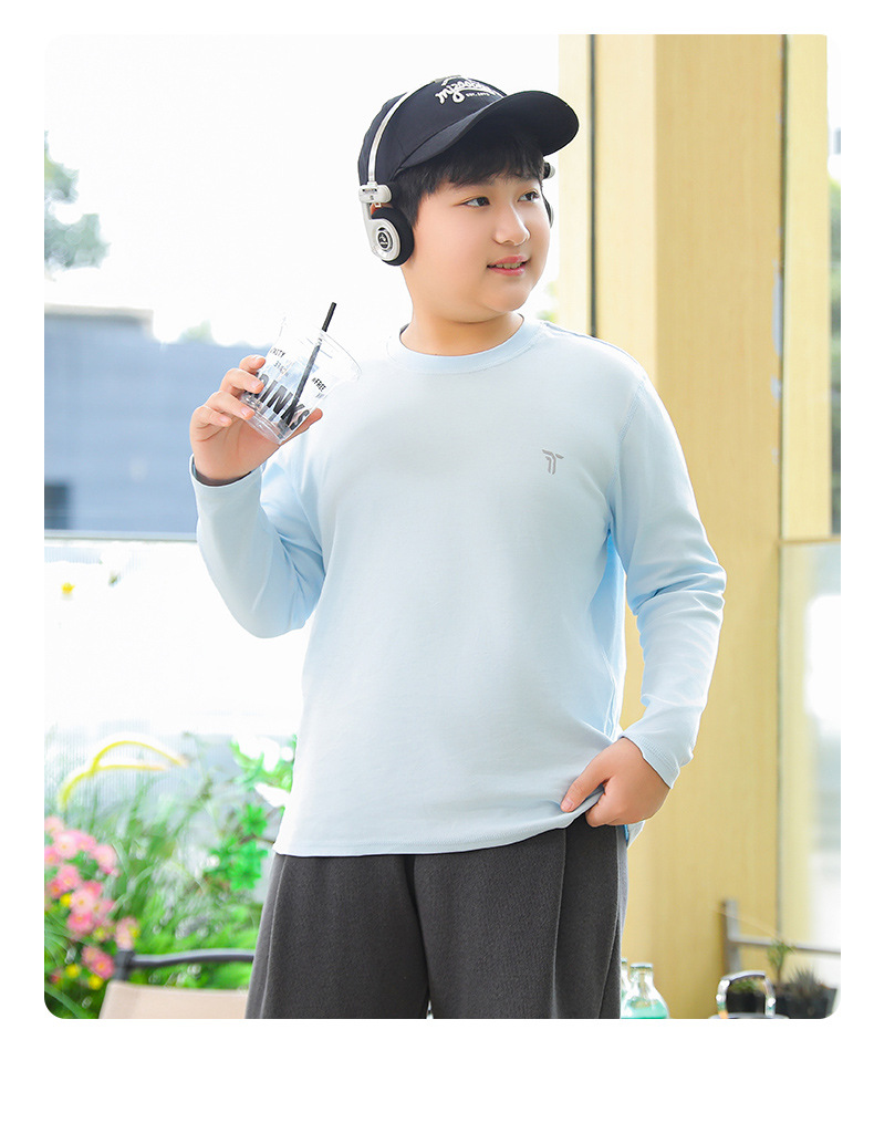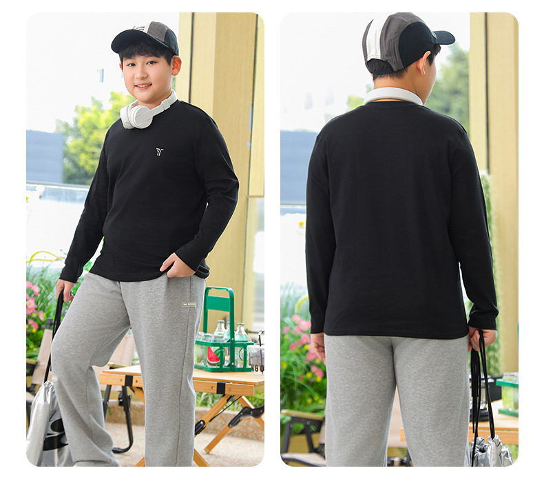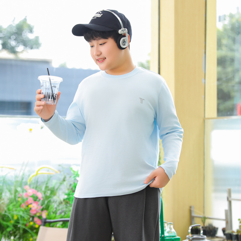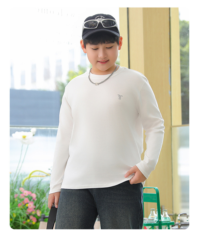 뚱뚱한 소년 긴팔 티셔츠 큰 아이들을위한 봄과 가을 원피스 플러스 십대를위한 뚱뚱한 플러스 봄베이스 셔츠 퓨어 코튼 탑 화이트 T스토어 가기