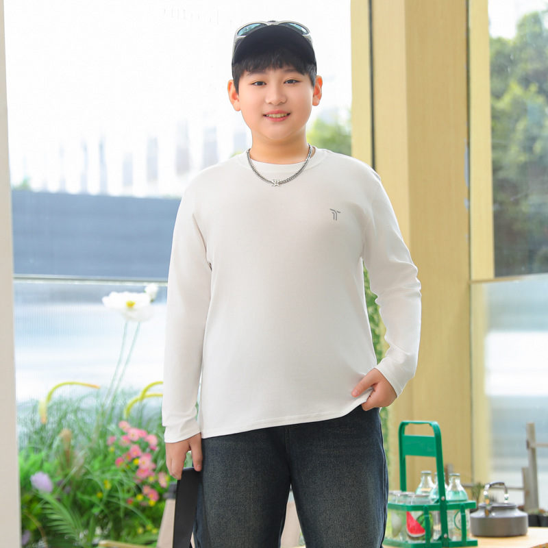 뚱뚱한 소년 긴팔 티셔츠 큰 아이들을위한 봄과 가을 원피스 플러스 십대를위한 뚱뚱한 플러스 봄베이스 셔츠 퓨어 코튼 탑 화이트 T