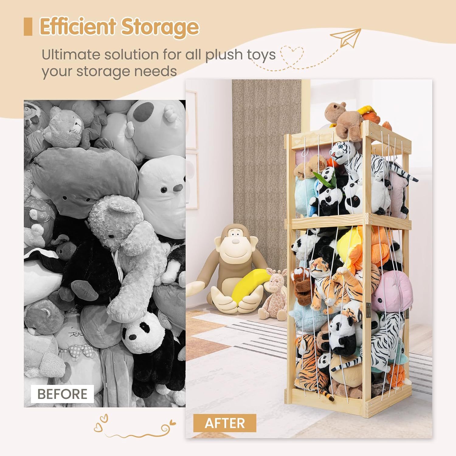 나무 인형 저장 랙 가정용 실내 봉제 장난감 저장 랙 바닥부터 바닥까지 나무 인형 보관 랙