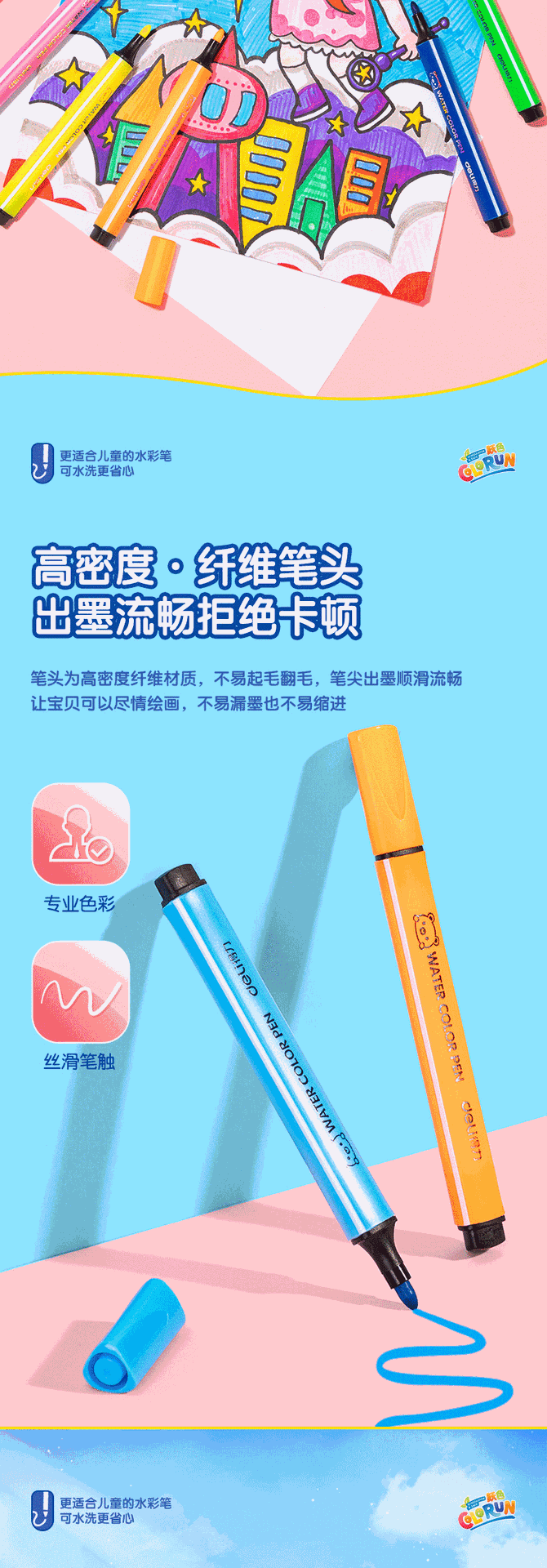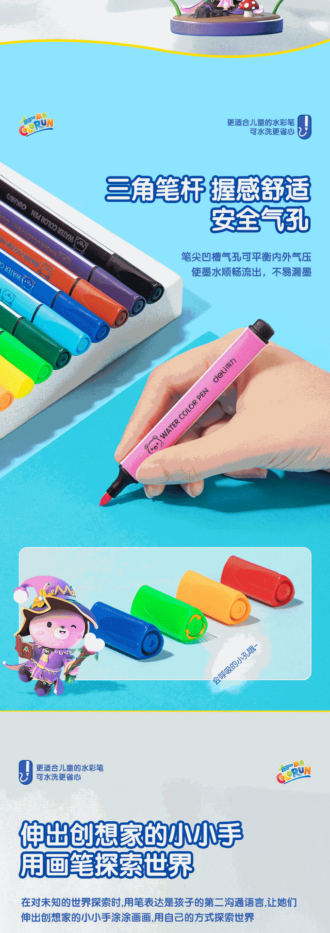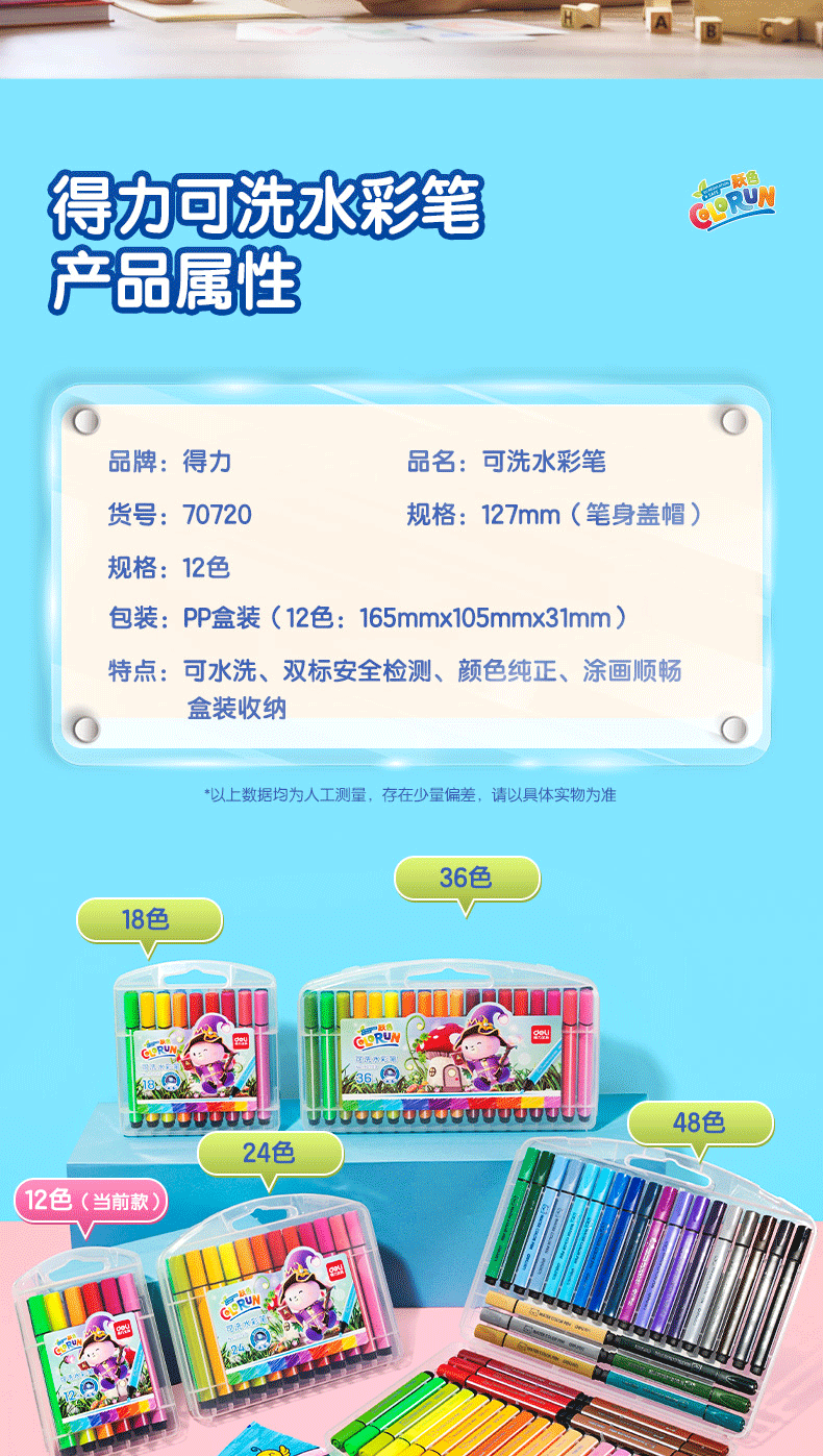 델리 70720 수채화 펜 어린이 그림 펜 세트 세척 가능한 12 색 낙서 만화 두꺼운 삼각형 기둥 수채화 펜스토어 가기