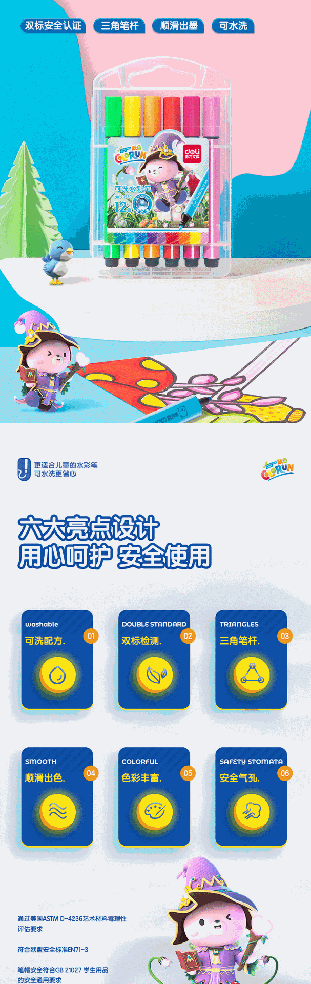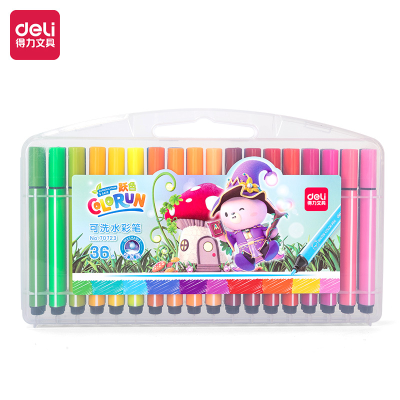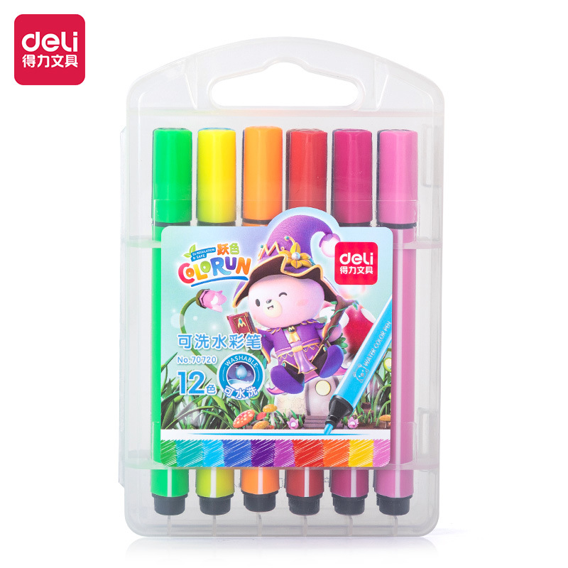 델리 70720 수채화 펜 어린이 그림 펜 세트 세척 가능한 12 색 낙서 만화 두꺼운 삼각형 기둥 수채화 펜