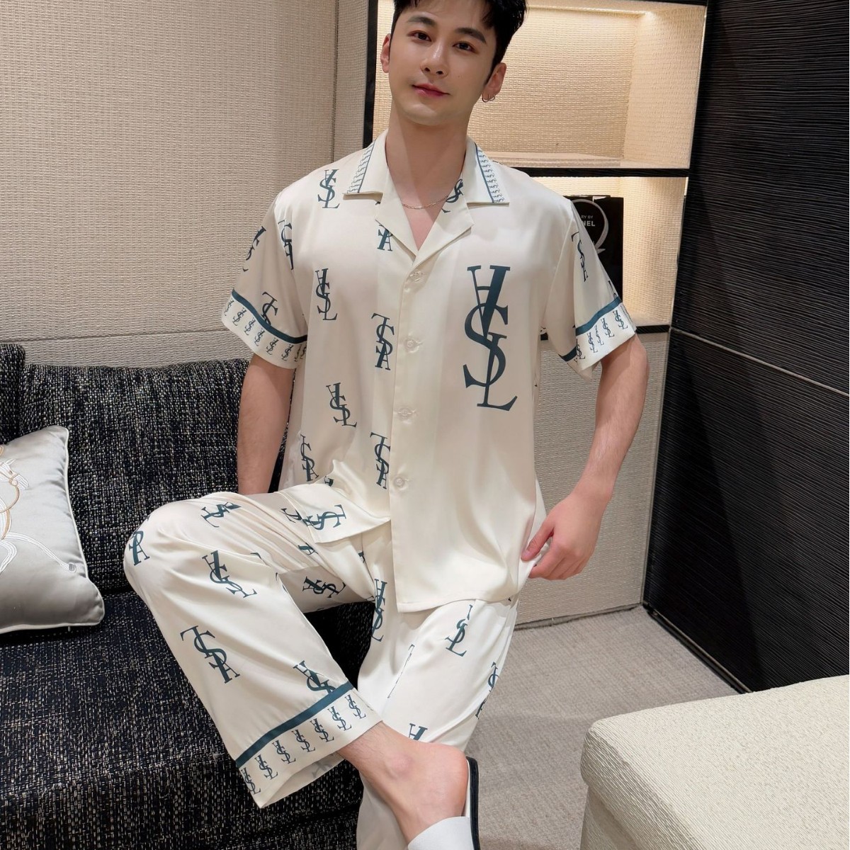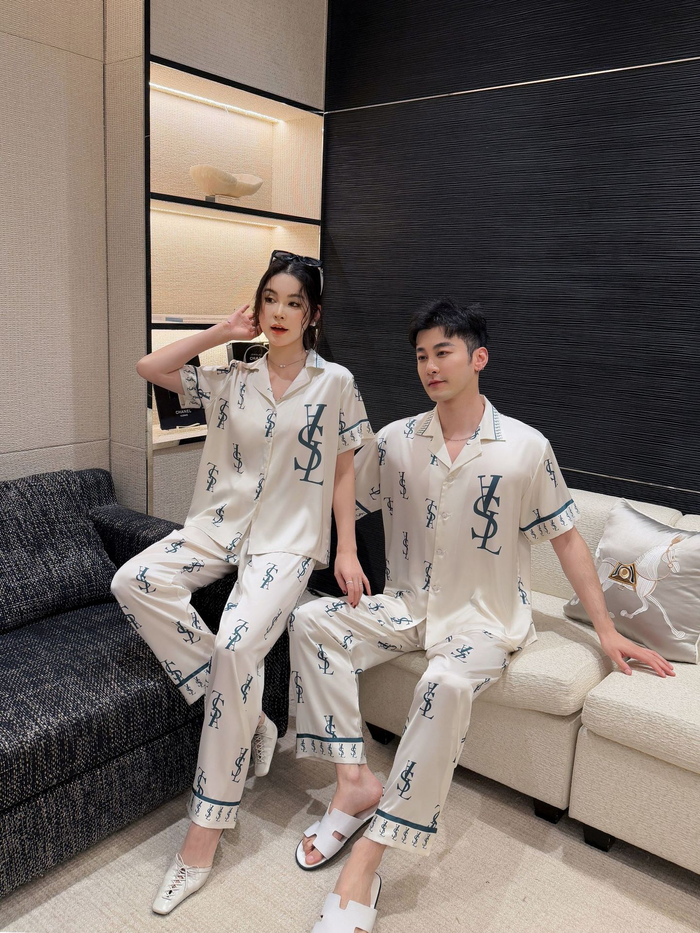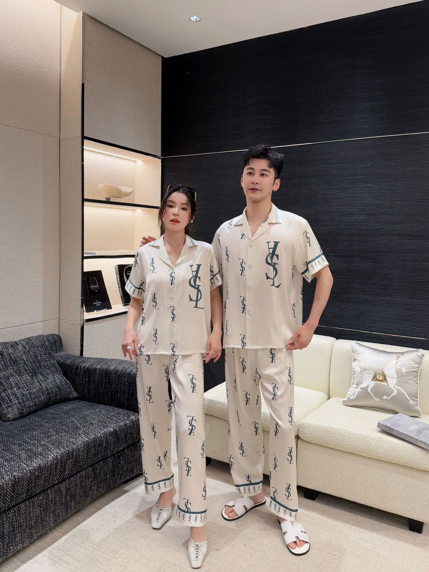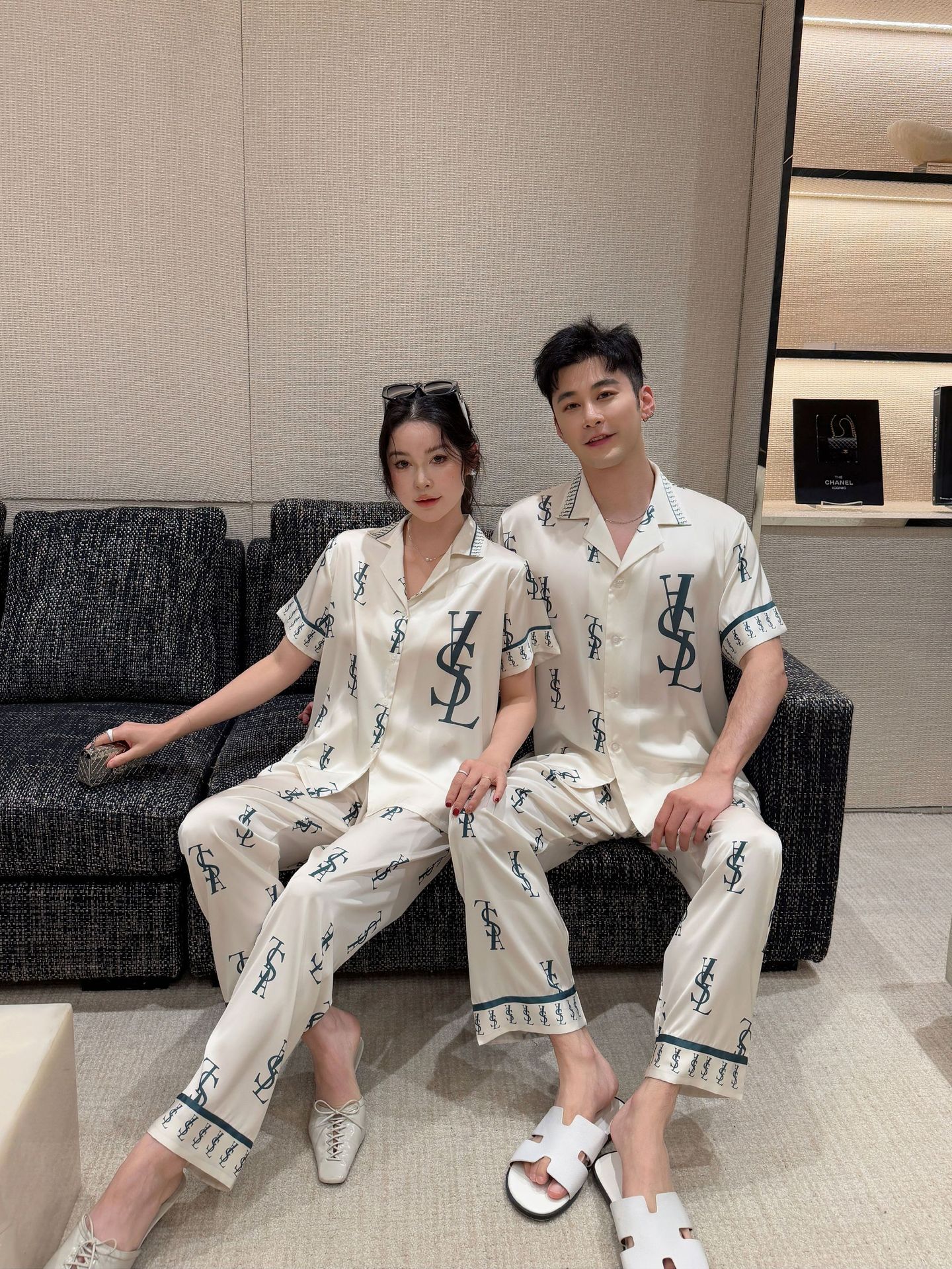 커플 잠옷 여성 여름 2025 새로운 아이스 실크 짧은 소매 카디건 세트 인기 라이브 플러스 사이즈 남성 홈 의류스토어 가기
