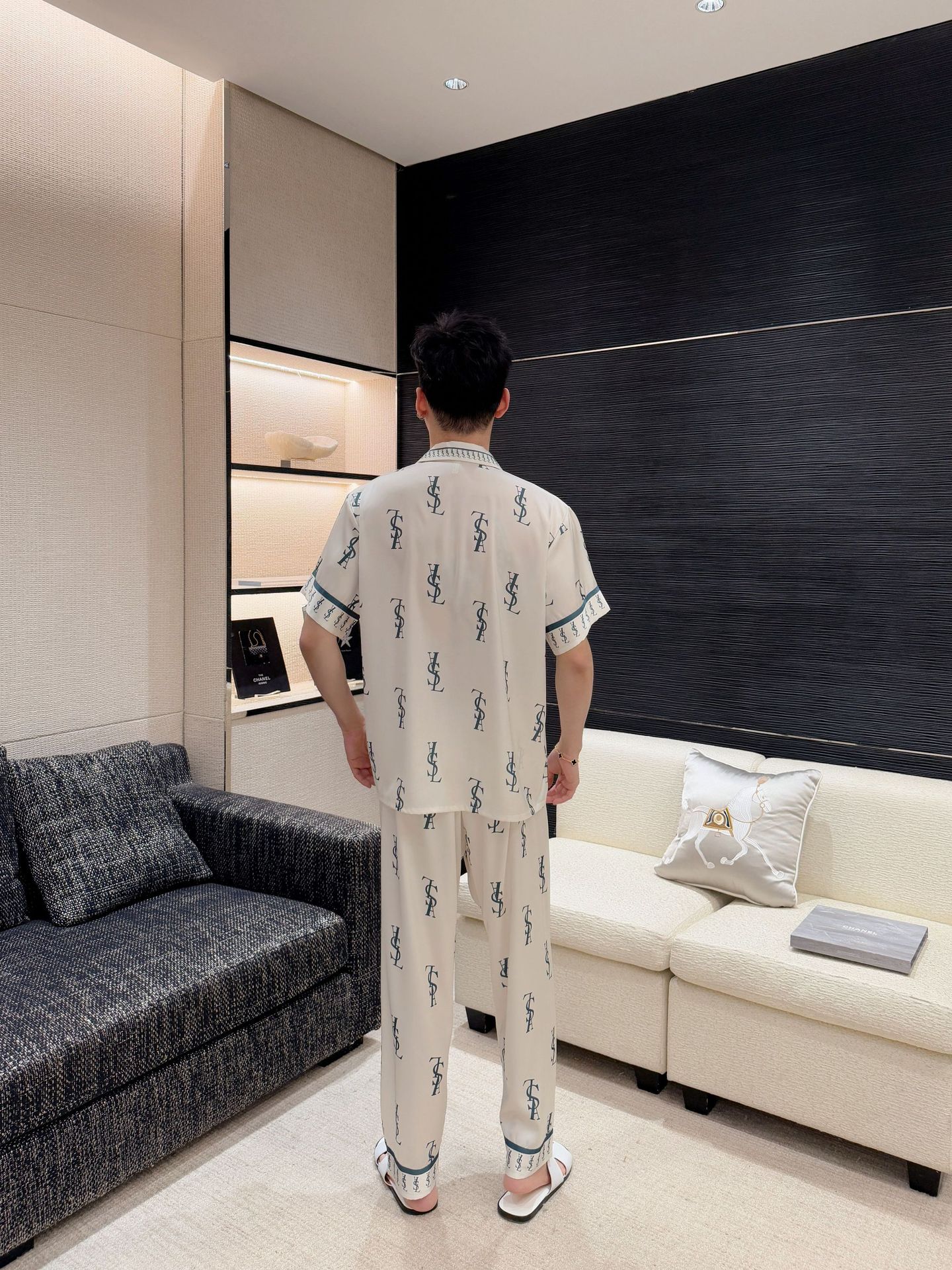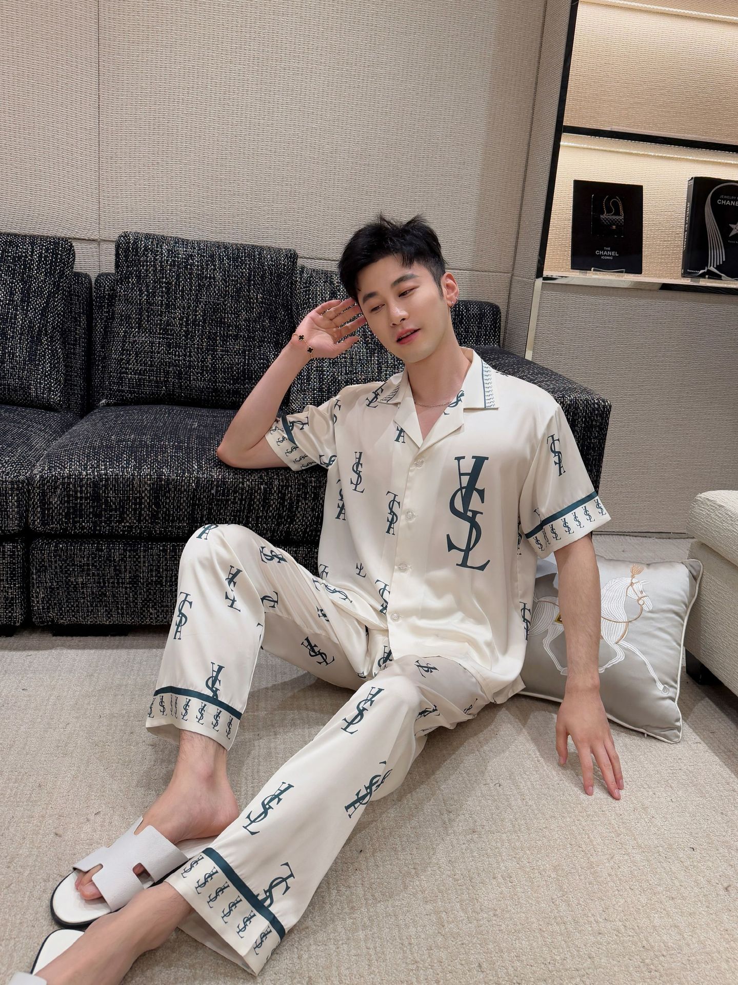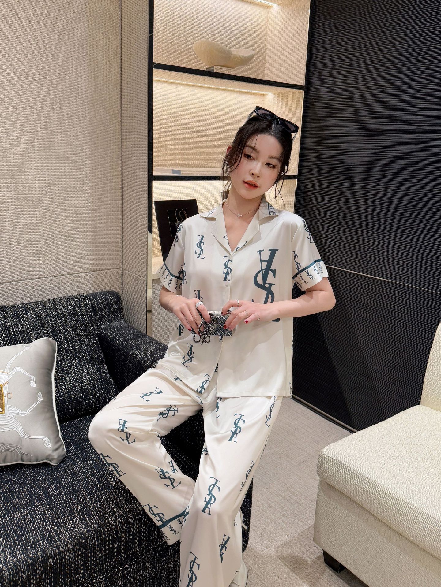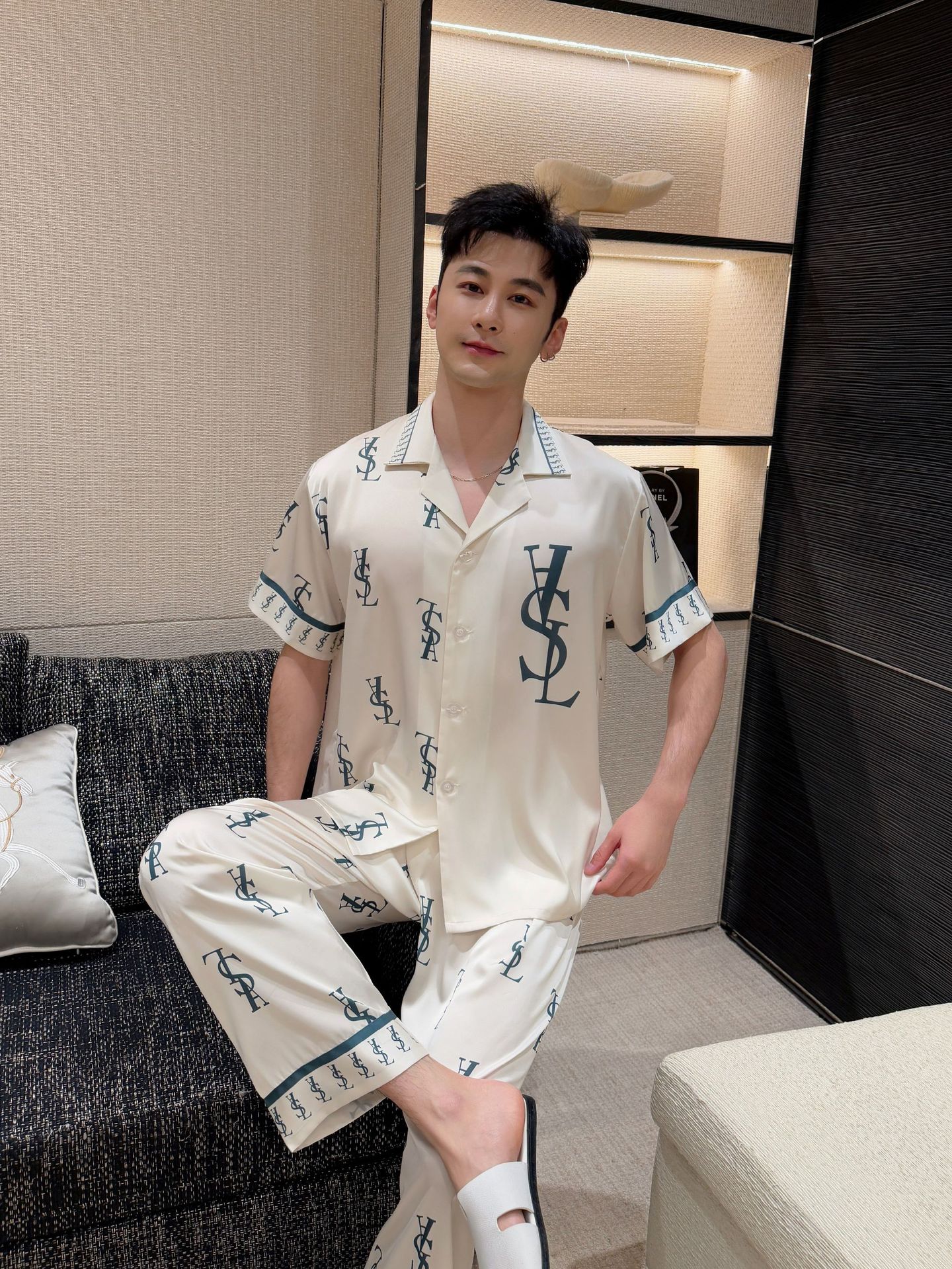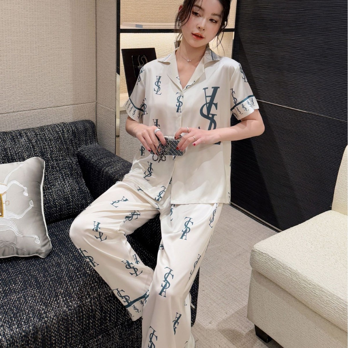 커플 잠옷 여성 여름 2025 새로운 아이스 실크 짧은 소매 카디건 세트 인기 라이브 플러스 사이즈 남성 홈 의류스토어 가기