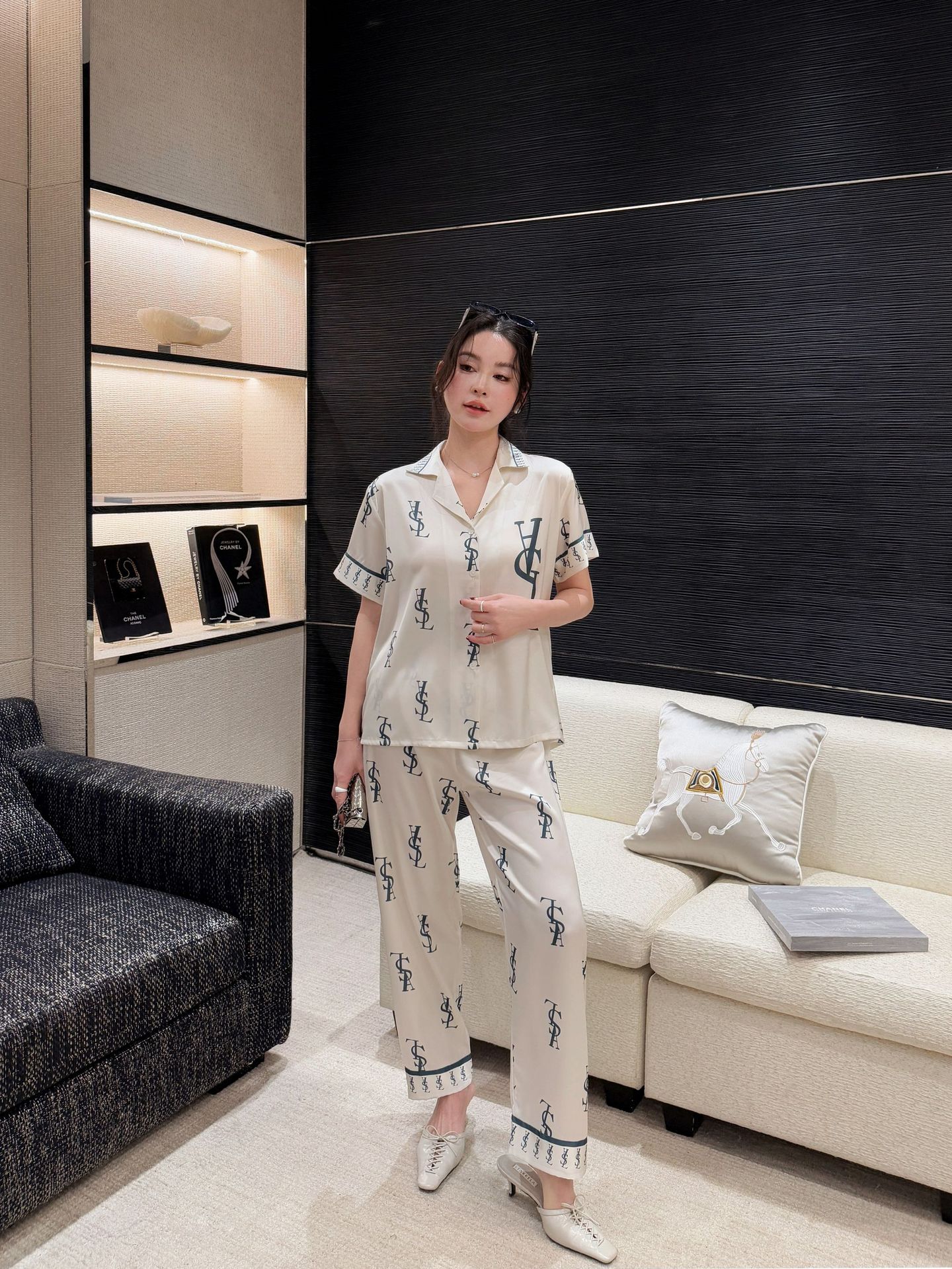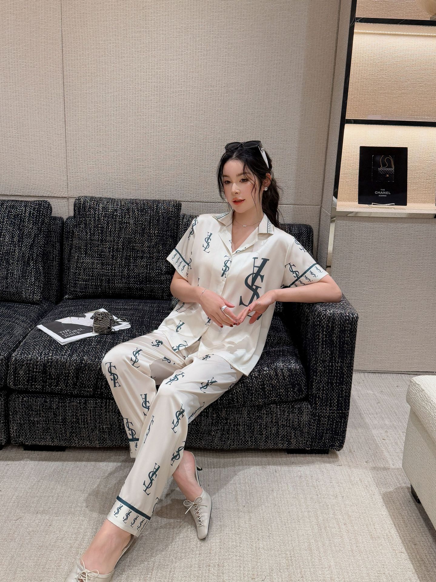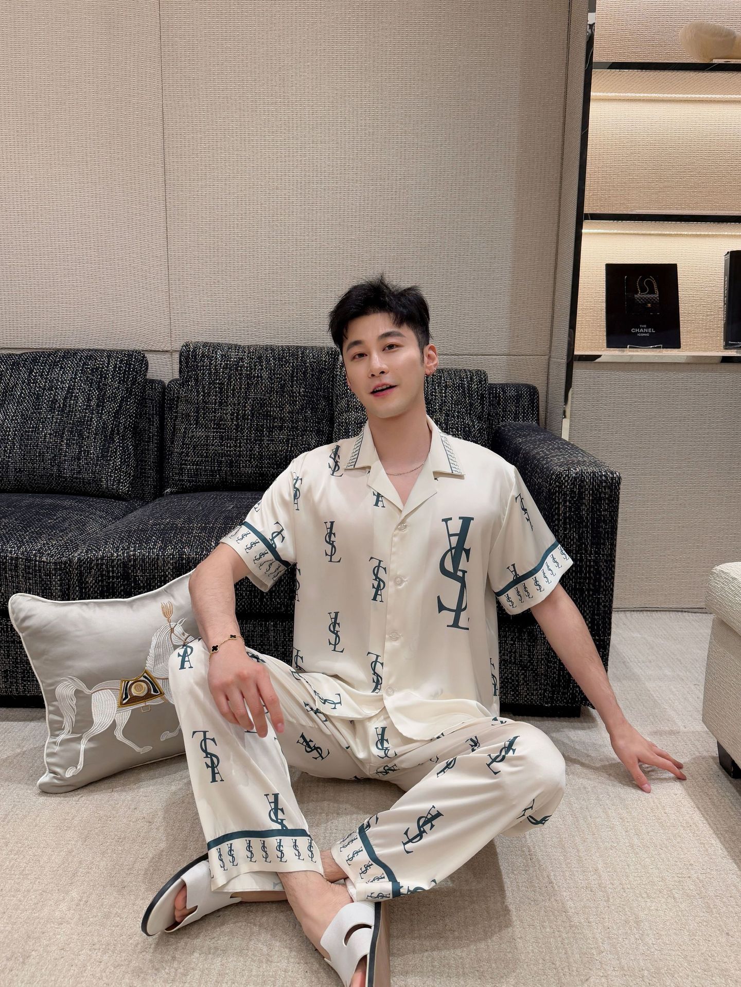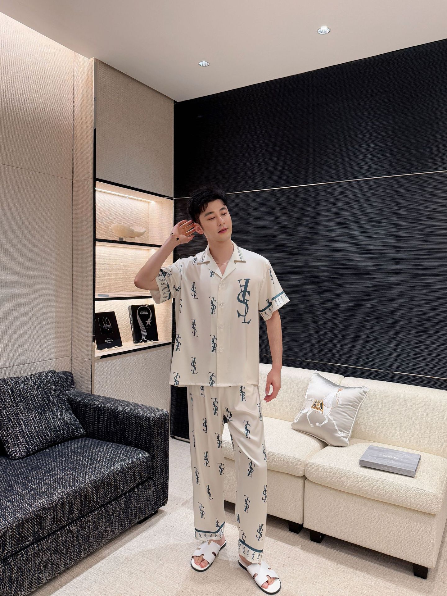 커플 잠옷 여성 여름 2025 새로운 아이스 실크 짧은 소매 카디건 세트 인기 라이브 플러스 사이즈 남성 홈 의류스토어 가기