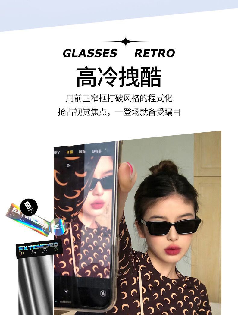 제니 같은 스타일 아메리칸 스타일 레트로 작은 프레임 선글라스 여성 패션 하이 엔드 센스 고양이 아이 사이버 축하 프레임 선글라스